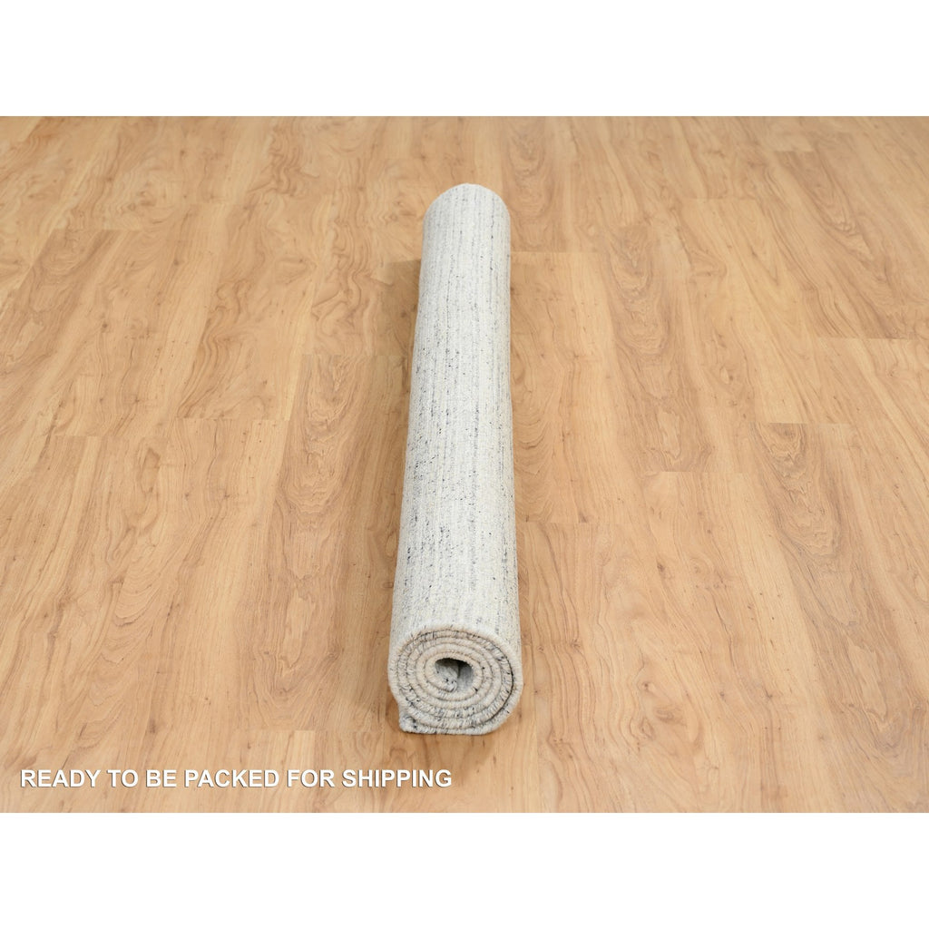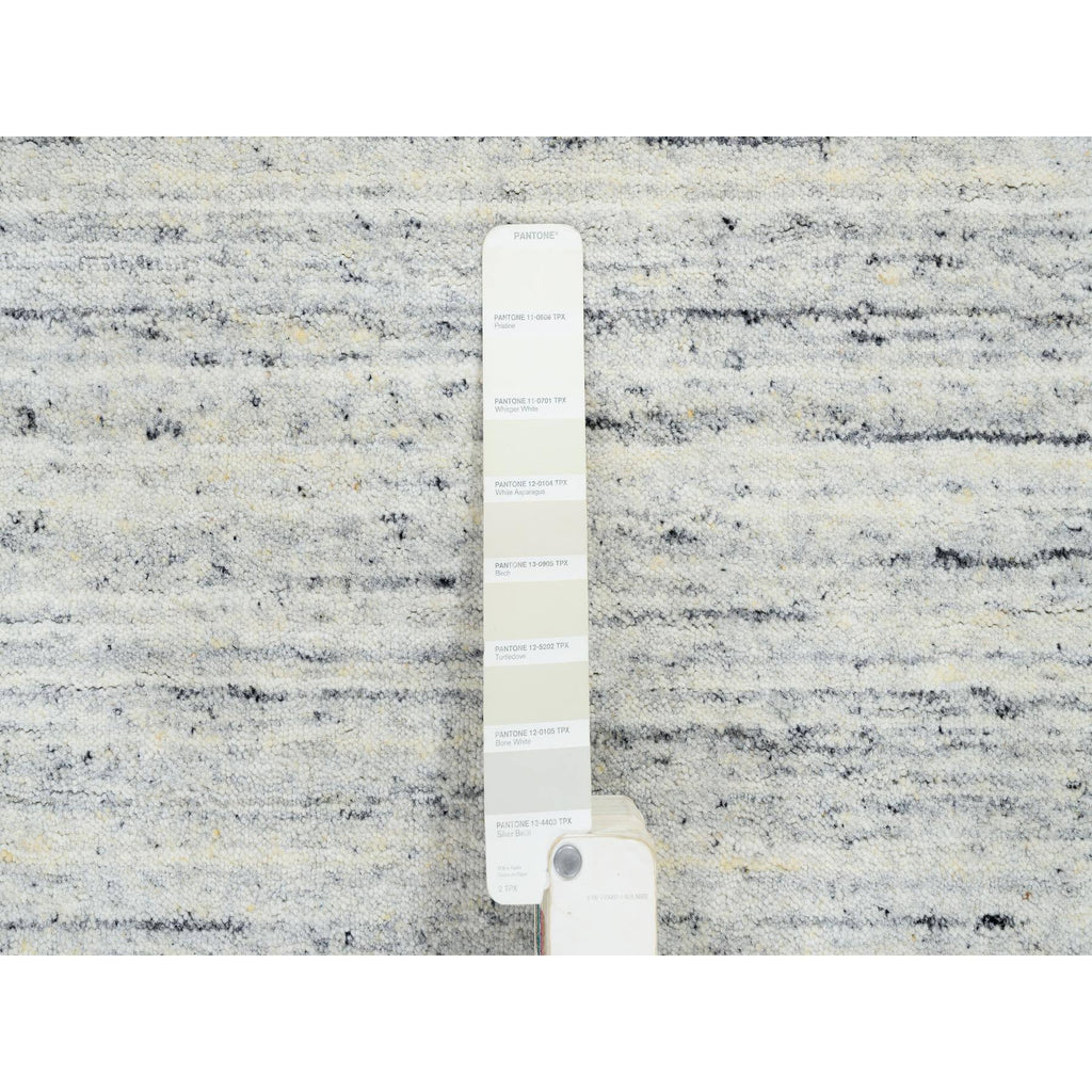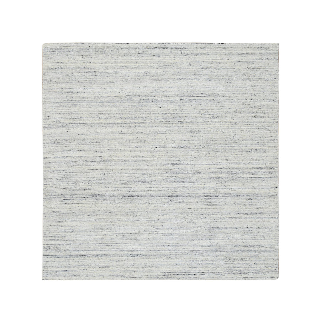 6'x6' Ivory, Extra Soft Wool Hand Loomed, Plain Modern Striped Design Soft Pile, Square Oriental Rug FWR388644