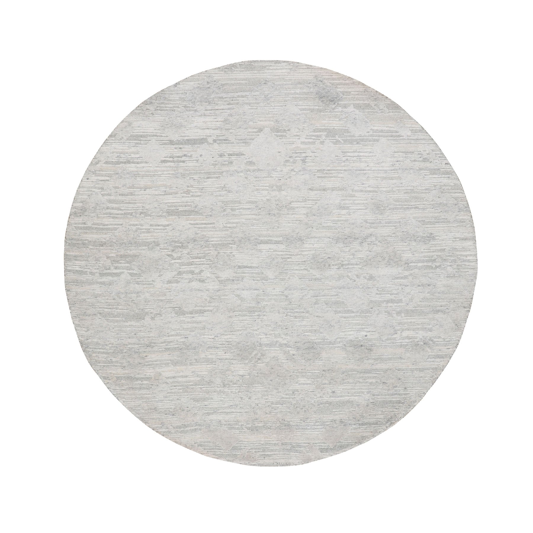 6'x6' Ivory Hand Spun Undyed Natural Wool Modern Round Hand Knotted Oriental Rug FWR349428