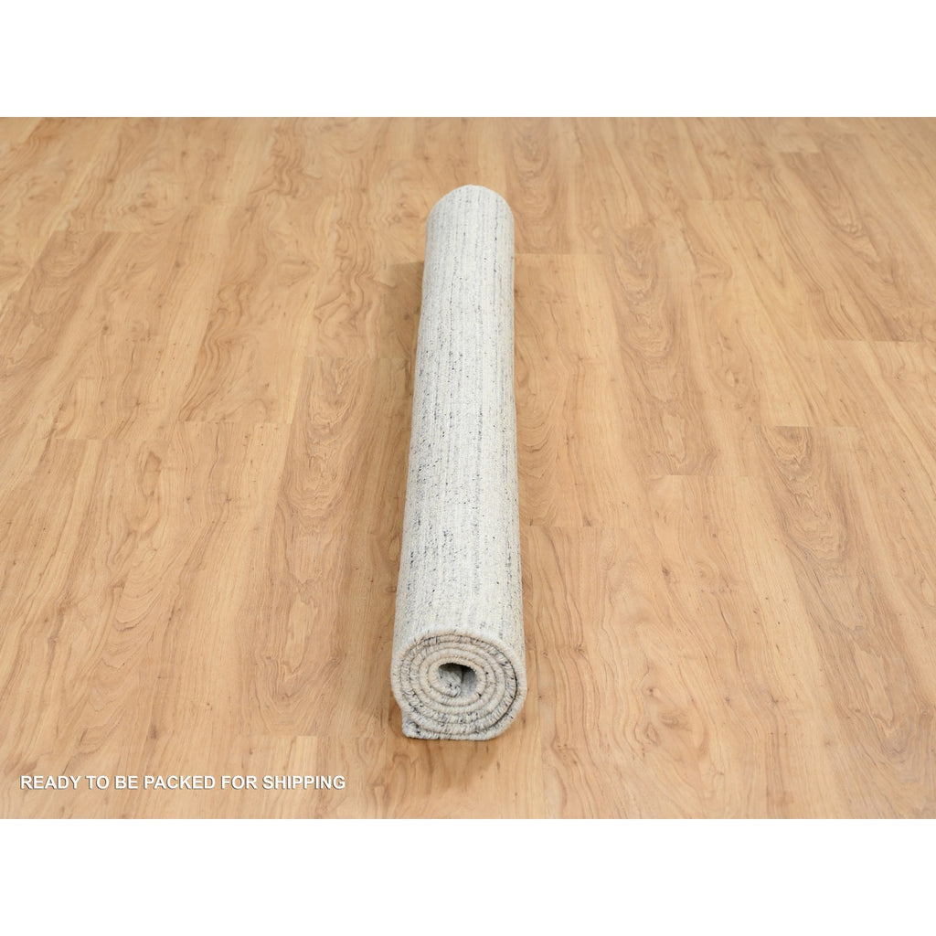 6'x6' Ivory, Plain Modern Striae Design Soft Pile, Soft Wool Hand Loomed, Square Oriental Rug FWR388638