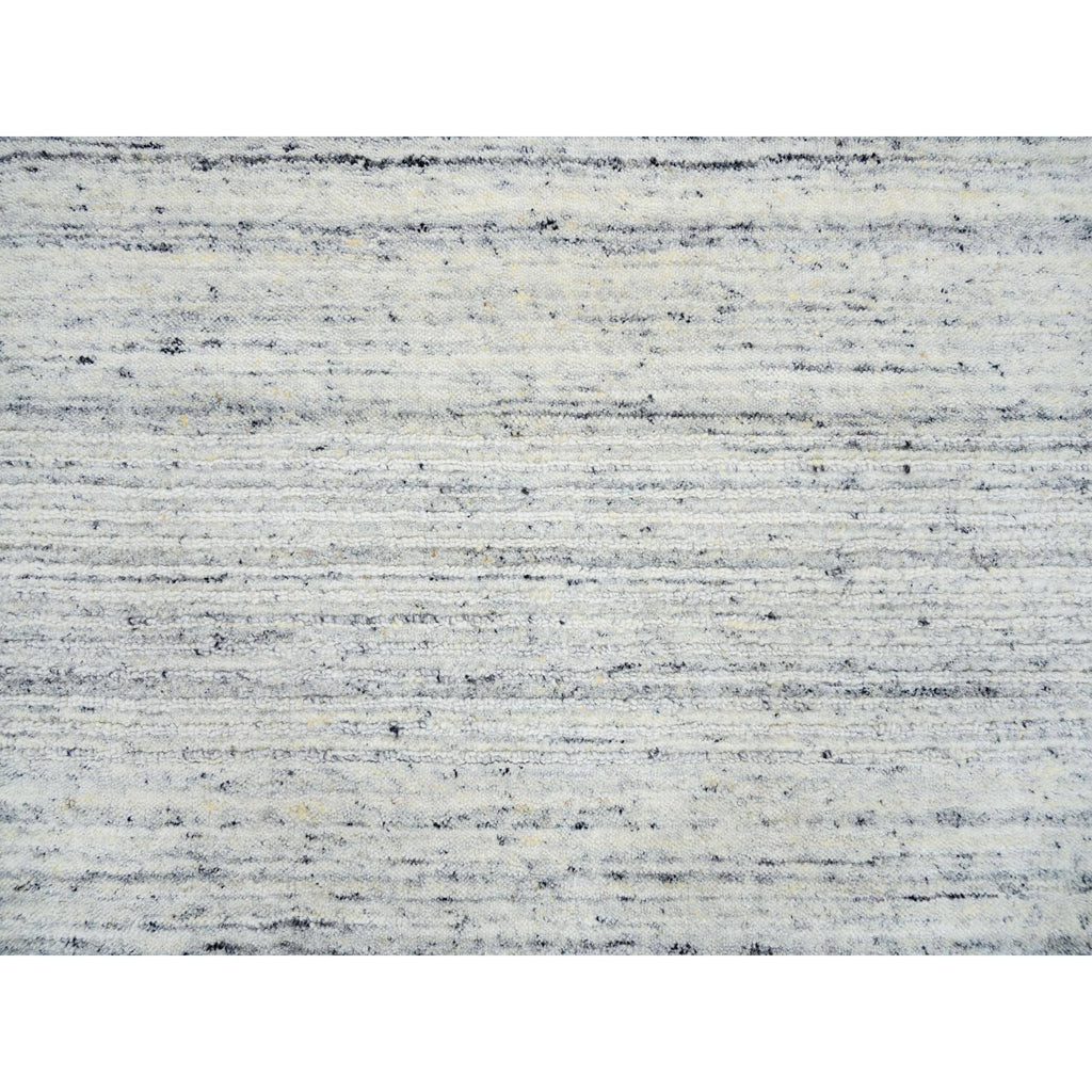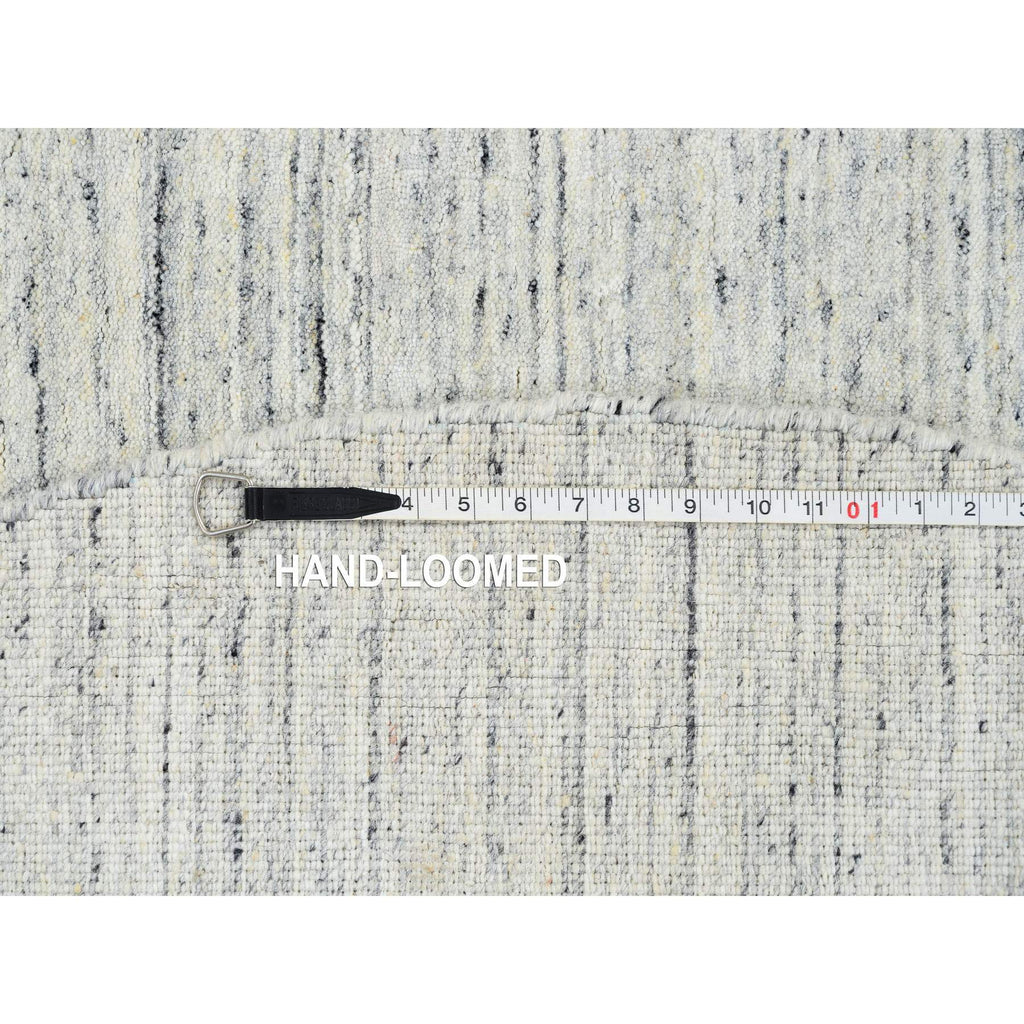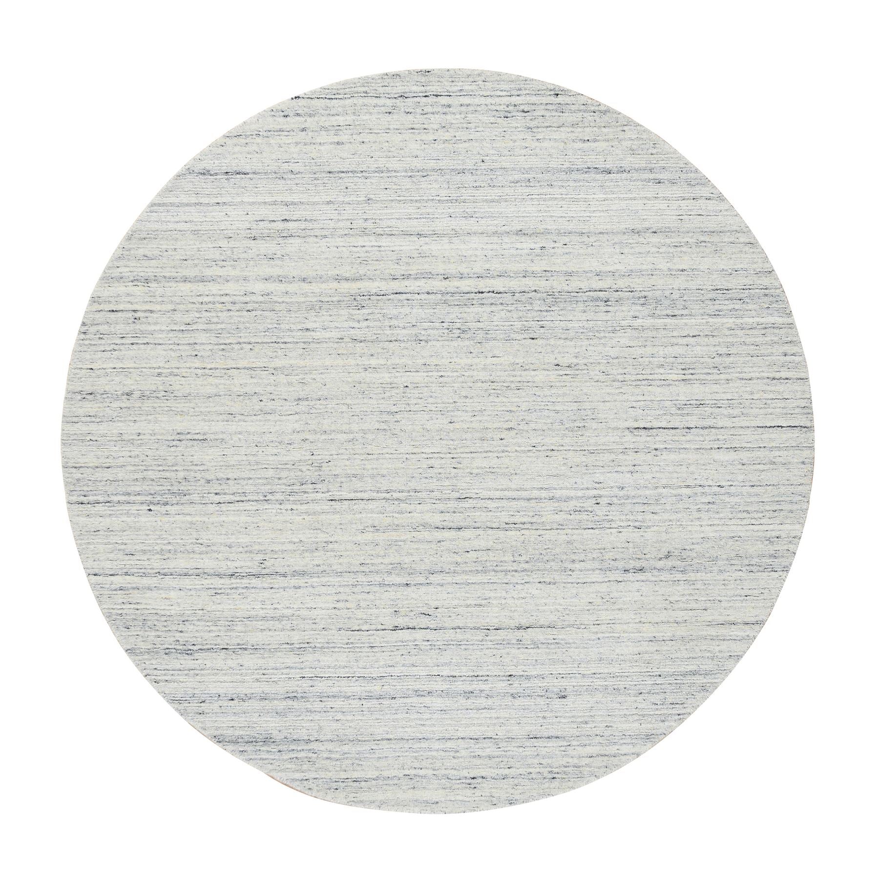 6'x6' Ivory, Pure Wool Hand Loomed, Plain Modern Striped Design Soft Pile, Round Oriental Rug FWR388662