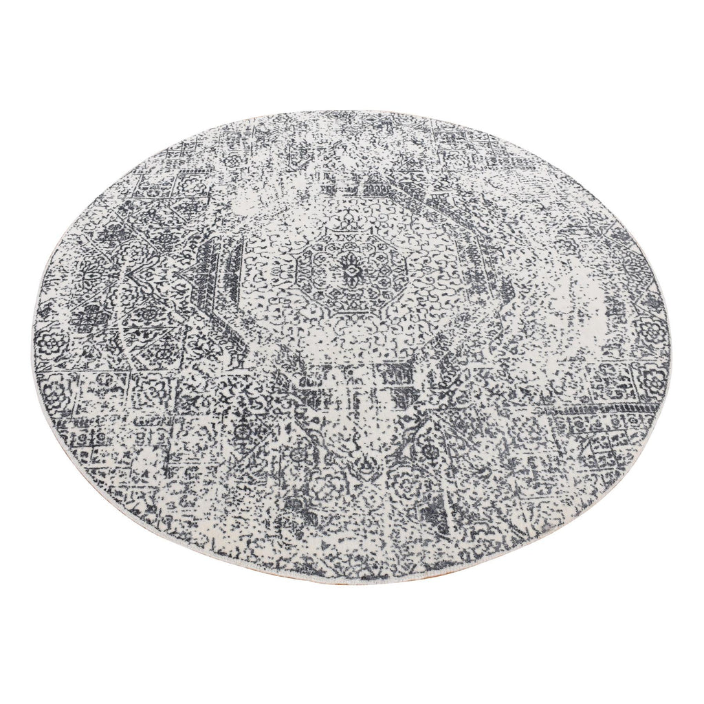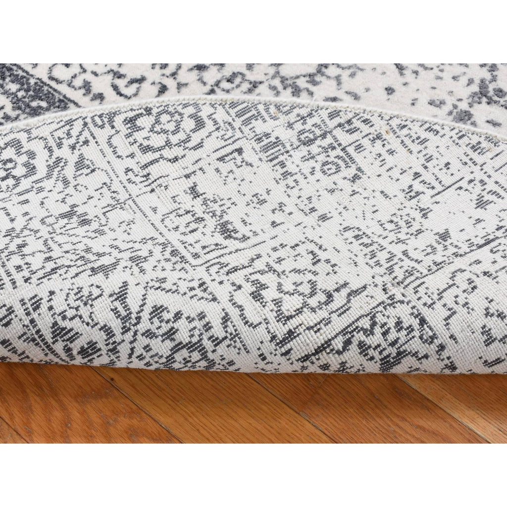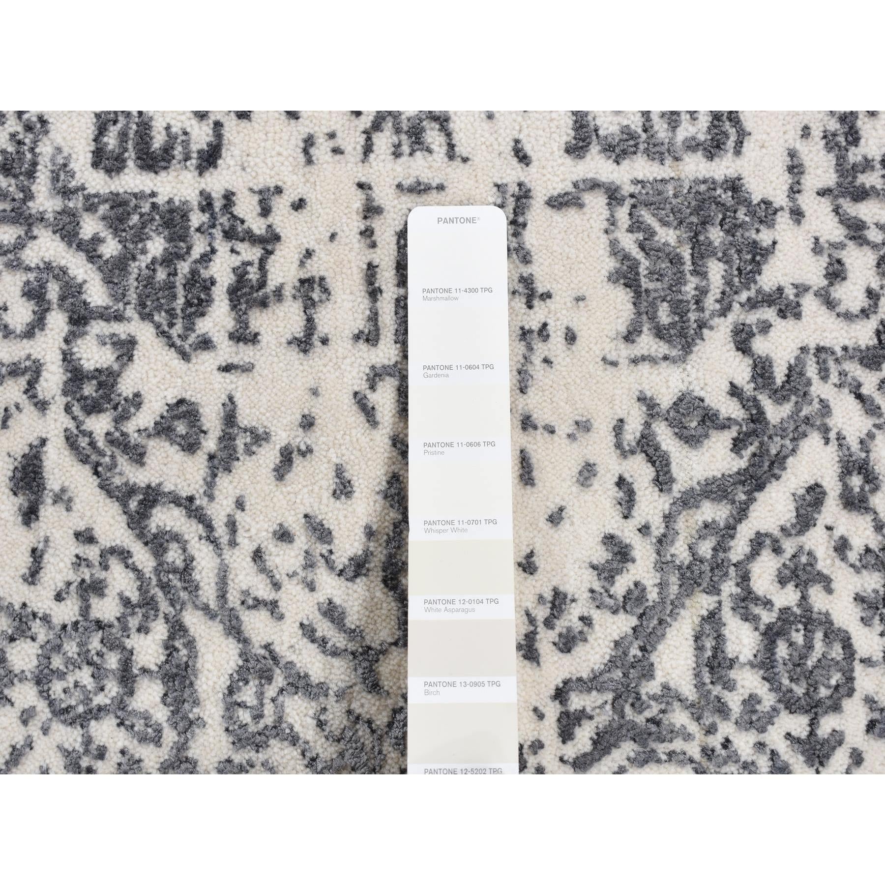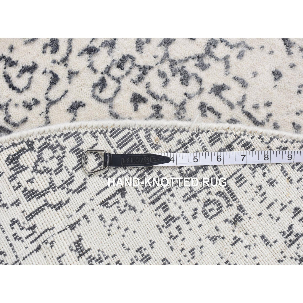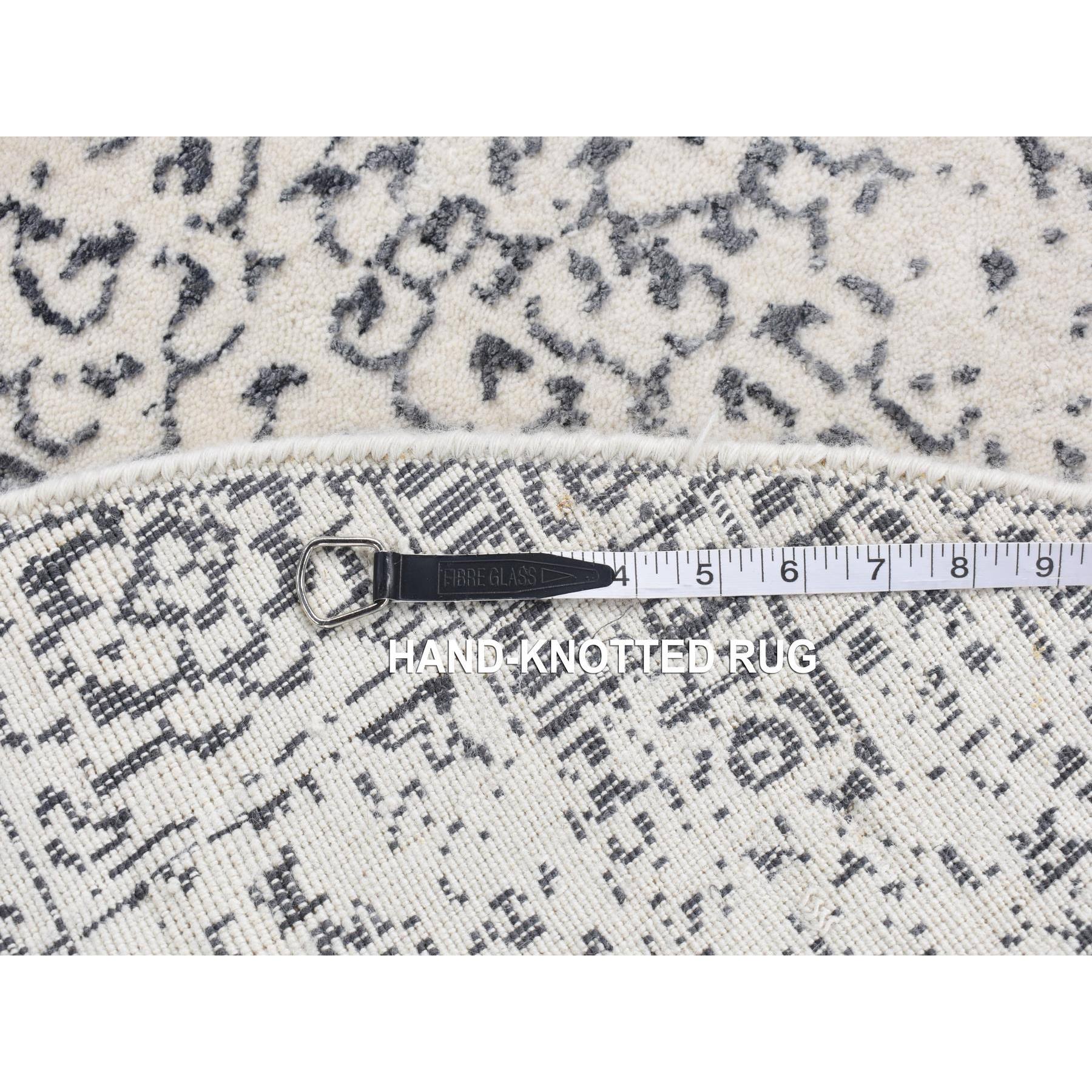 6'x6' Ivory With Mix Of Gray, Hand Loomed With Mamluk Design, Tone On Tone, Pure Wool, Round Oriental Rug FWR526284