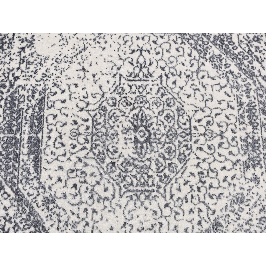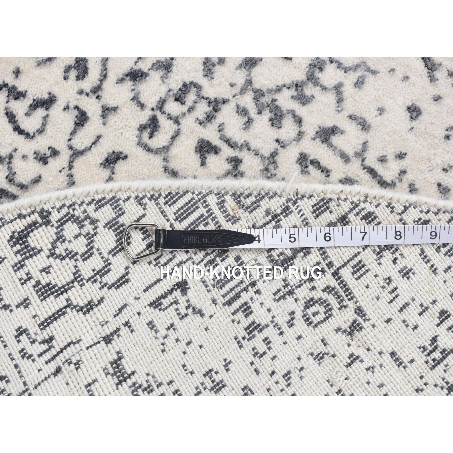 6'x6' Ivory With Mix Of Gray, Hand Loomed With Mamluk Design, Tone On Tone, Pure Wool, Round Oriental Rug FWR526290