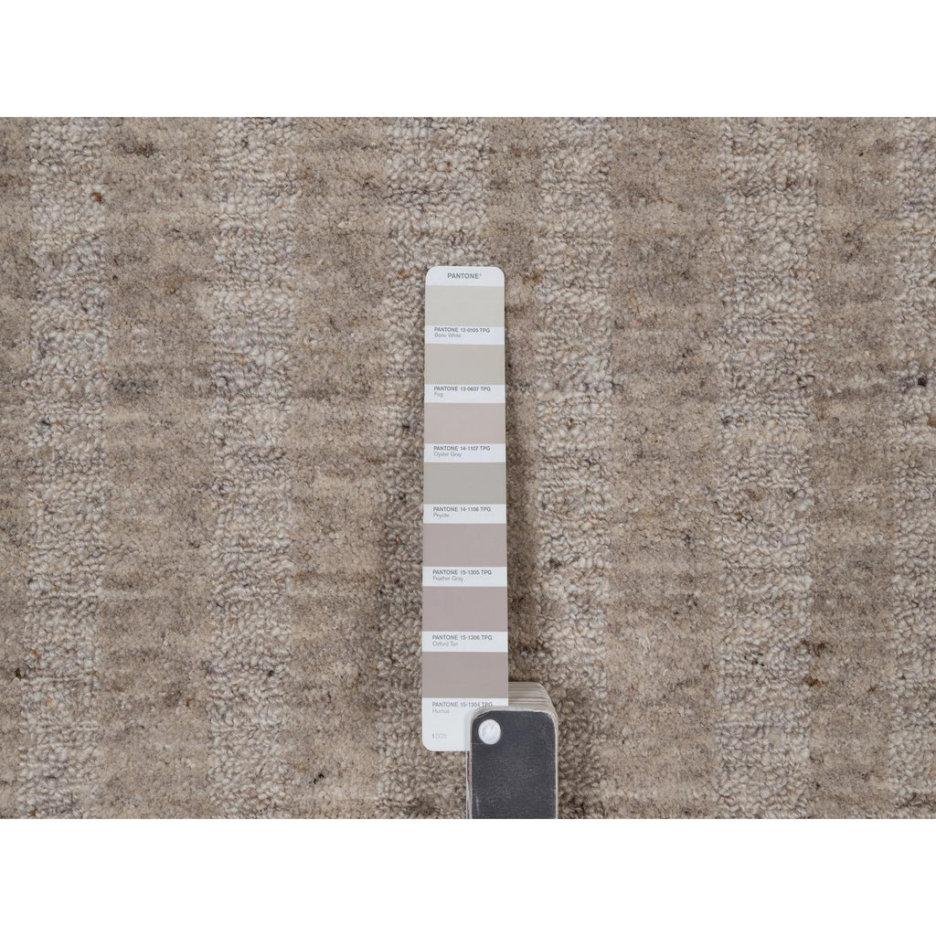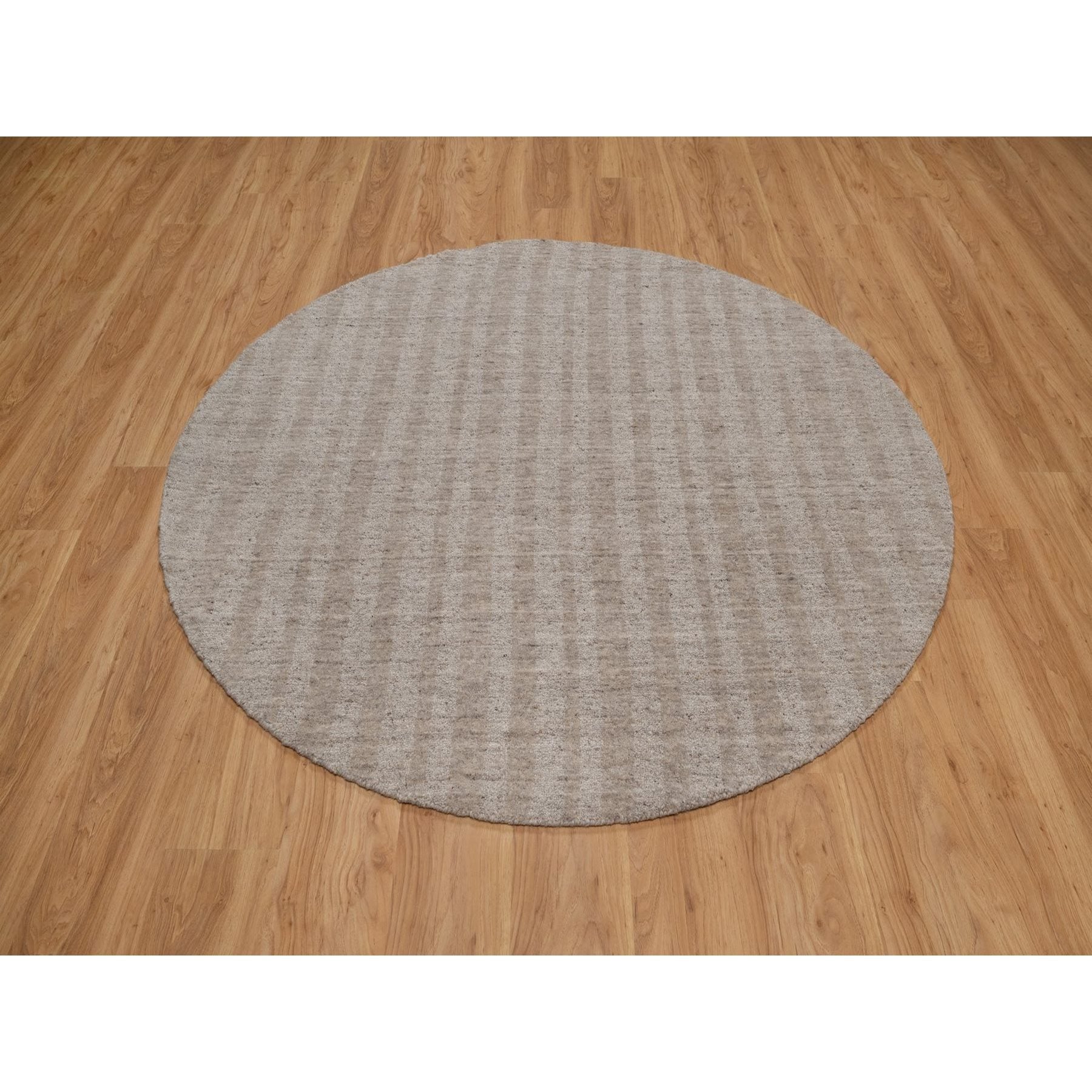 6'x6' Light Brown, Stripes Design With Salt And Pepper Effect, Hand Loomed, Undyed Natural Wool, Round, Oriental Rug FWR549930