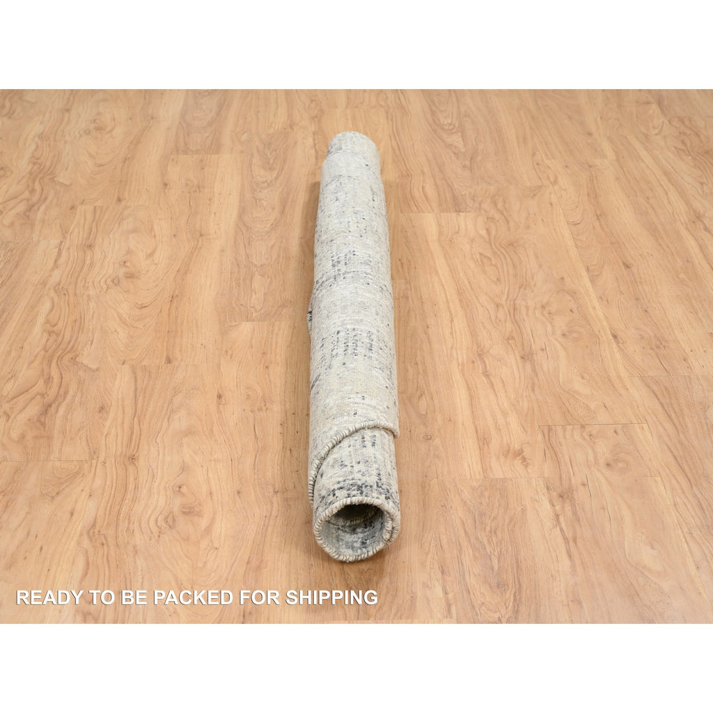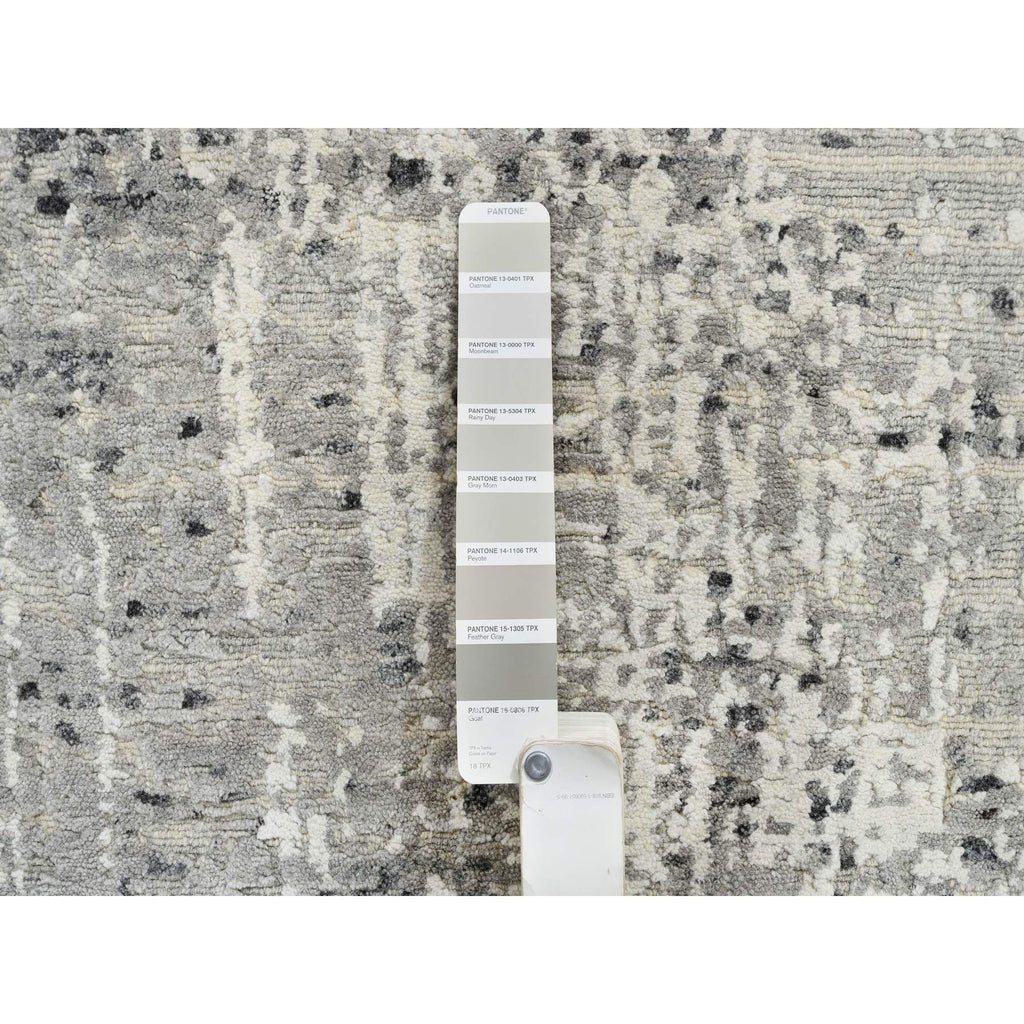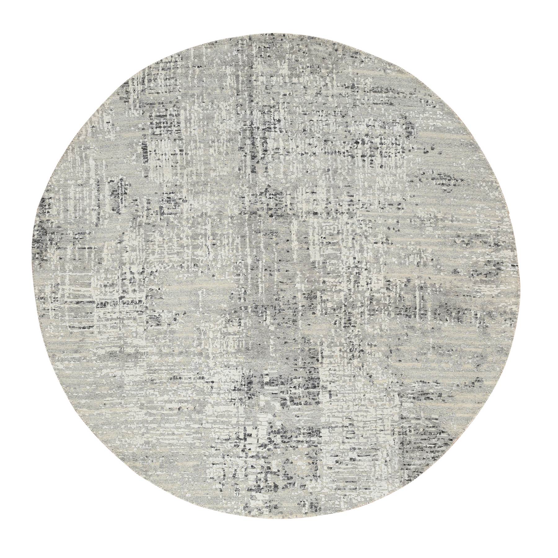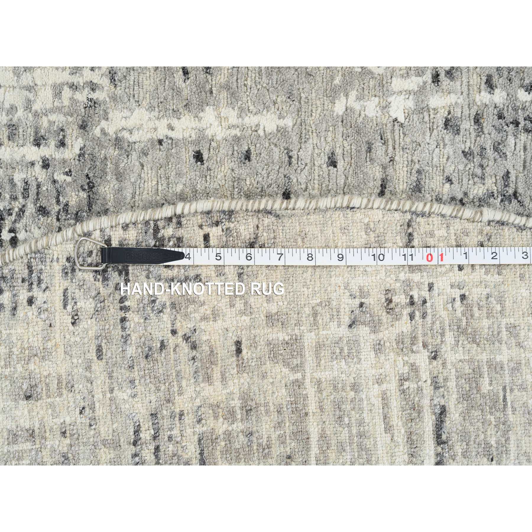6'x6' Light Gray, Modern Design, Hand Spun Undyed Natural Wool, Hand Knotted, Round Oriental Rug FWR388206