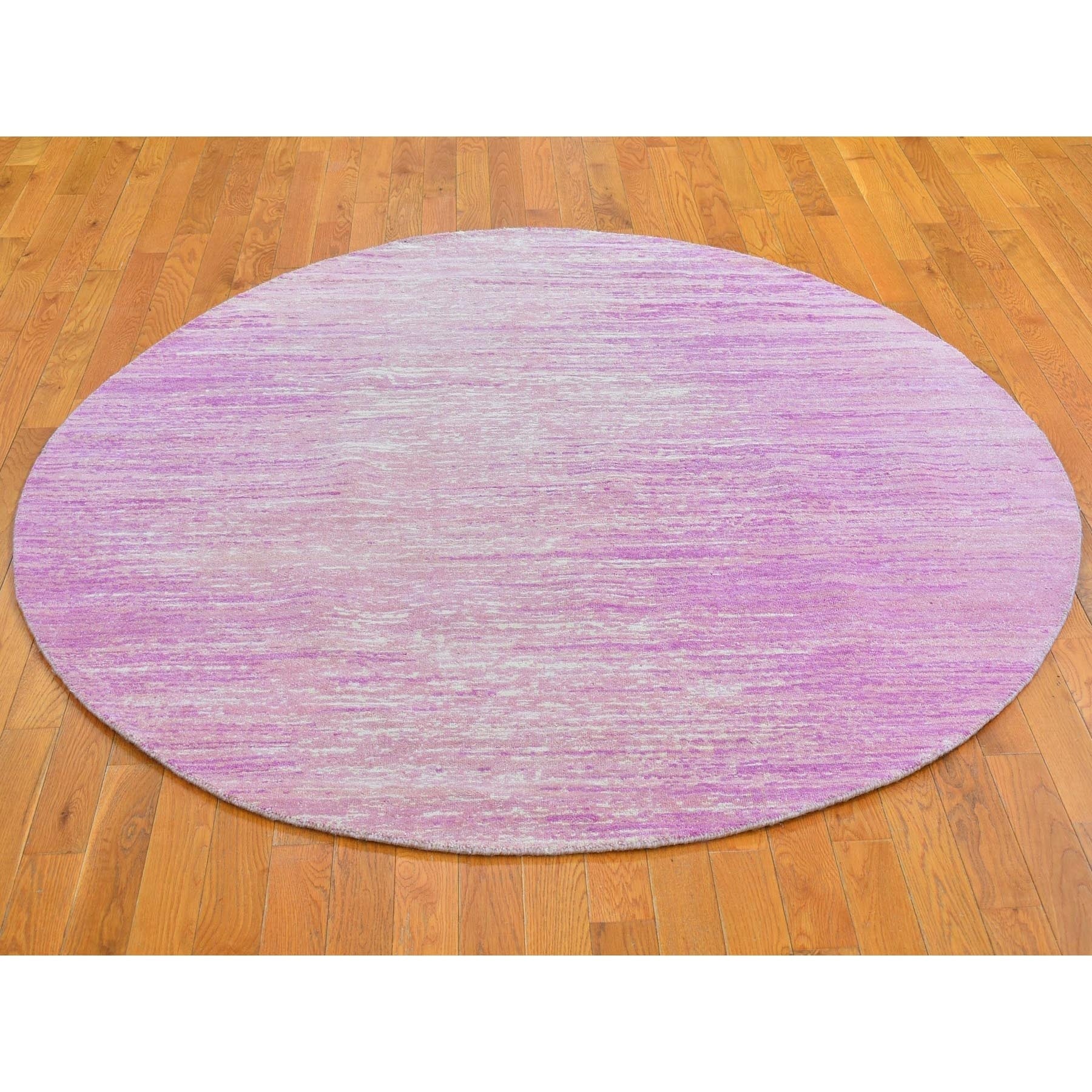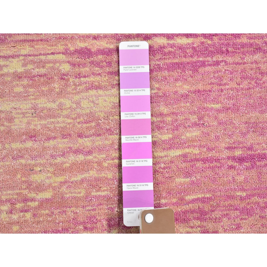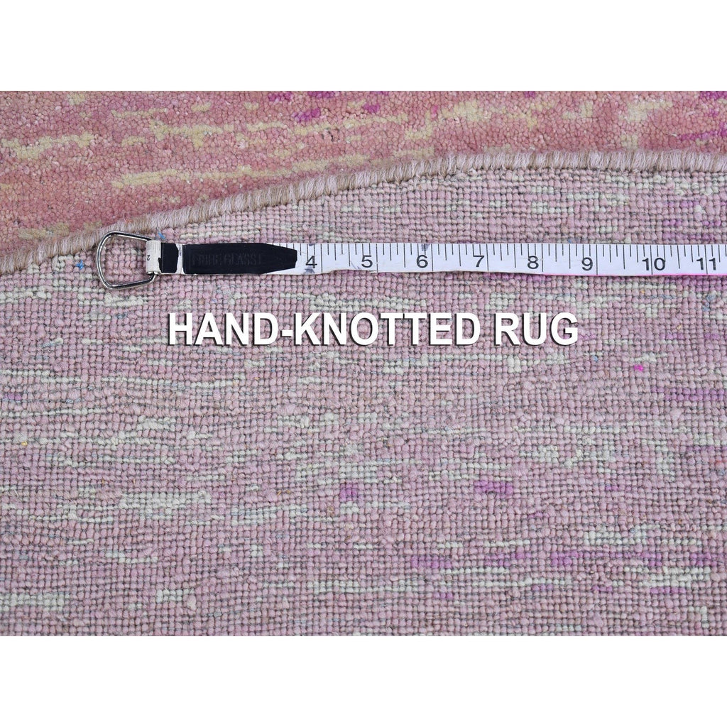 6'x6' Pink Pure Wool Horizontal Ombre Design Thick And Plush Hand Knotted Round Oriental Rug FWR398994