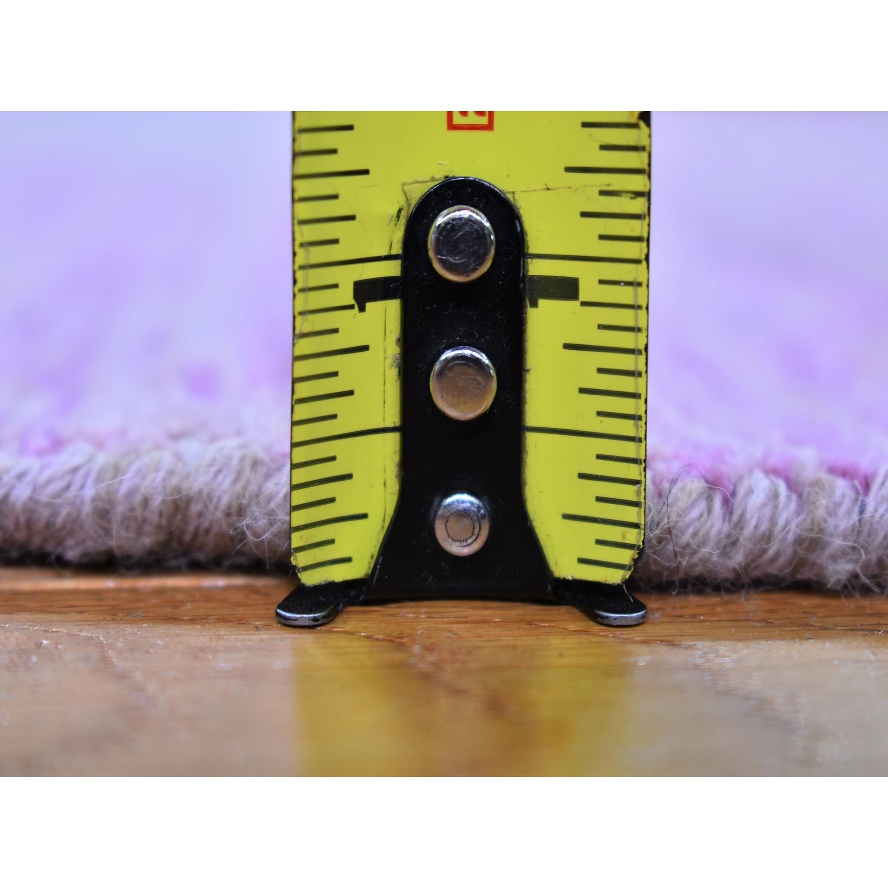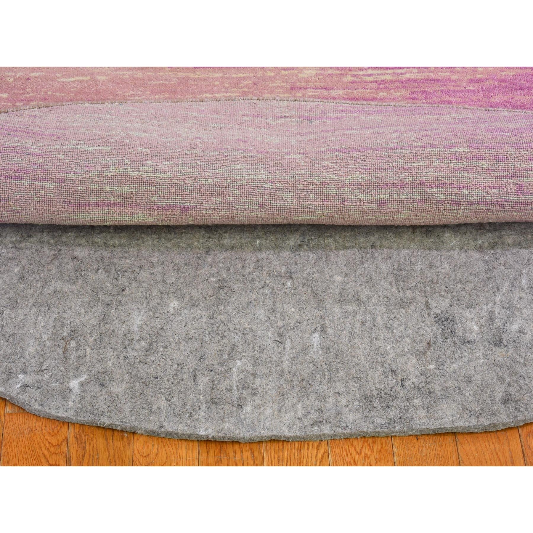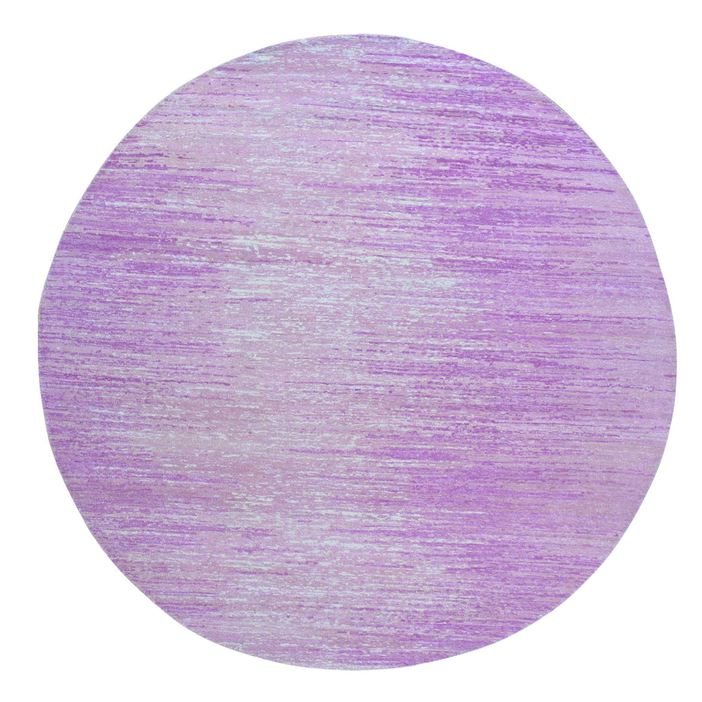 6'x6' Pink Pure Wool Horizontal Ombre Design Thick And Plush Hand Knotted Round Oriental Rug FWR398994