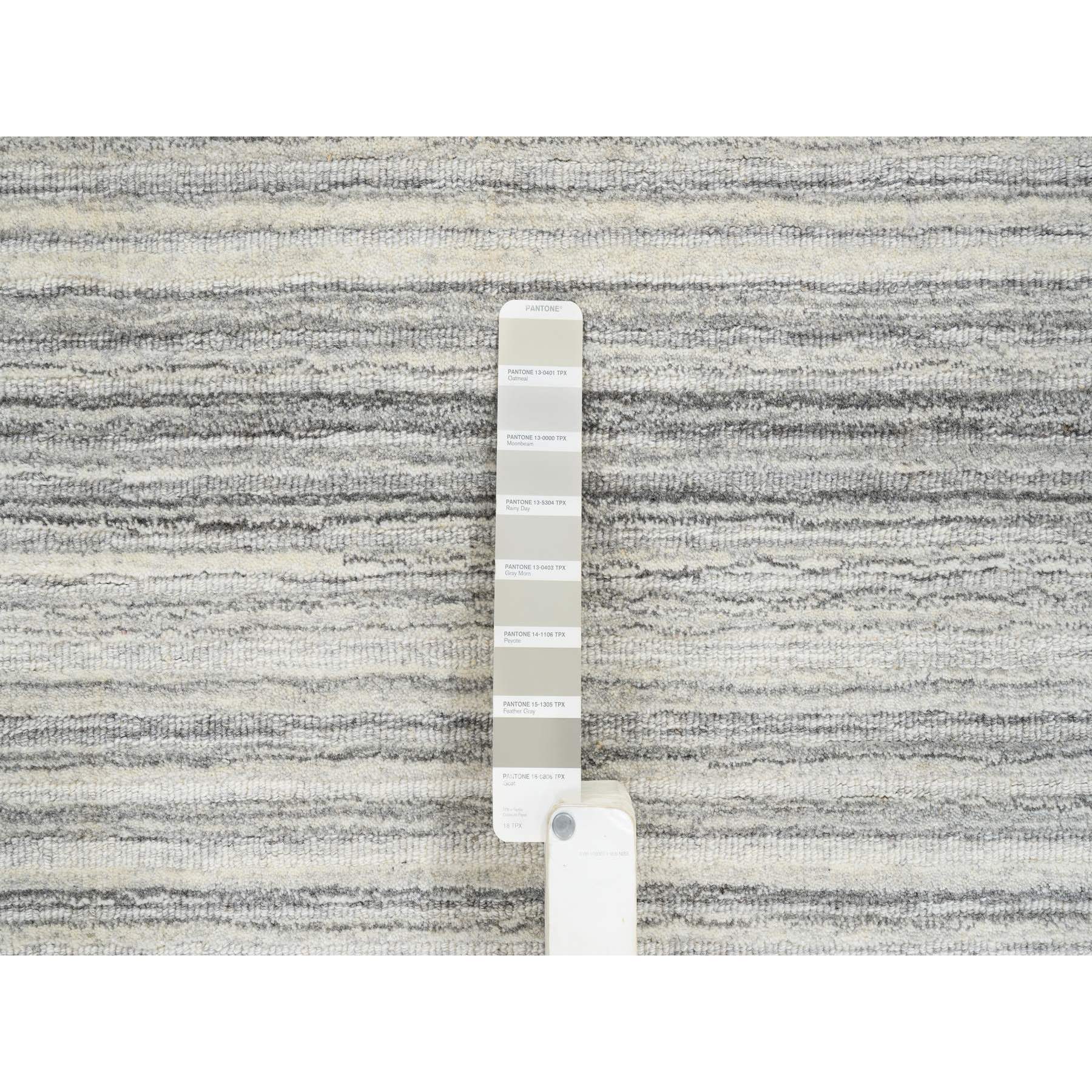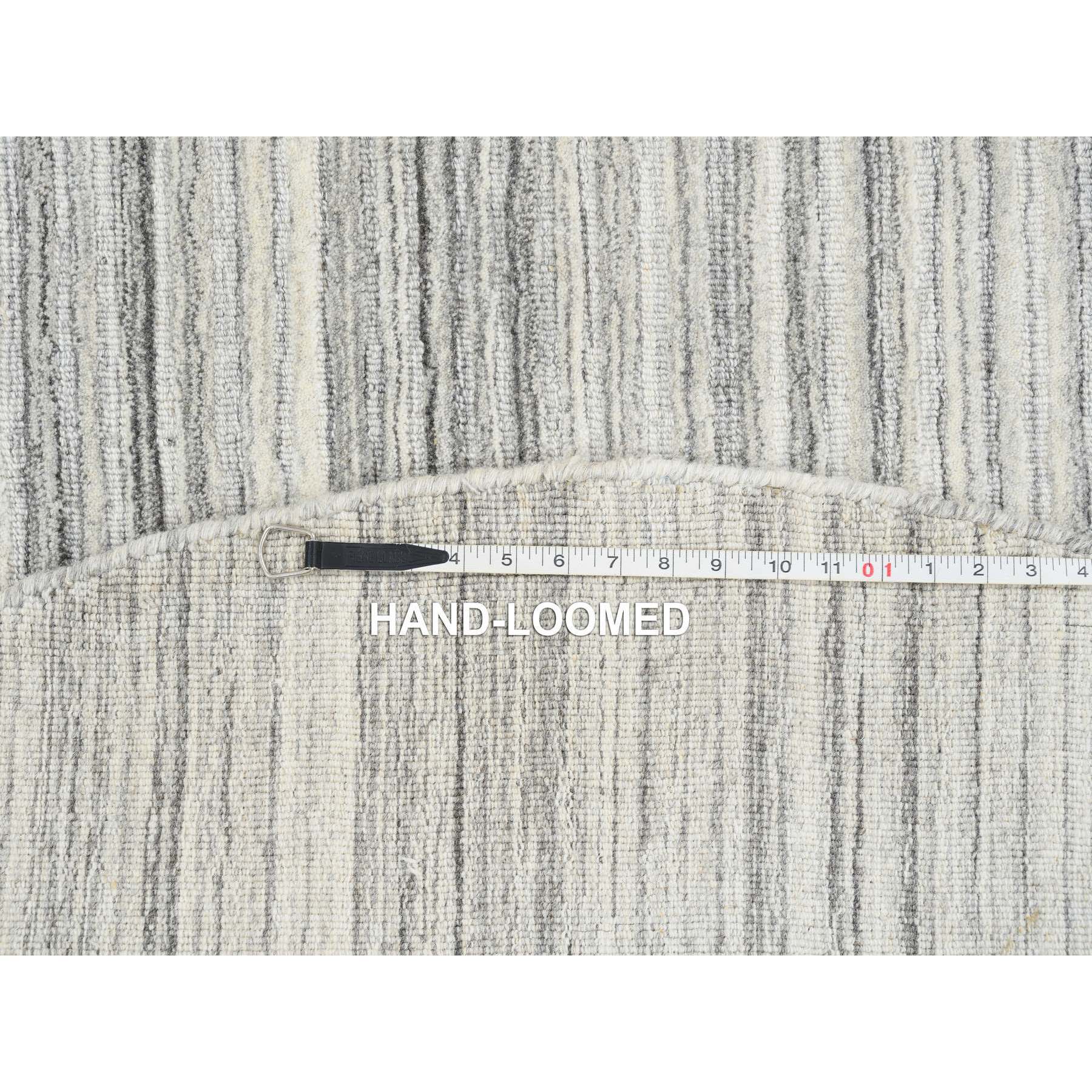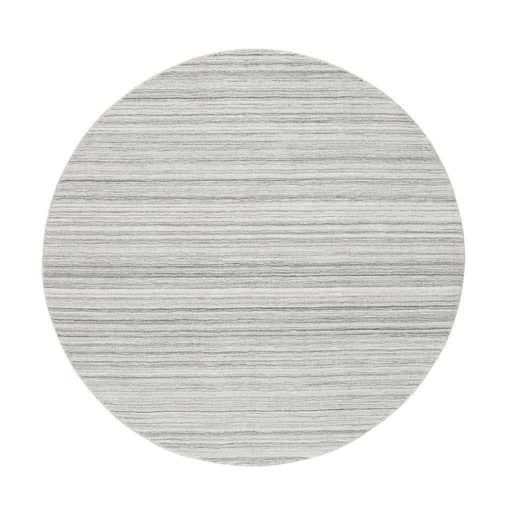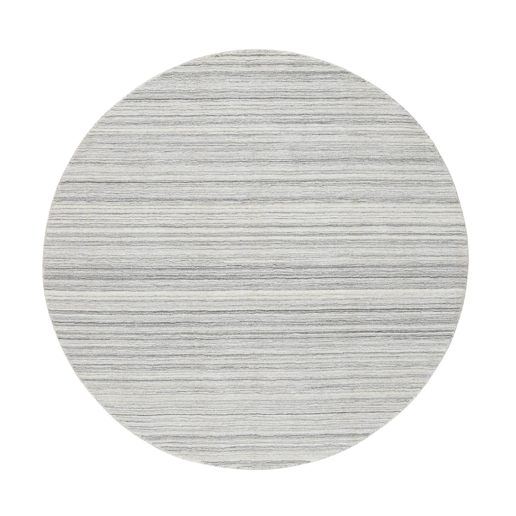6'x6' Platinum Gray And Cream, Thick And Plush Plain Hand Loomed, Undyed Natural Wool Modern Design, Round Oriental Rug FWR389910