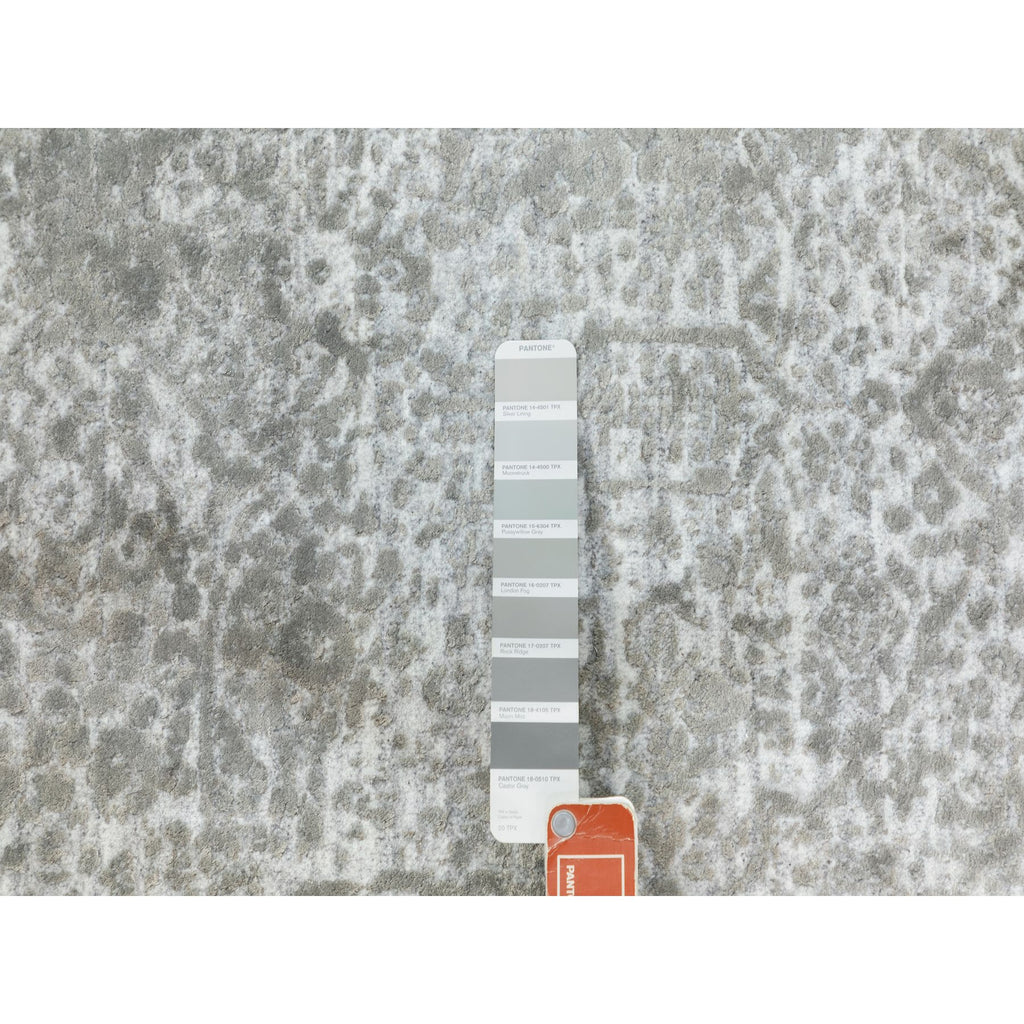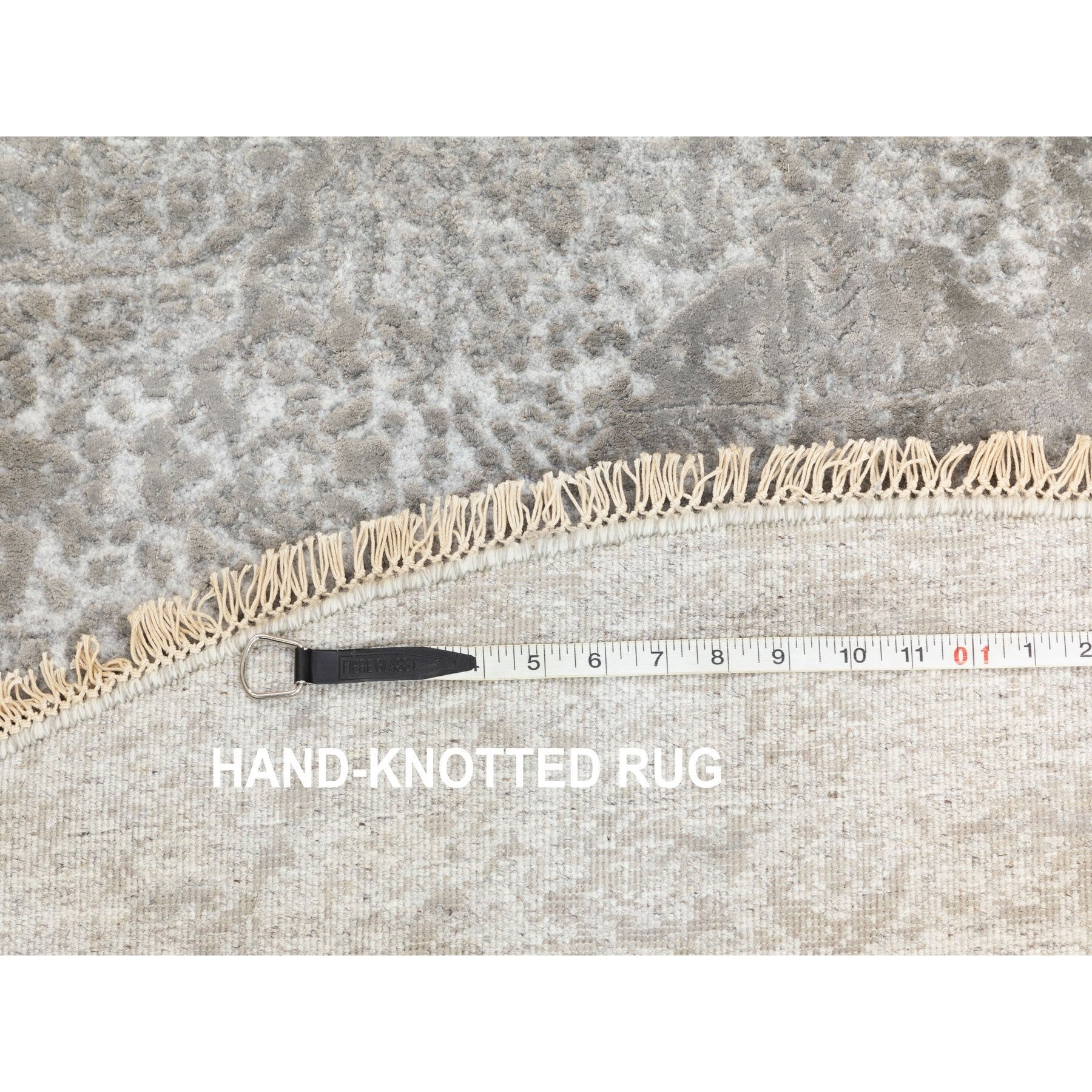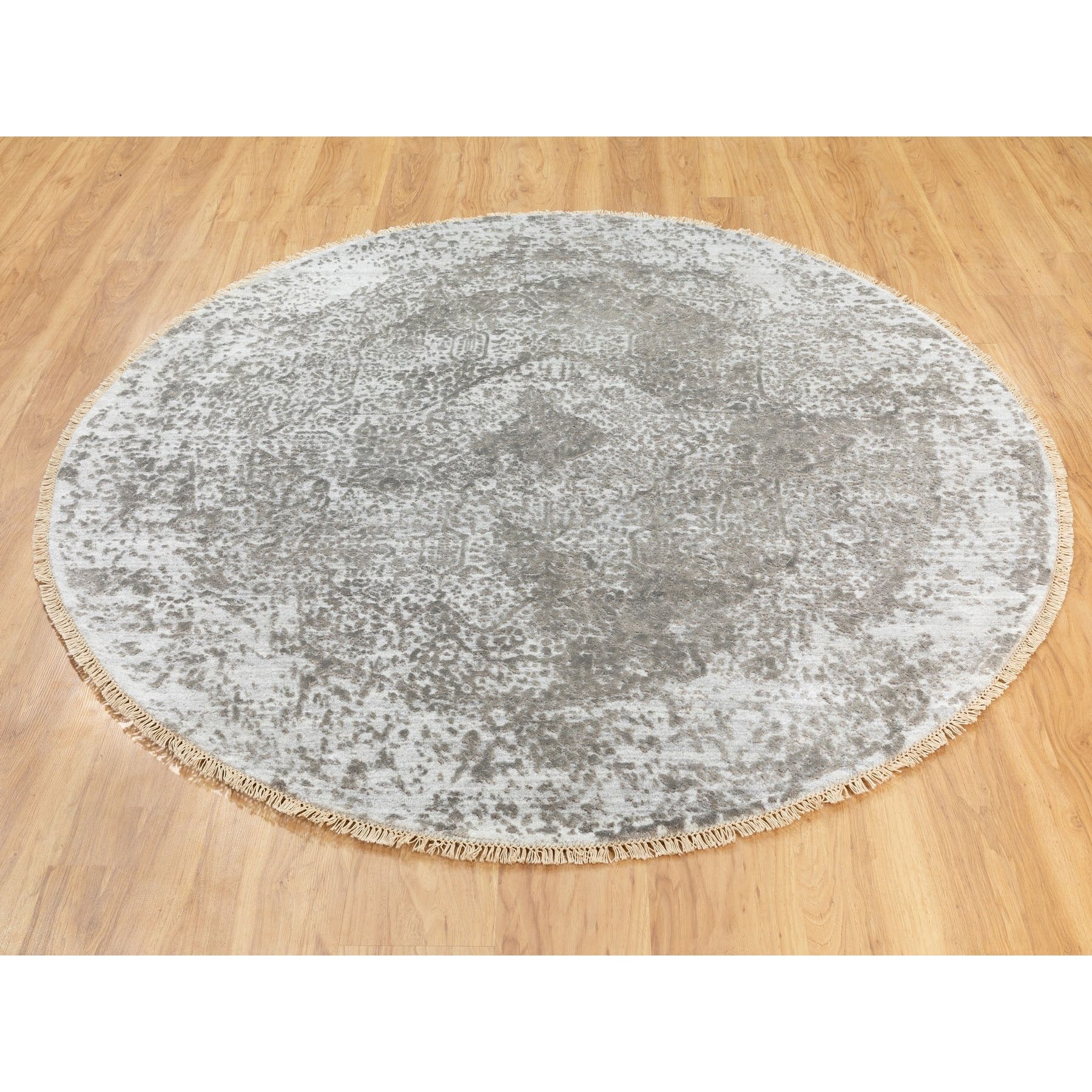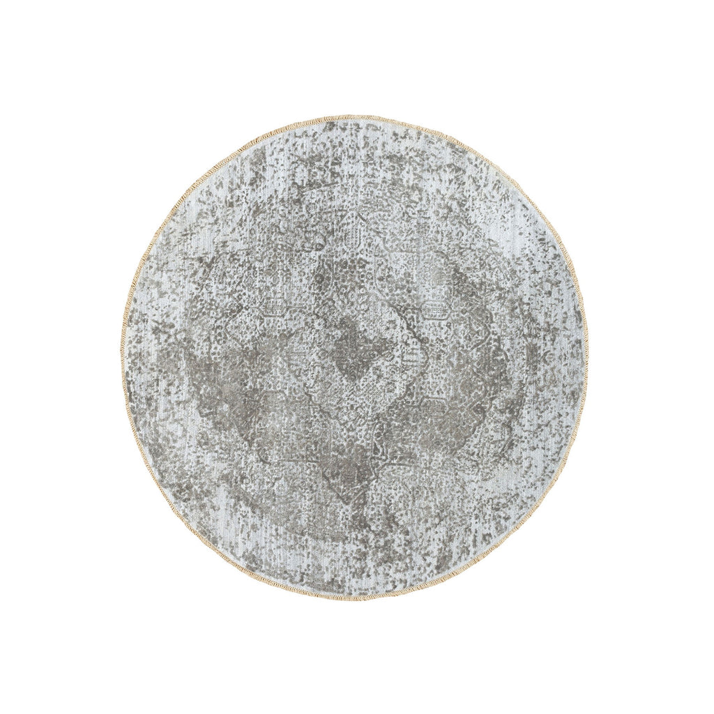 6'x6' Round Grey Broken Persian Design Wool And Pure Silk Hand Knotted Oriental Rug FWR372324