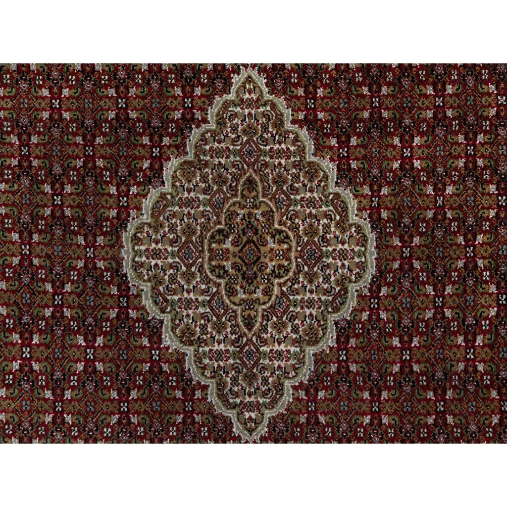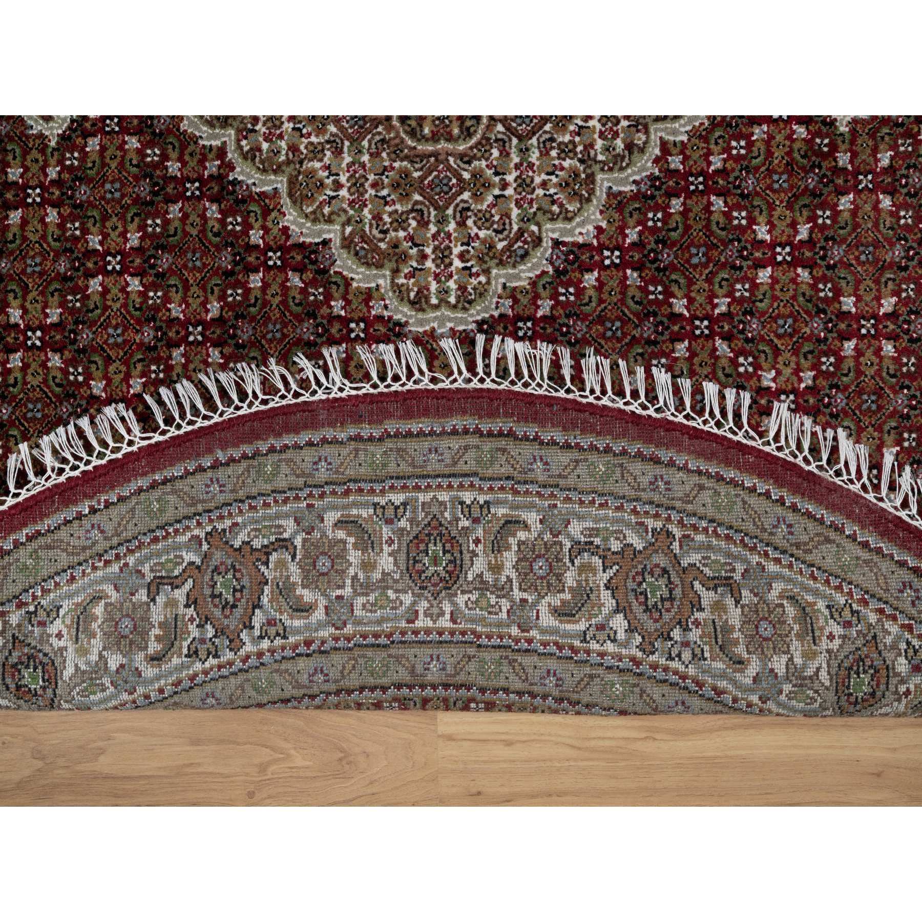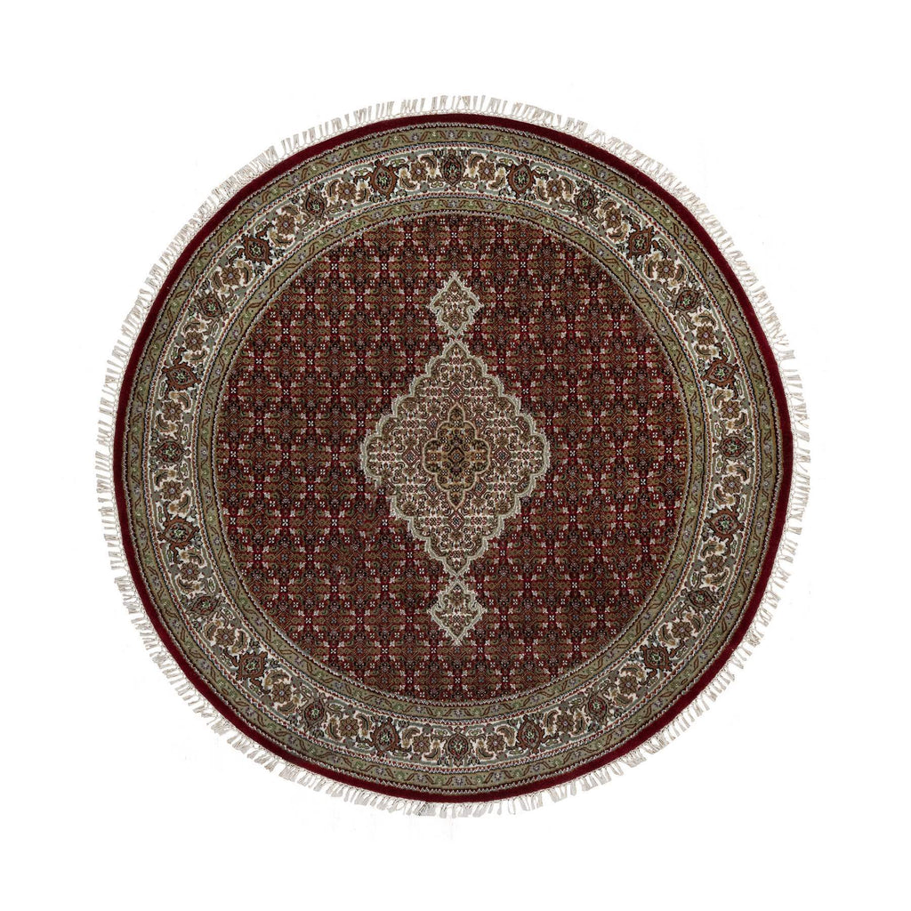 6'x6' Scarlet Red, Tabriz Mahi With Fish Medallion Design, Pure Wool, Hand Knotted, Densely Woven, Round, Oriental Rug FWR546138