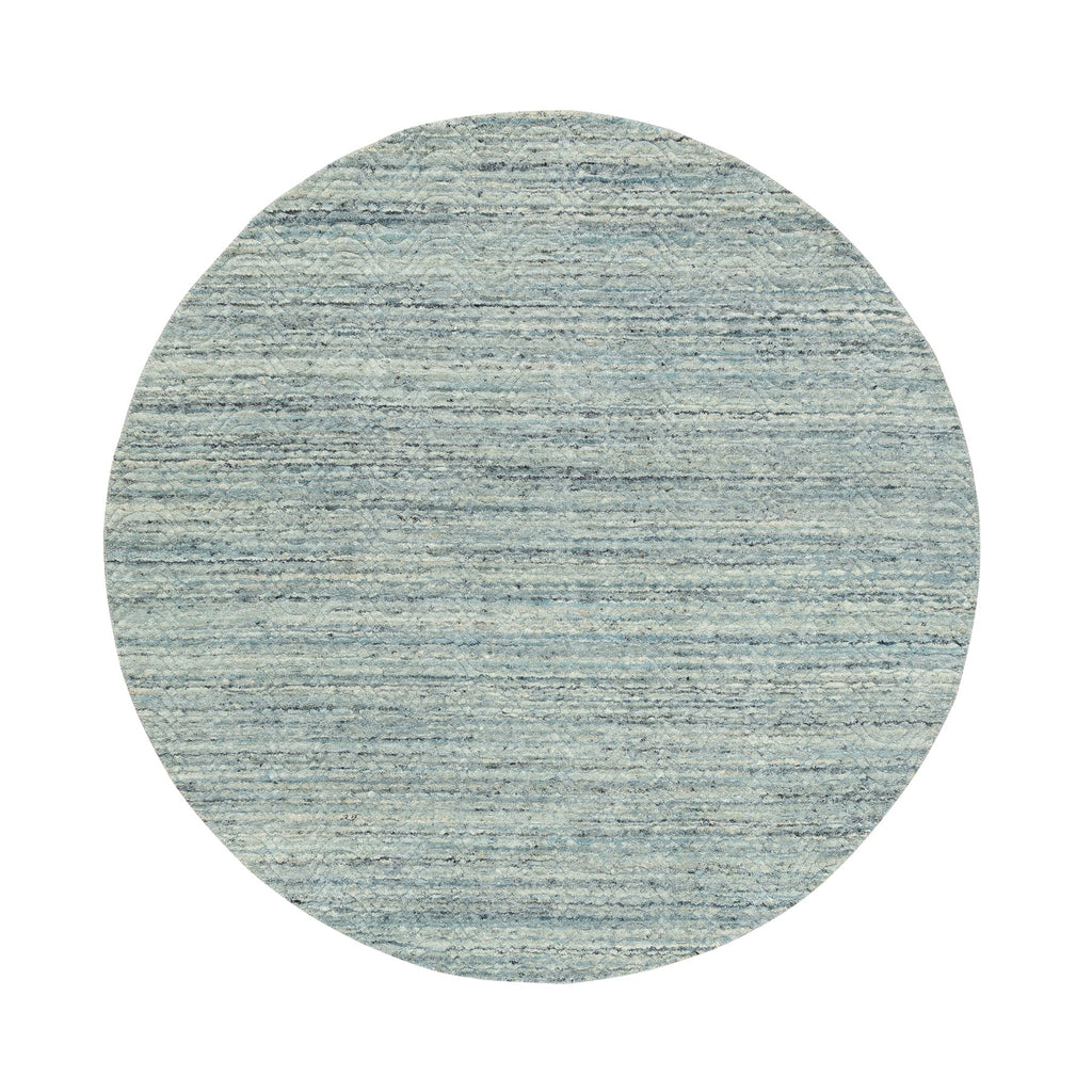 6'x6' Seafoam Green Hand Loomed Variegated Textured Design Round Organic Wool Modern Oriental Rug FWR351612