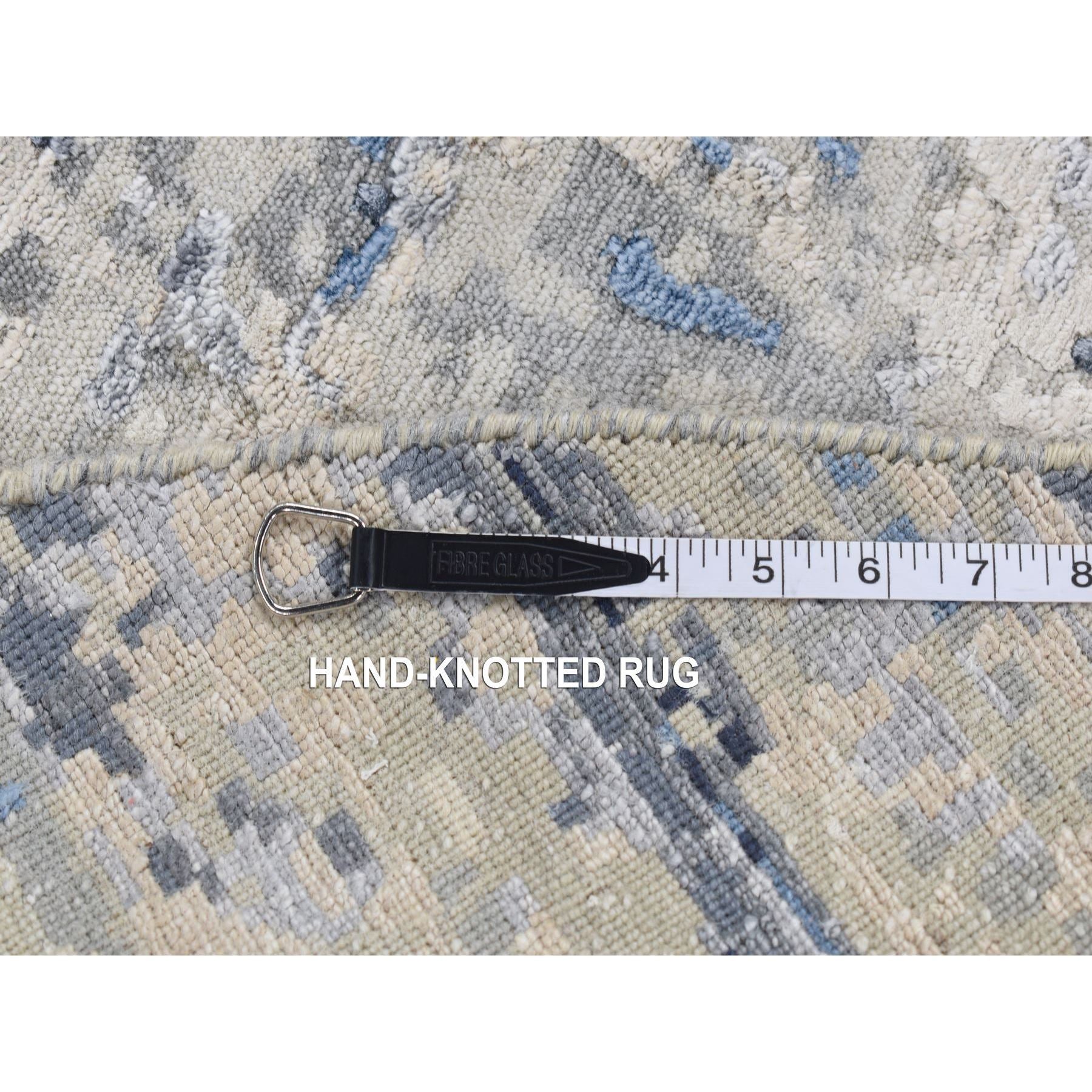 6'x6' Space Cadet Blue, Broken And Erased Mosaic Design, Wool And Silk, Hand Knotted, Round Oriental Rug FWR526308