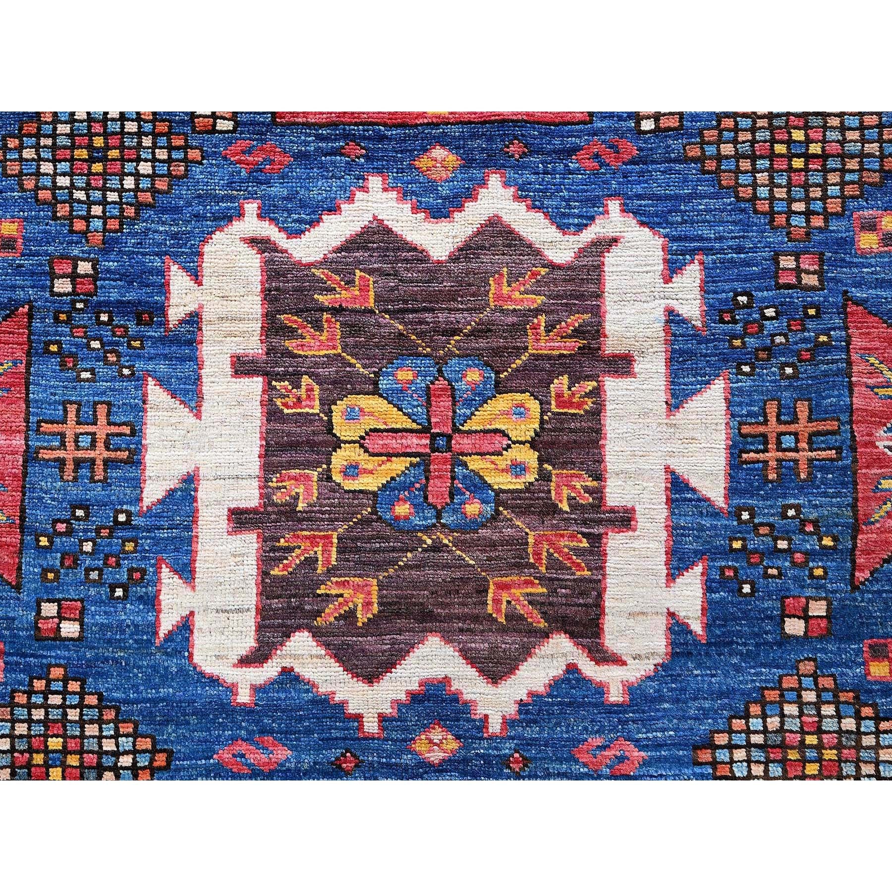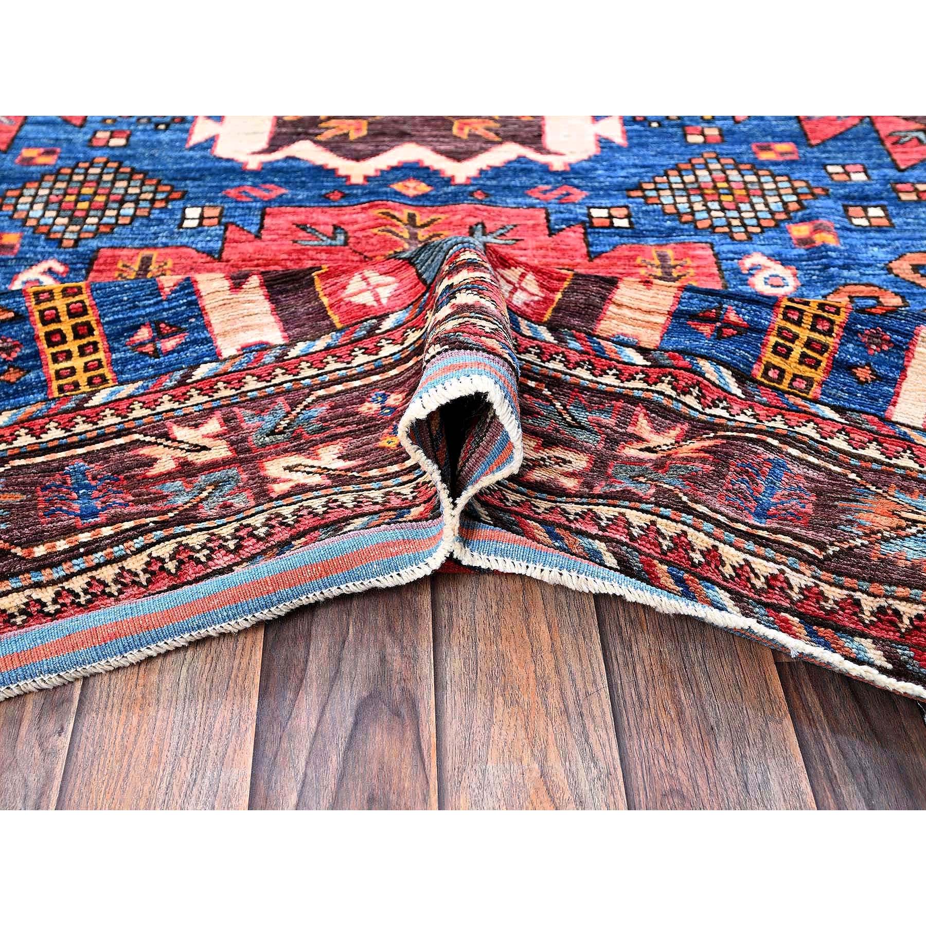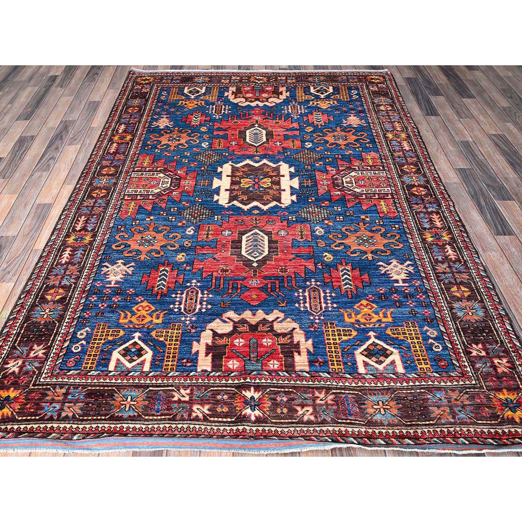6'x7'10" Imperial Blue, Afghan Ersari With Turkish Knot, Caucasian Design Revival, Vegetable Dyes, Densely Woven, Hand Knotted, Soft And Velvety Wool, Oriental Rug FWR3504