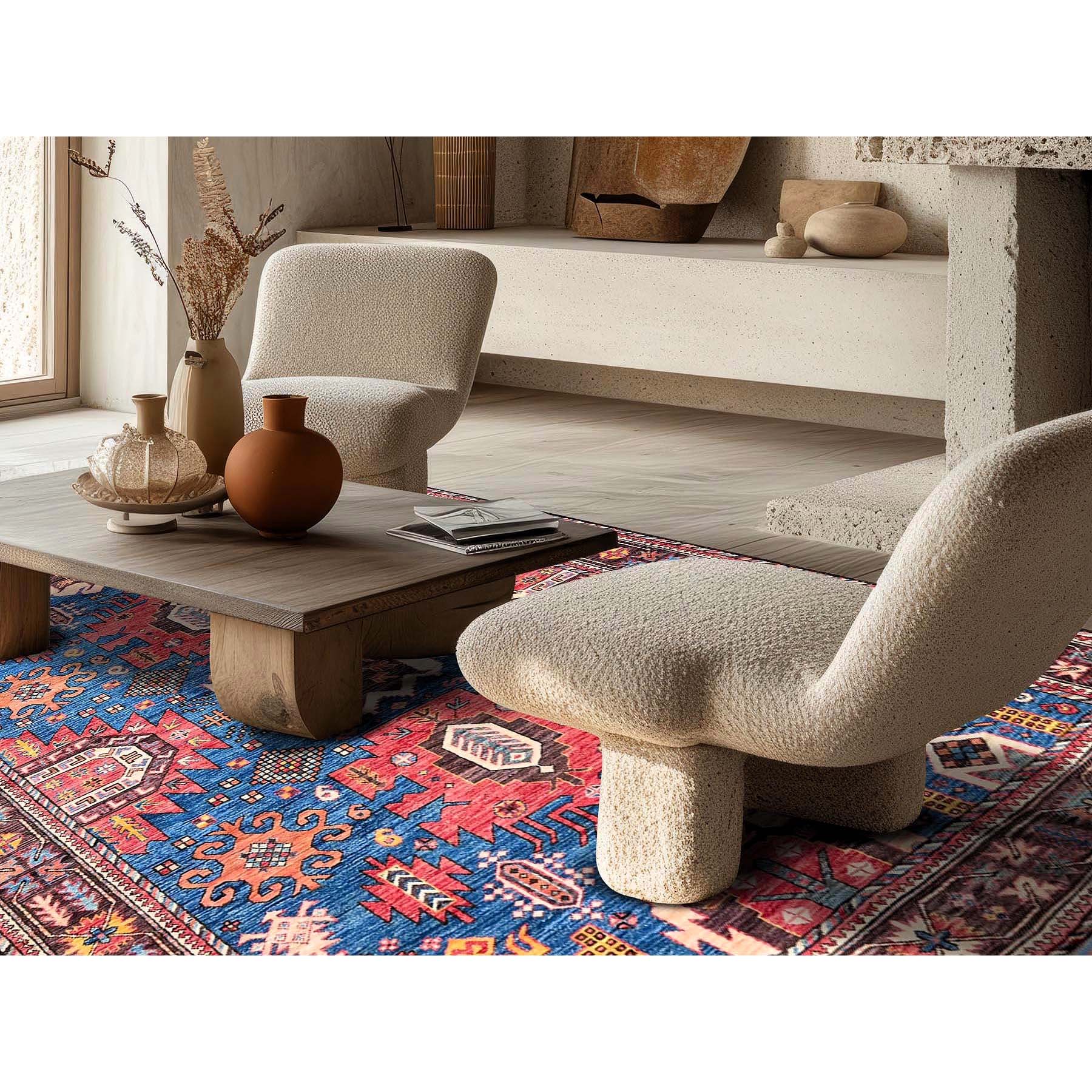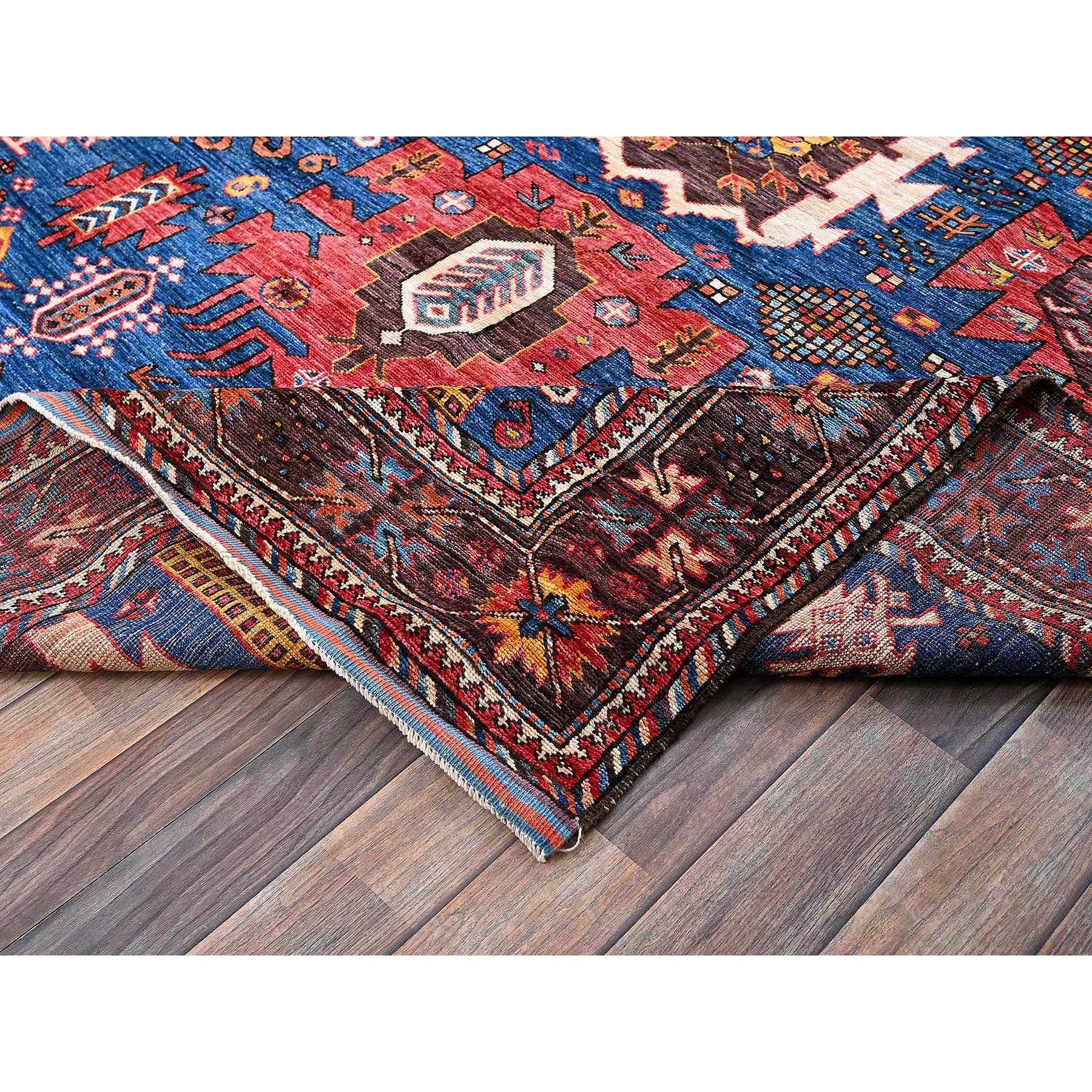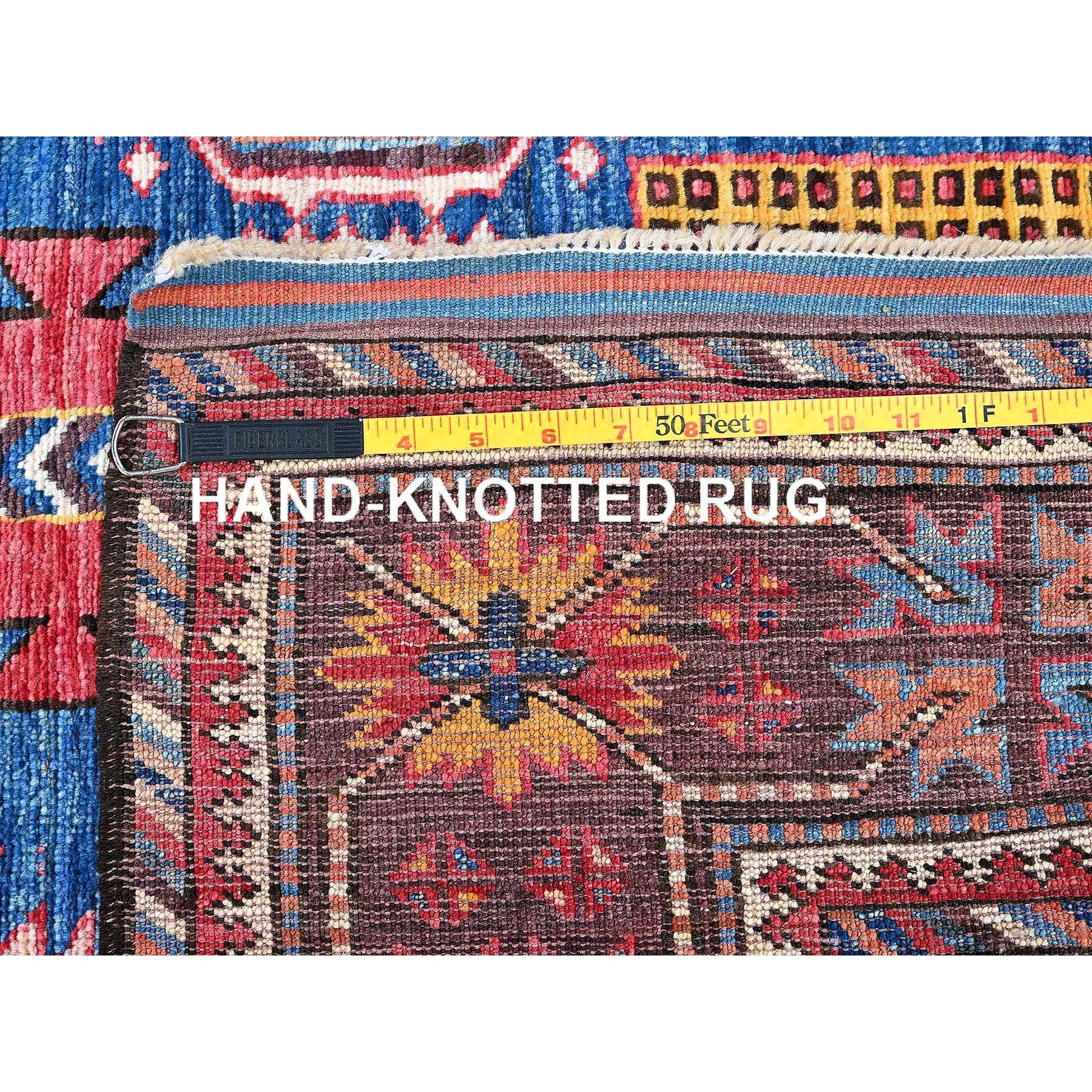 6'x7'10" Imperial Blue, Afghan Ersari With Turkish Knot, Caucasian Design Revival, Vegetable Dyes, Densely Woven, Hand Knotted, Soft And Velvety Wool, Oriental Rug FWR3504