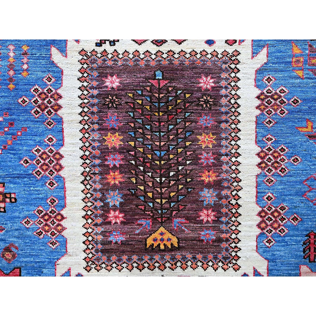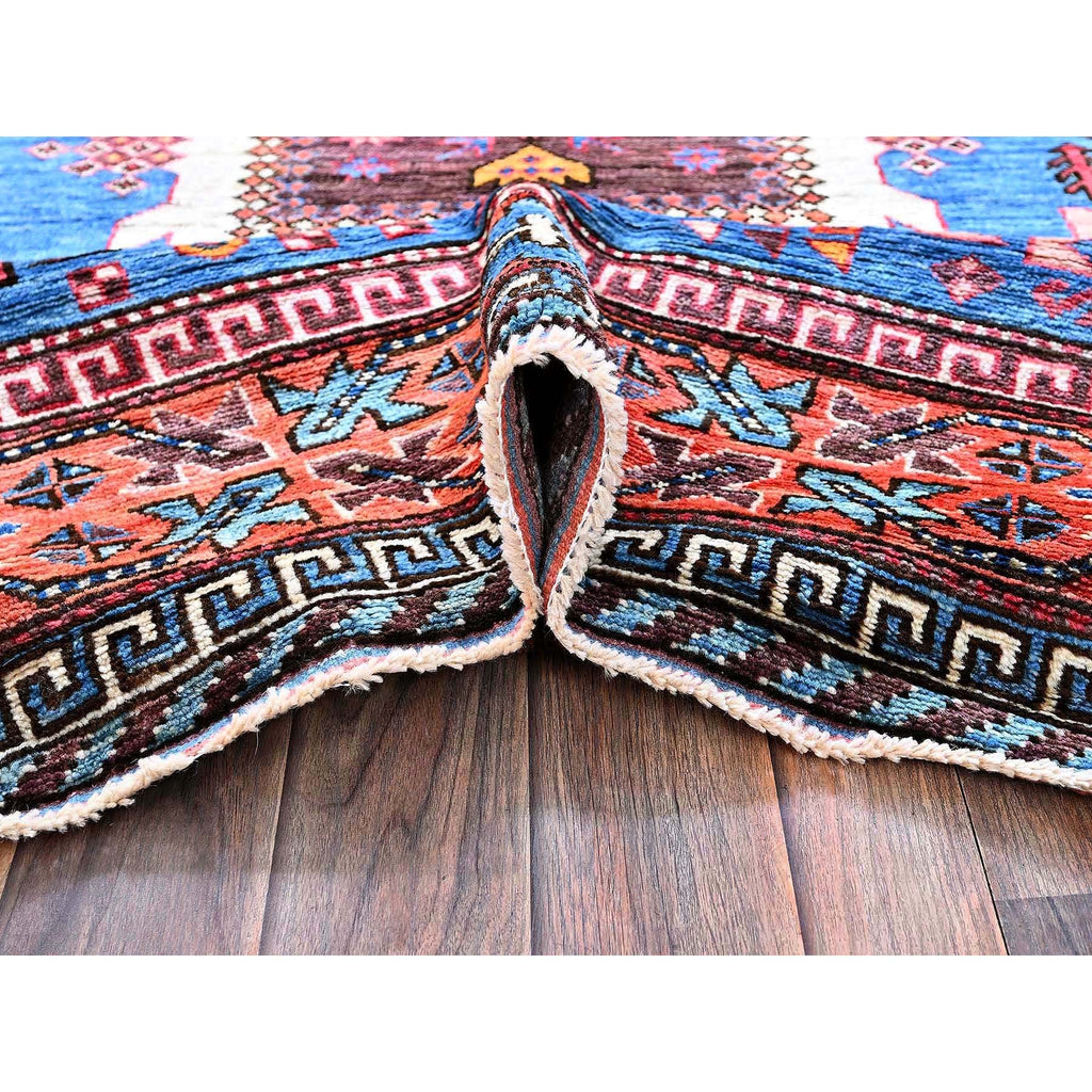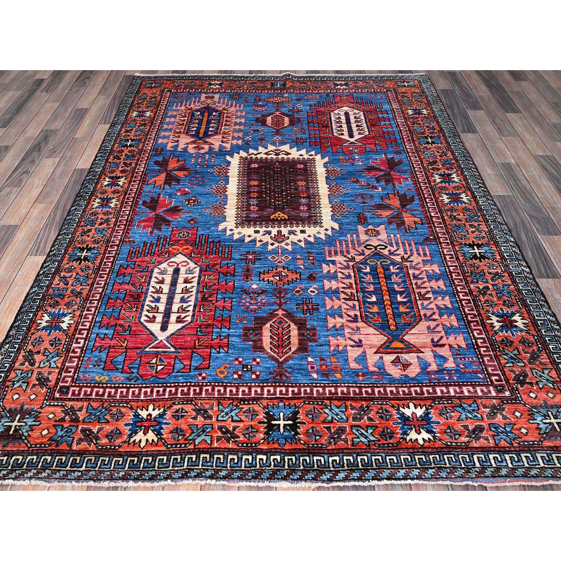 6'x7'8" Bayern Blue, Afghan Ersari With Turkish Knot, Caucasian Design Revival, Vegetable Dyes, Densely Woven, Hand Knotted, Soft Wool, Oriental Rug FWR3498