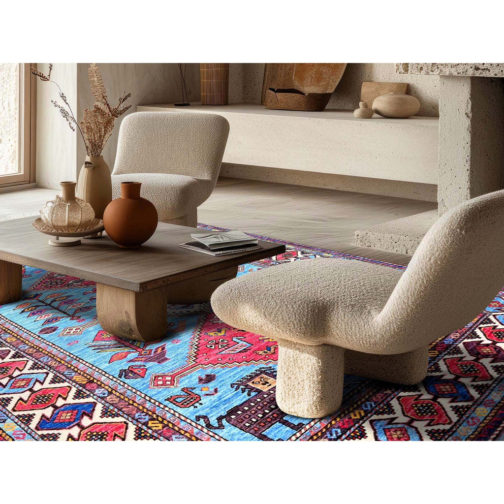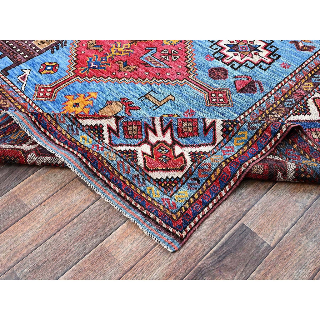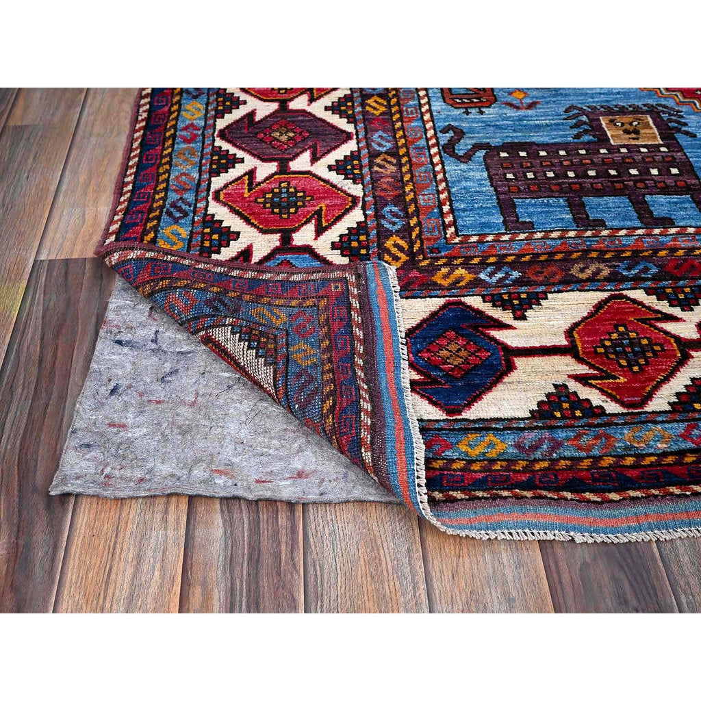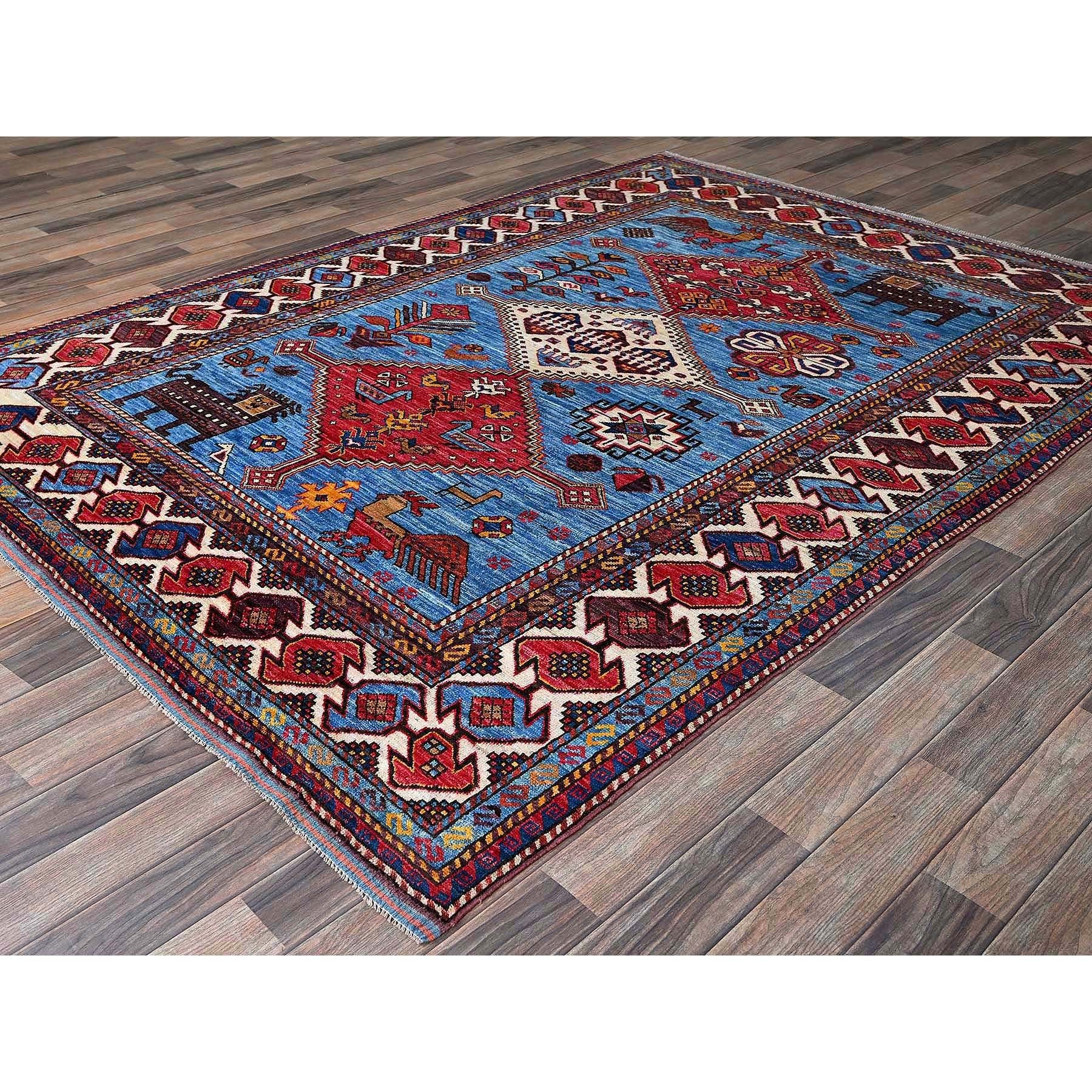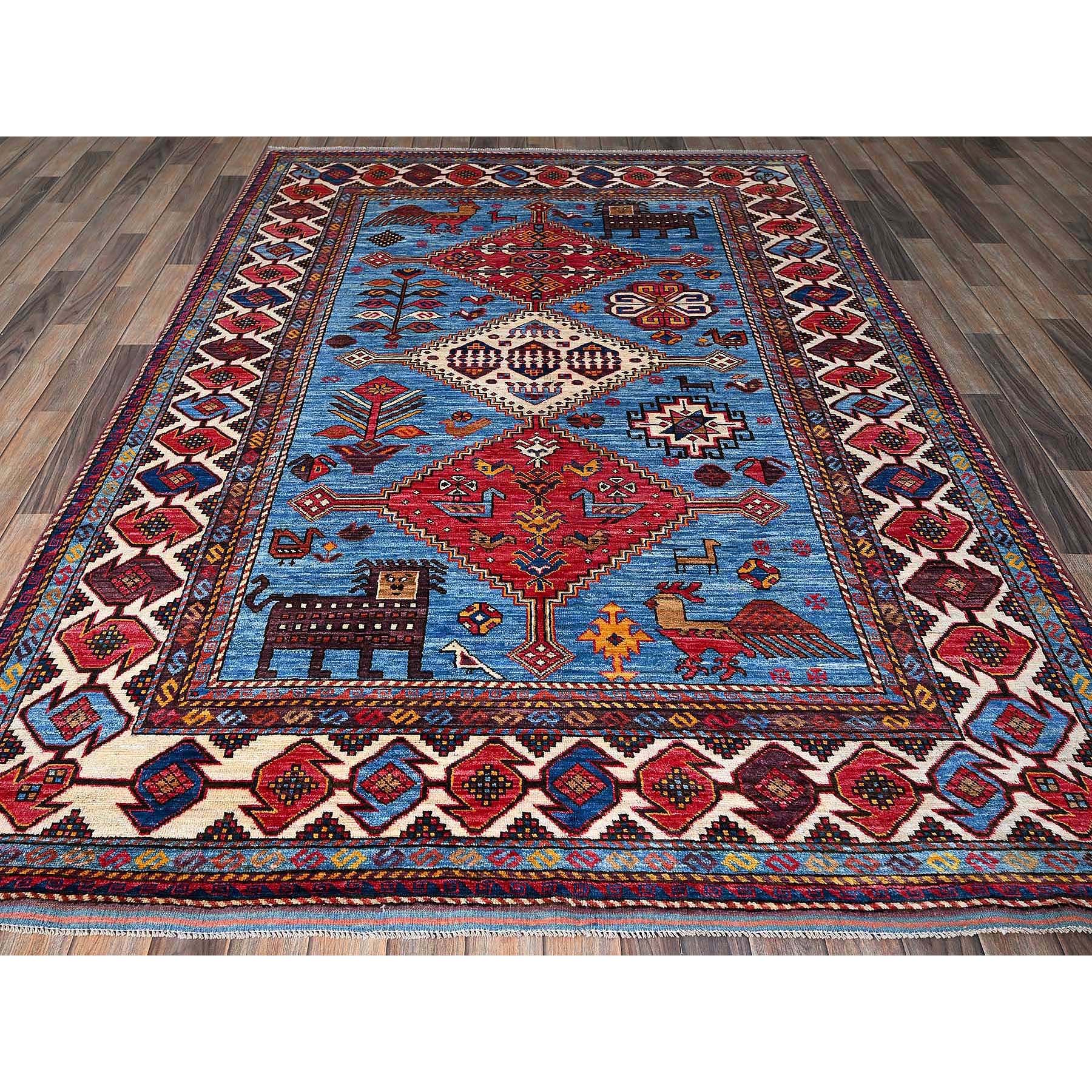 6'x8'1" Maya Blue, Afghan Ersari With Turkish Knot, Caucasian Design Revival, Birds And Lion Figurines, Vegetable Dyes, Hand Knotted, Soft Wool, Oriental Rug FWR3426