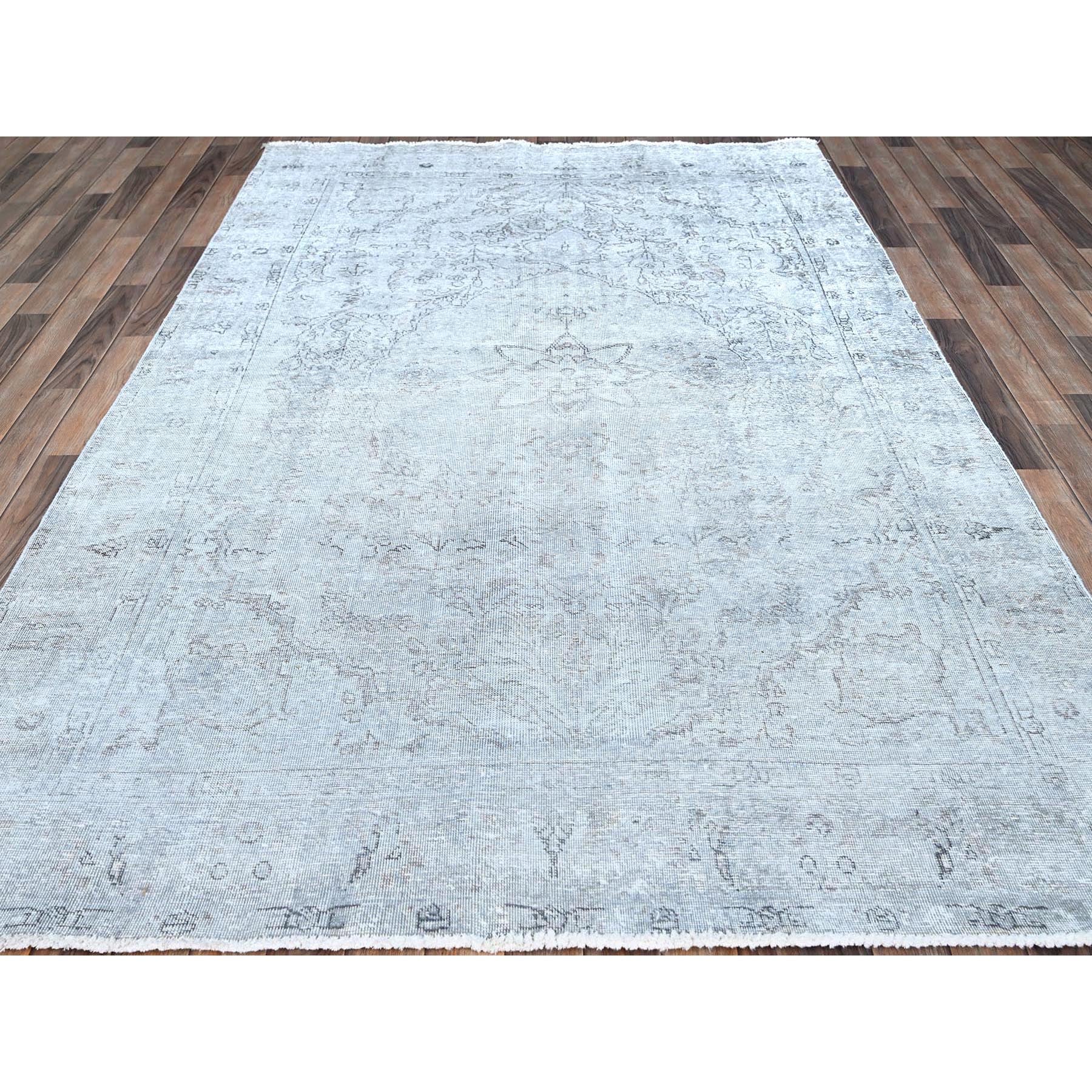6'x8'10" Blue Gray, Hand Knotted Sides And Ends Professionally Secured And Cleaned, Vintage Persian Tabriz, Cropped Thin, Sheared Low, Evenly Worn, Shiny Wool, Oriental Distressed Rug FWR521622