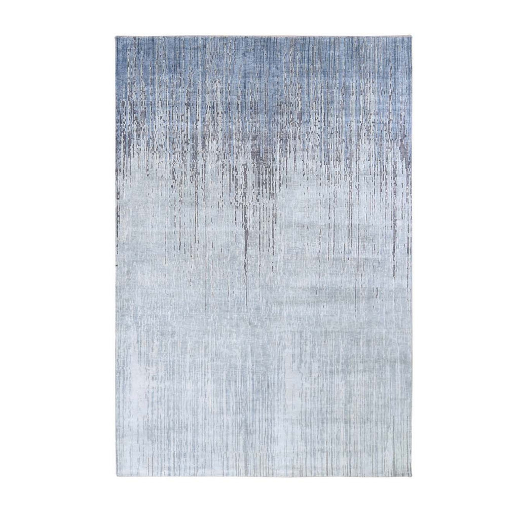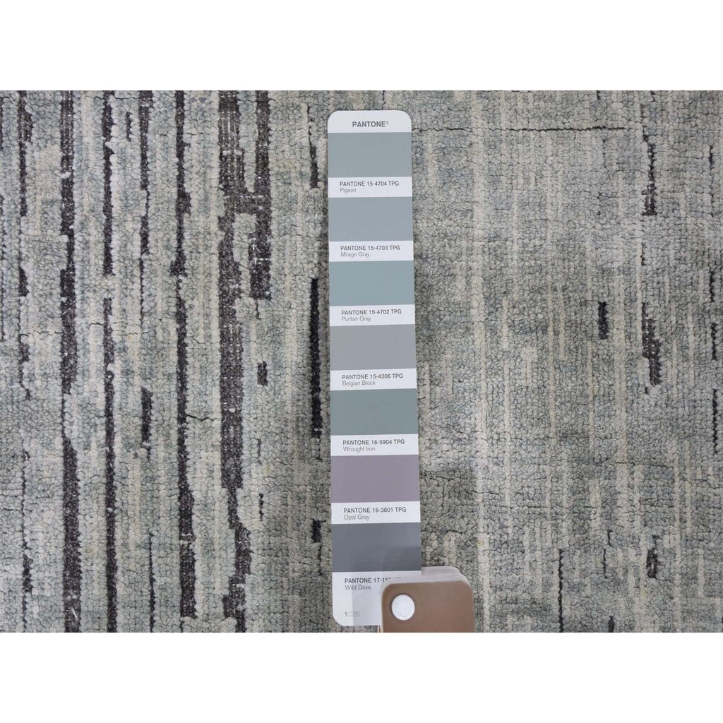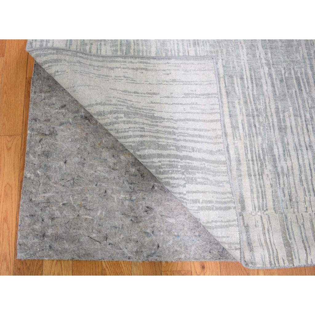 6'x8'10" Gray Vertical Ombre Design Pure Silk Hand Knotted Oriental Rug FWR355542