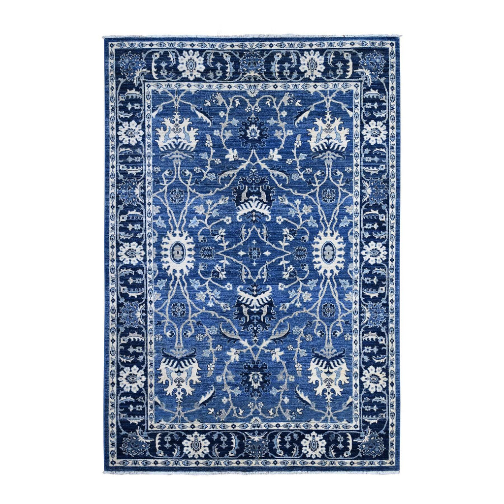 6'x8'10" Jeans Blue, Hand Knotted, Peshawar Mahal All Over Design, Soft And Velvety Wool, Natural Dyes, Oriental Rug FWR535056