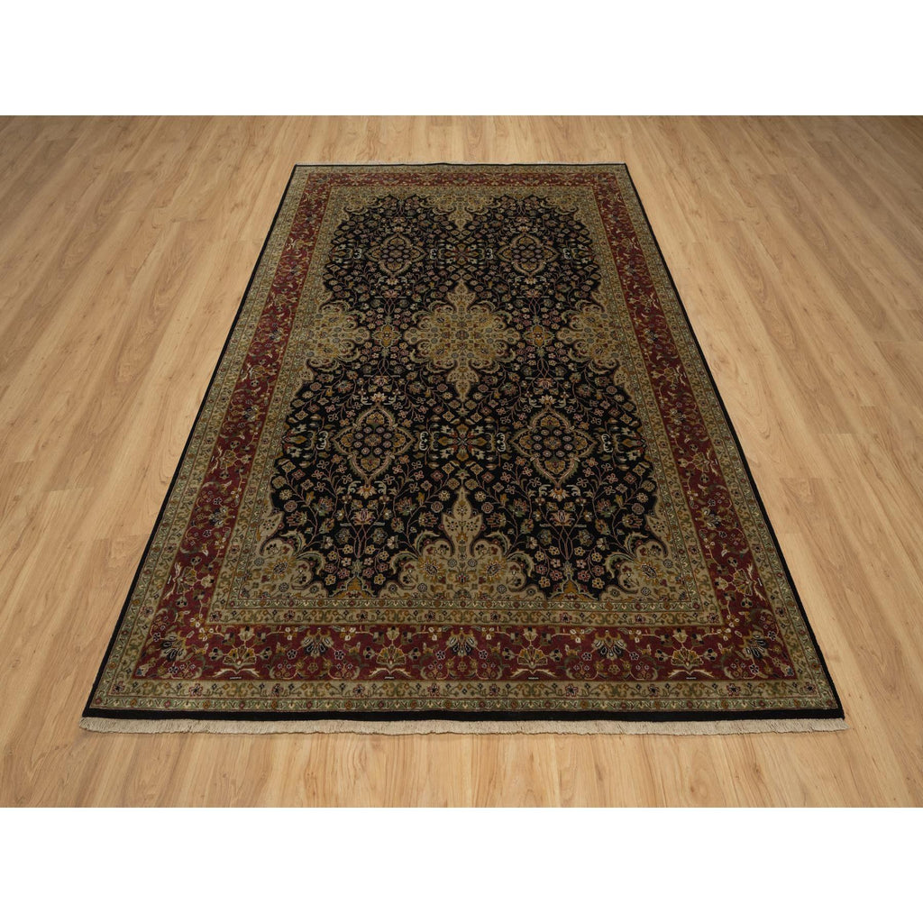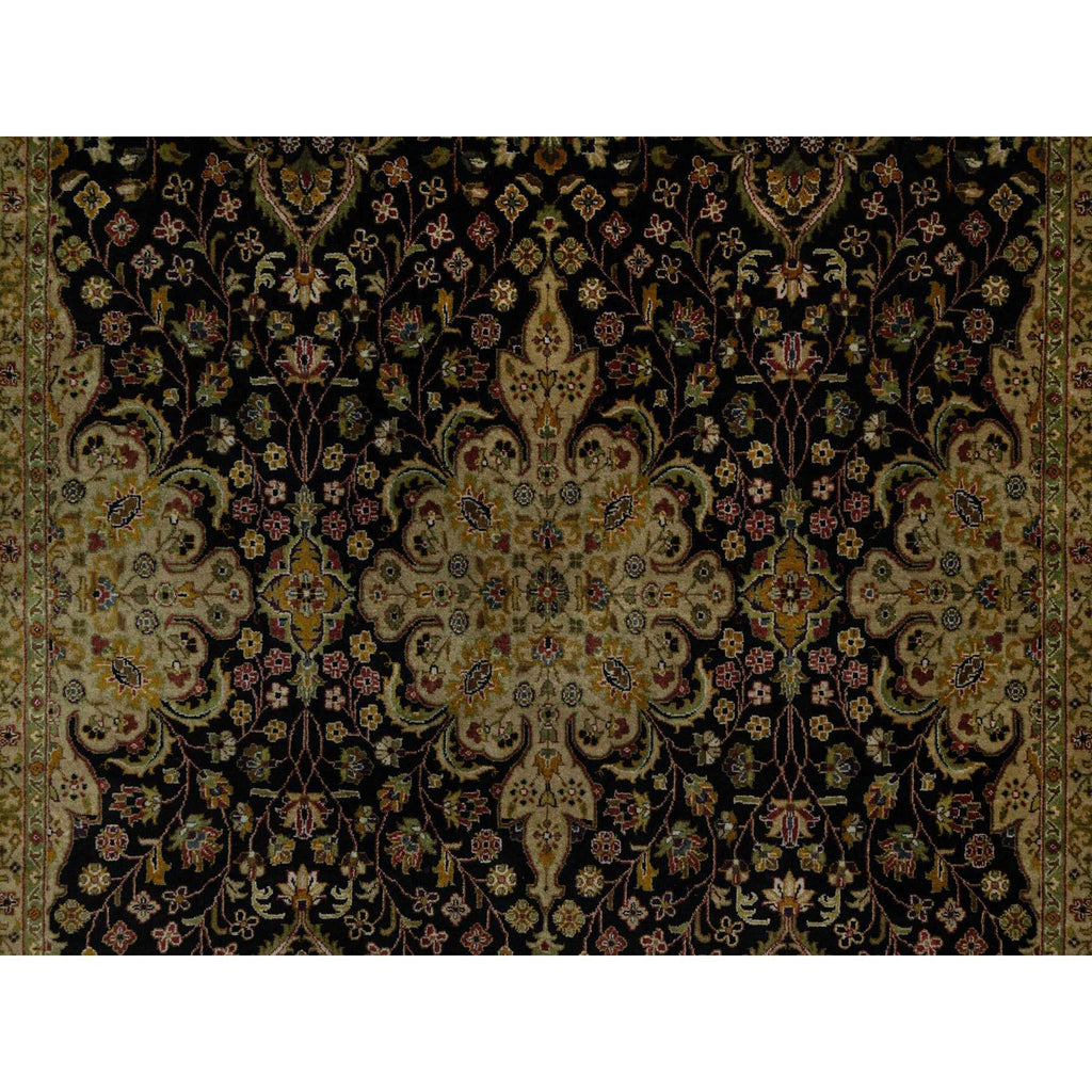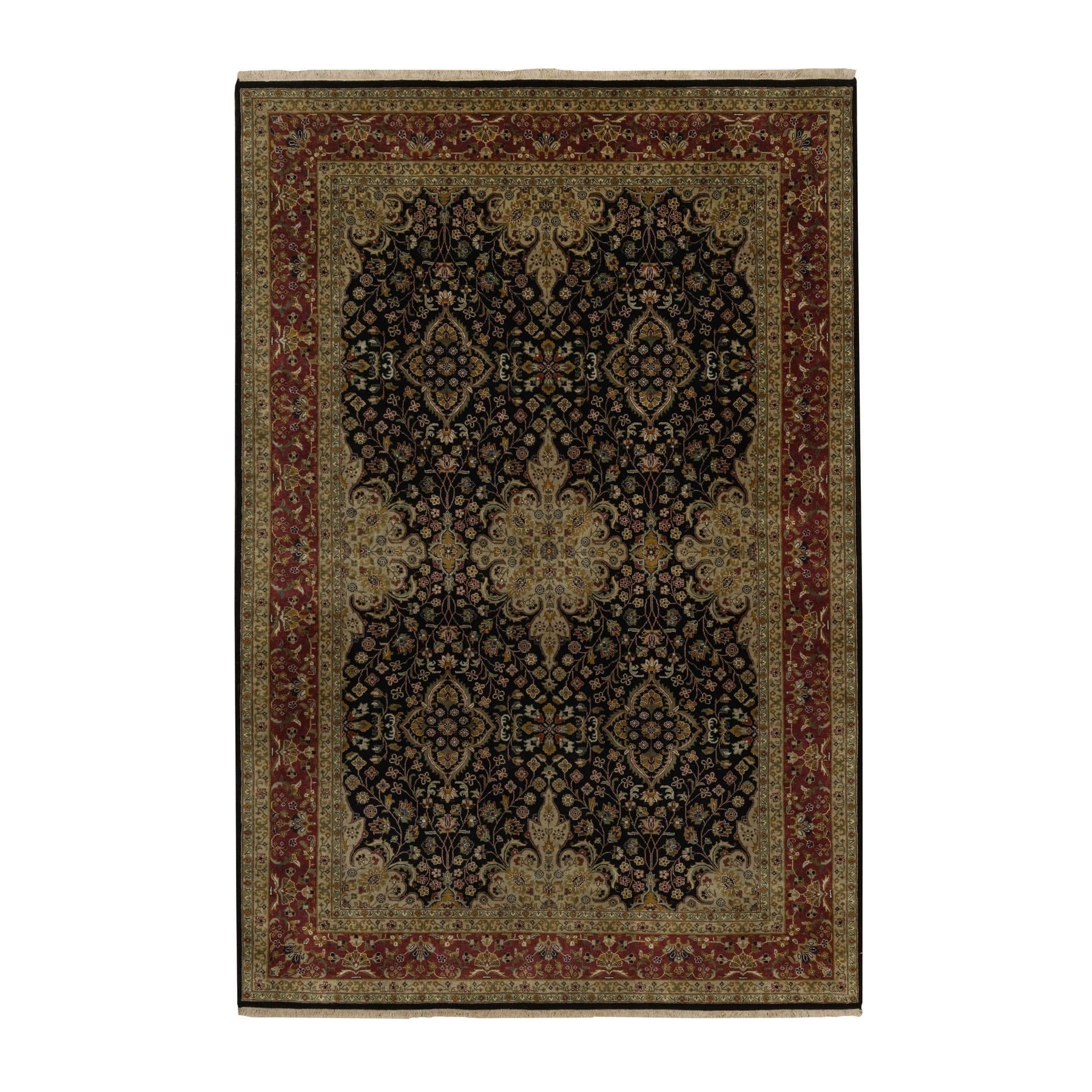 6'x8'10" Onyx Black, Intricate Kashan Revival, Hand Spun New Zealand Wool, 300 Kpsi, Hand Knotted, Oriental Rug FWR548526