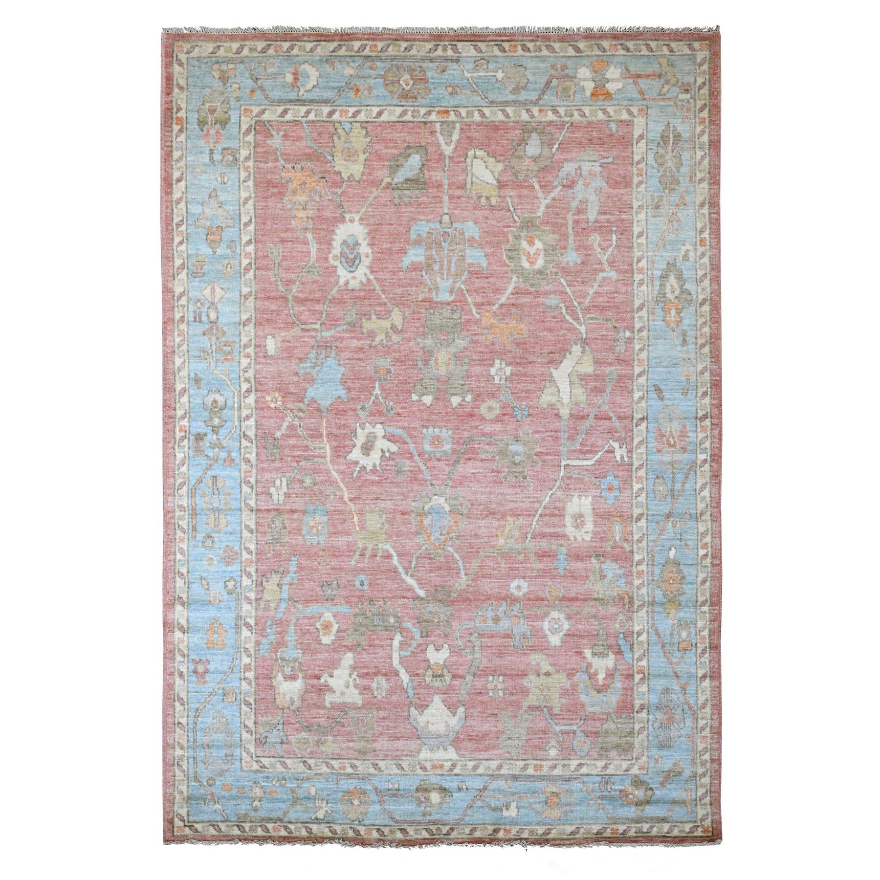 6'x8'10" Rouge Pink, Afghan Angora Oushak With All Over Leaf Design, Hand Knotted, Natural Dyes, 100% Wool, Oriental Rug FWR122466