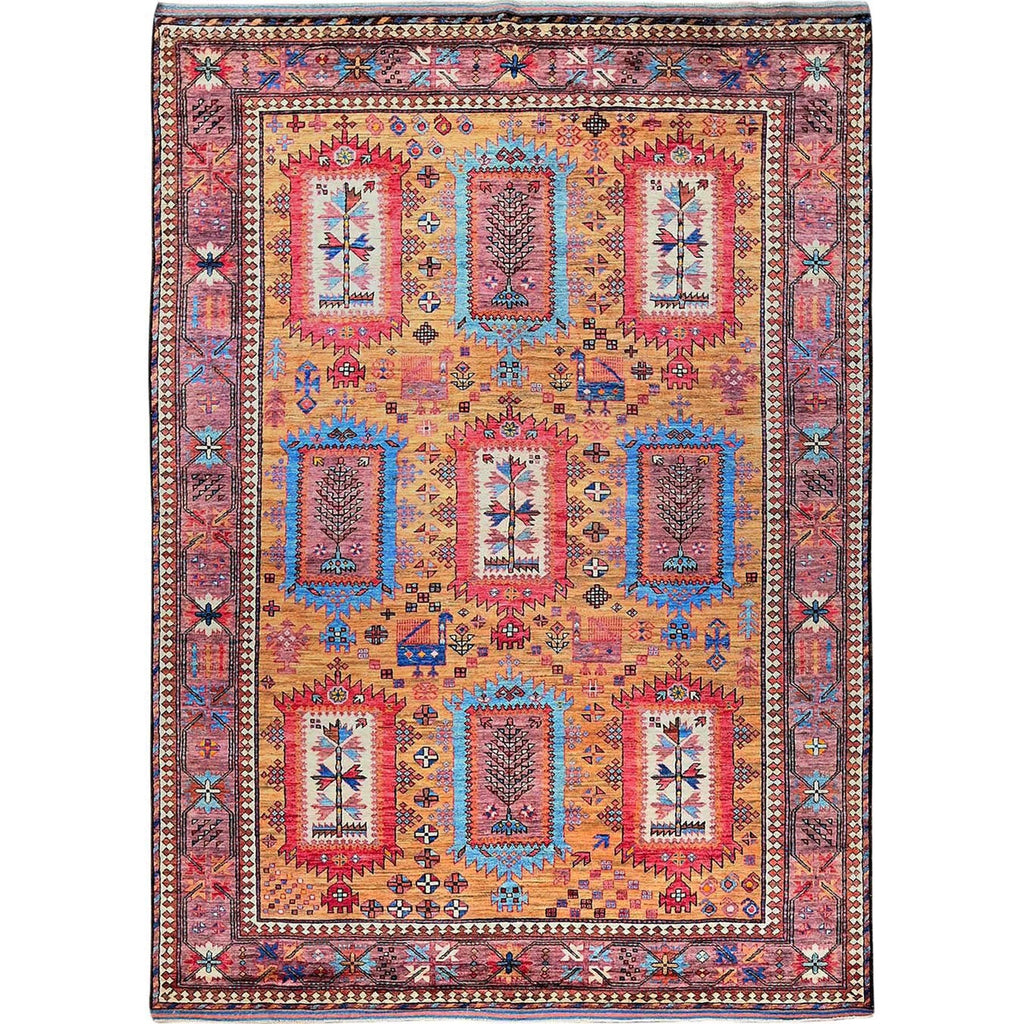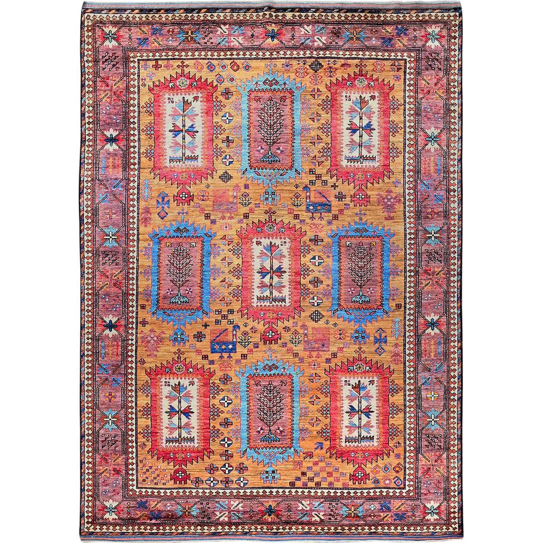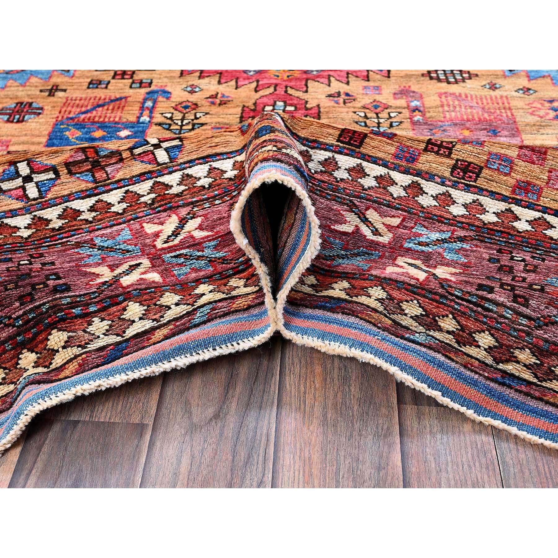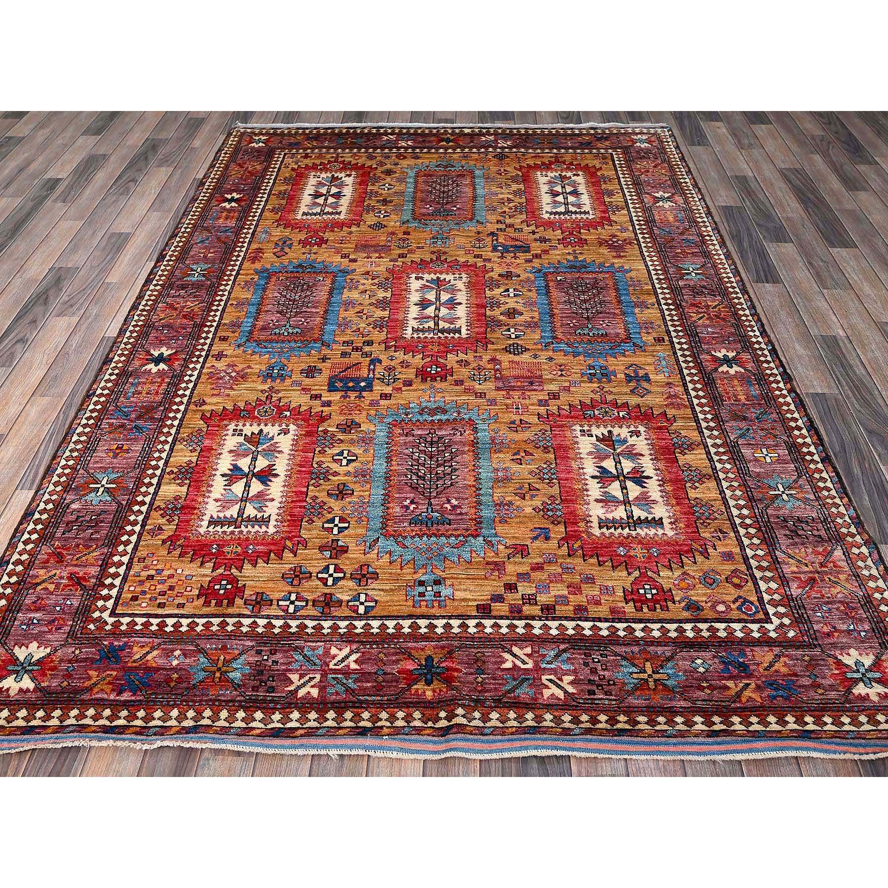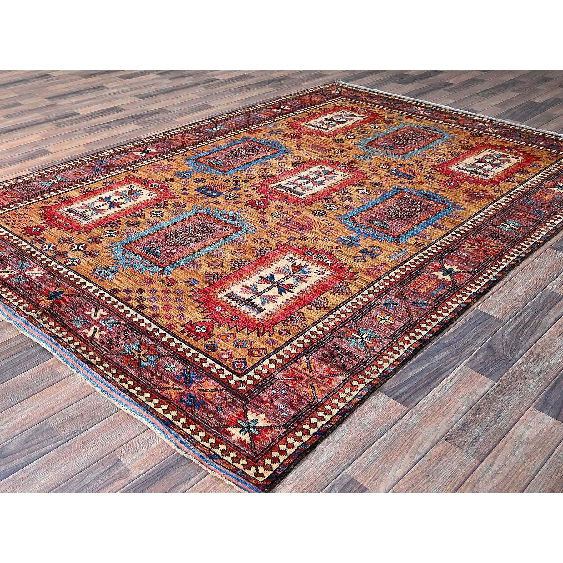 6'x8'6" Tawny Brown, Afghan Ersari With Turkish Knot, Caucasian Design Revival, Ancient Bird Figurines, Vegetable Dyes, Hand Knotted, 100% Wool, Oriental Rug FWR3474