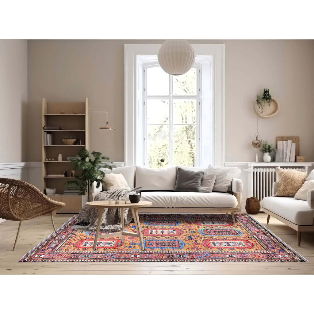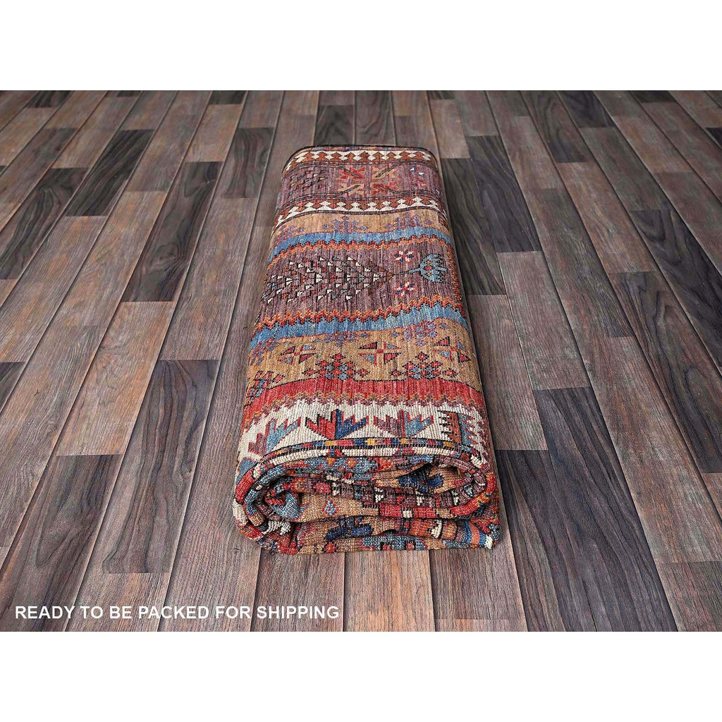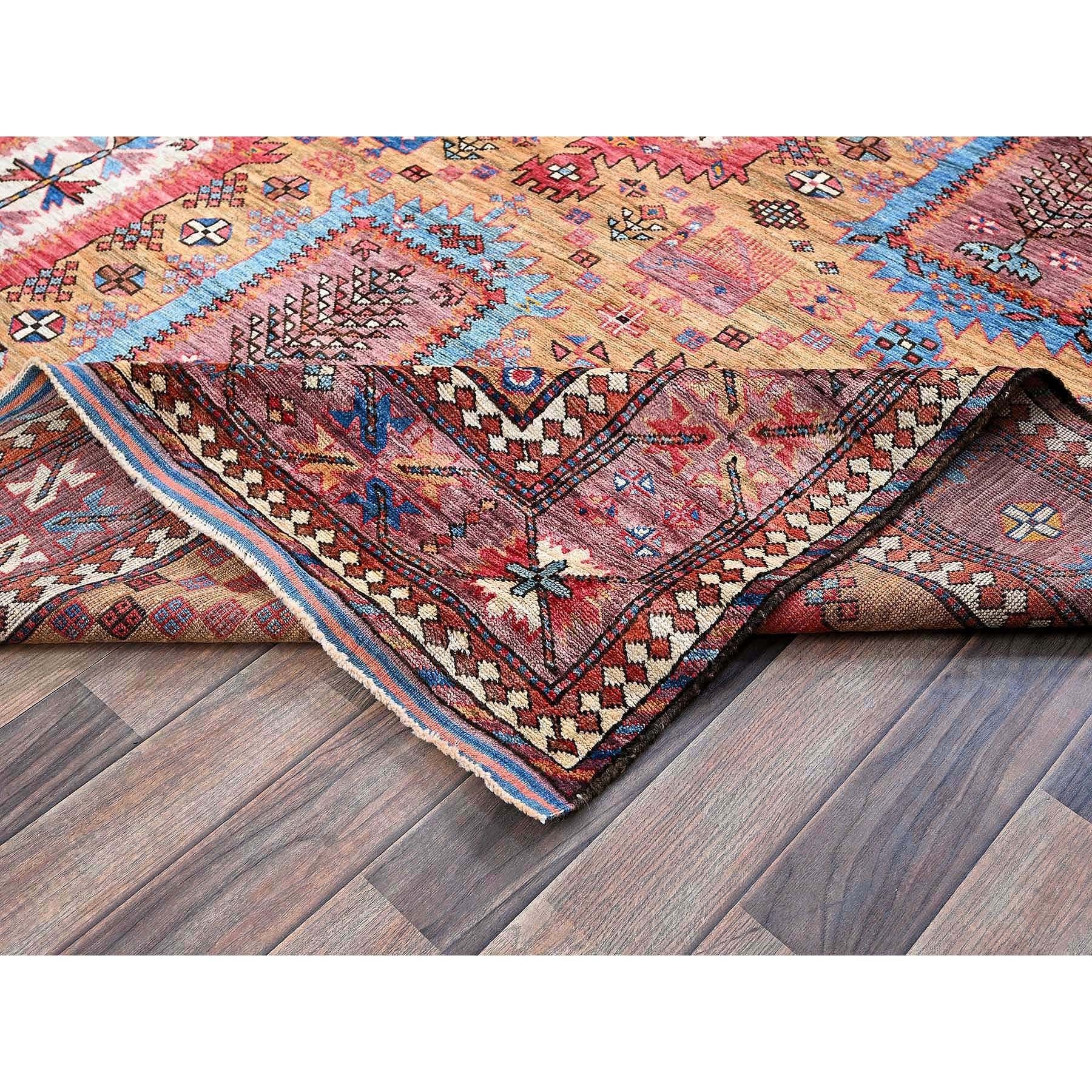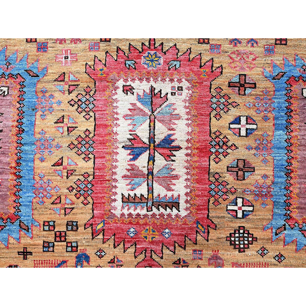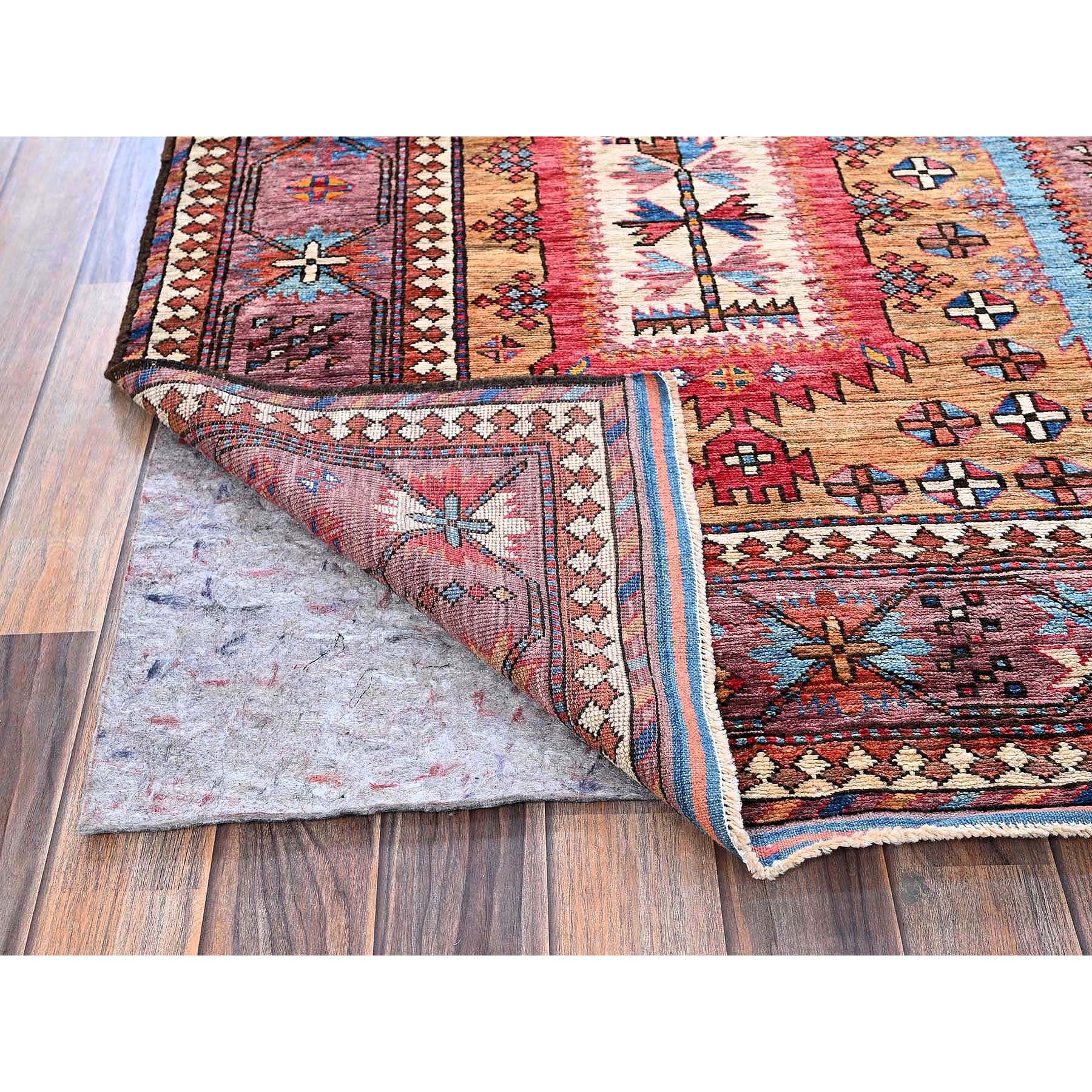 6'x8'6" Tawny Brown, Afghan Ersari With Turkish Knot, Caucasian Design Revival, Ancient Bird Figurines, Vegetable Dyes, Hand Knotted, 100% Wool, Oriental Rug FWR3474