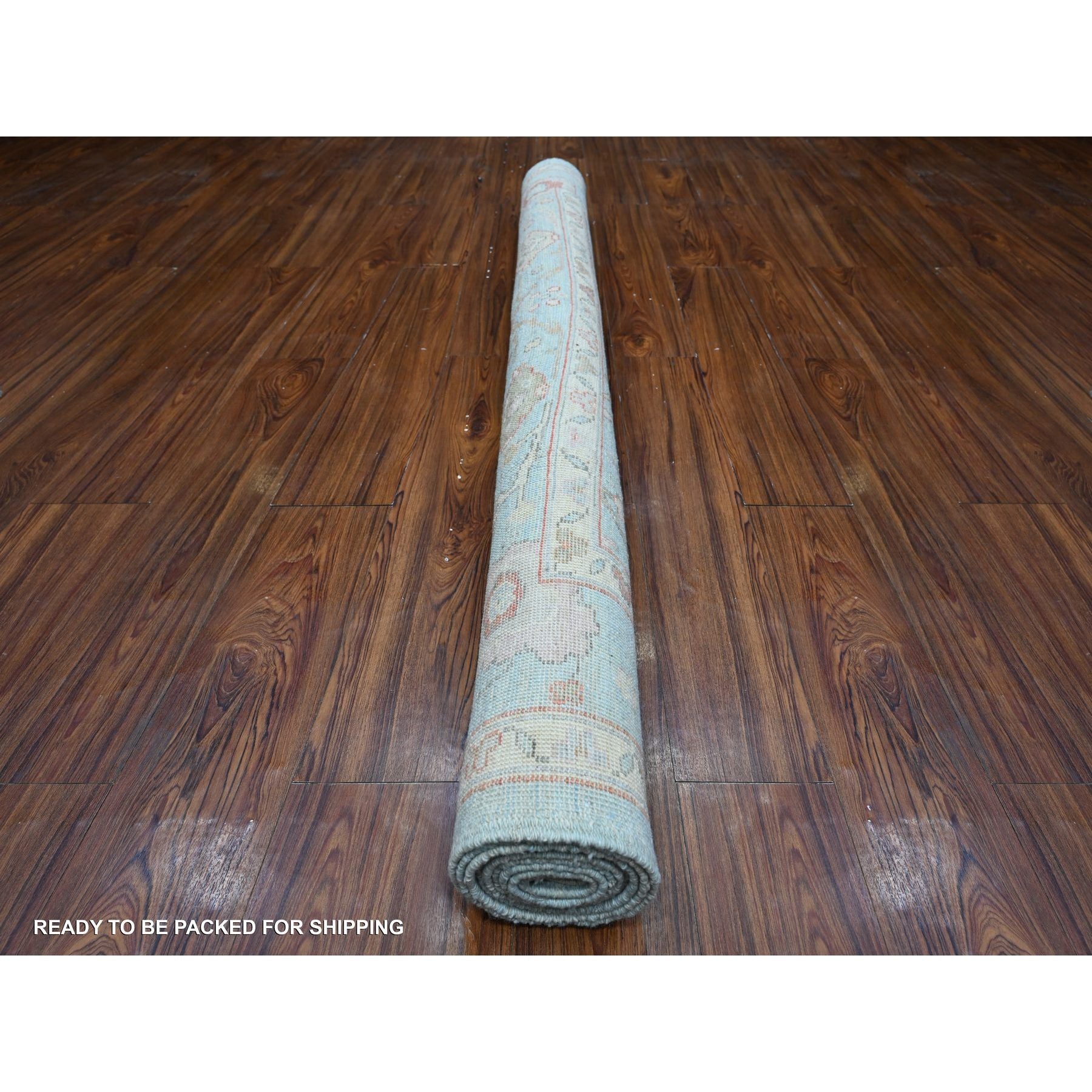 6'x8'8" Air Superiority Blue, All Over Village Motifs, Natural Dyes, Wool Weft, Hand Knotted, Afghan Angora Oushak, Oriental Rug FWR532170