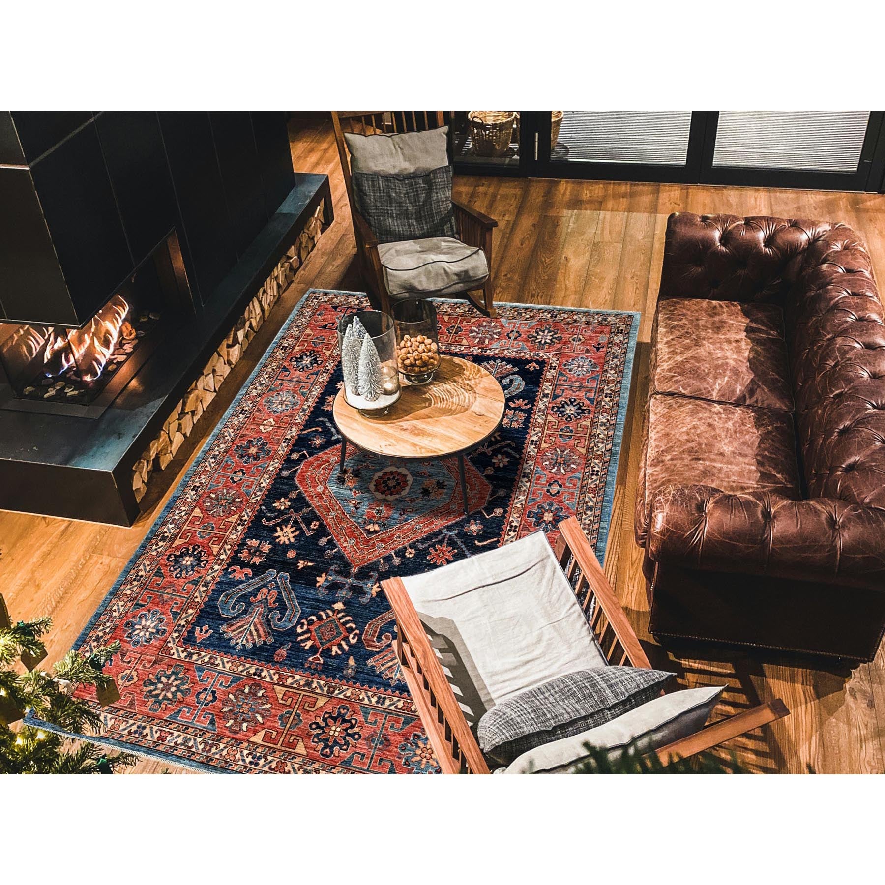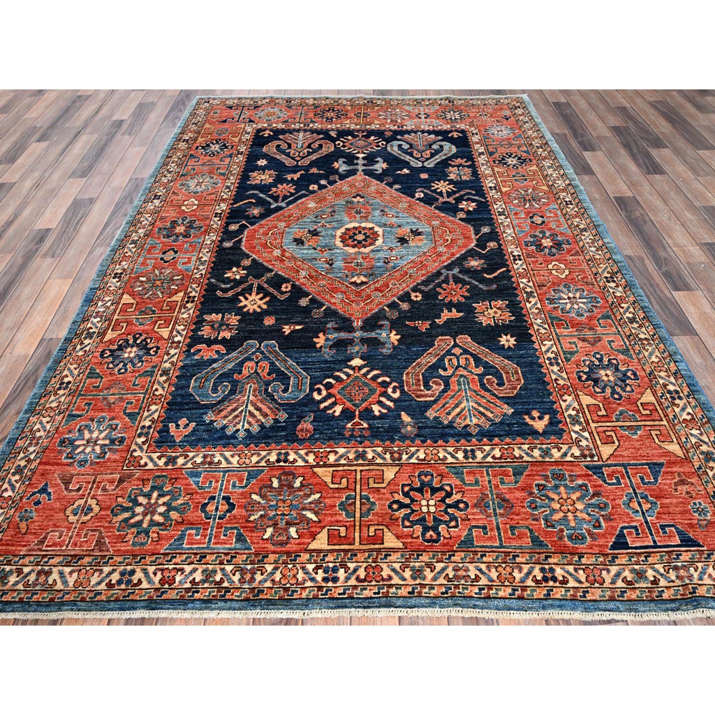 6'x8'8" Midnight Blue, Aryana Collection, Bakshaish Design With Geometric Medallion, Vegetable Dyes, Soft Pile, High Mountain Wool, Hand Knotted, Densely Woven, Oriental Rug FWR6330