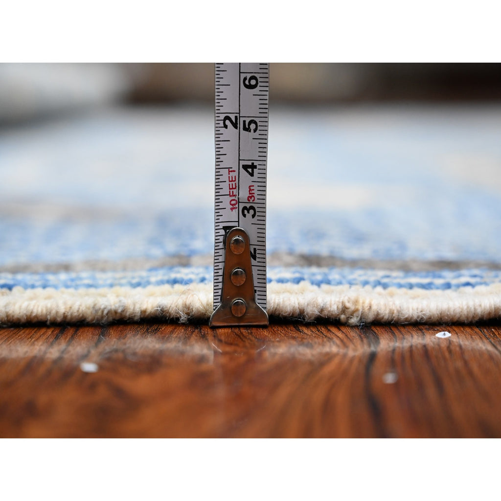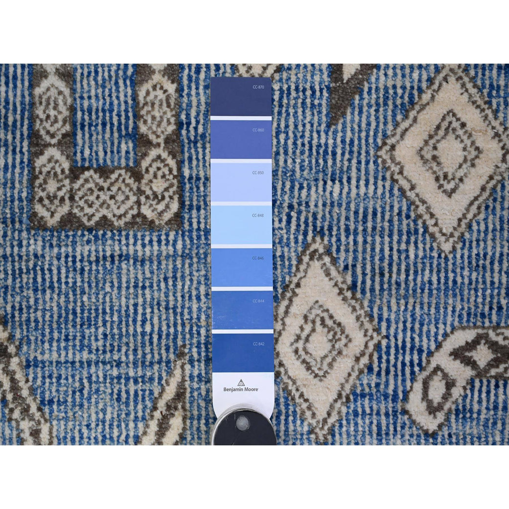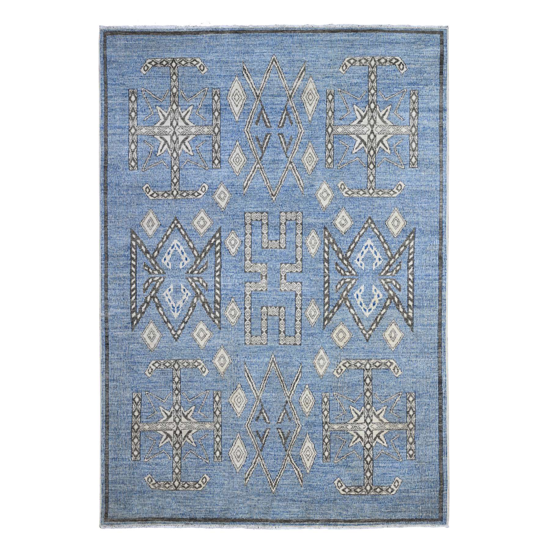 6'x8'8" Queen Blue, Vegetable Dyes, Hand Knotted, Berber Influence, Densely Woven, Snowflake Geometric Design Peshawar Oriental Rug FWR537678