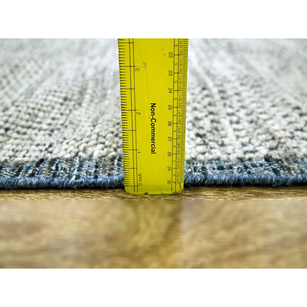6'x9'1" Aegean Blue, Oxidized And Distressed Grass Design With Exposed Warps, 100% Wool, Hand Knotted, Oriental Rug FWR460422