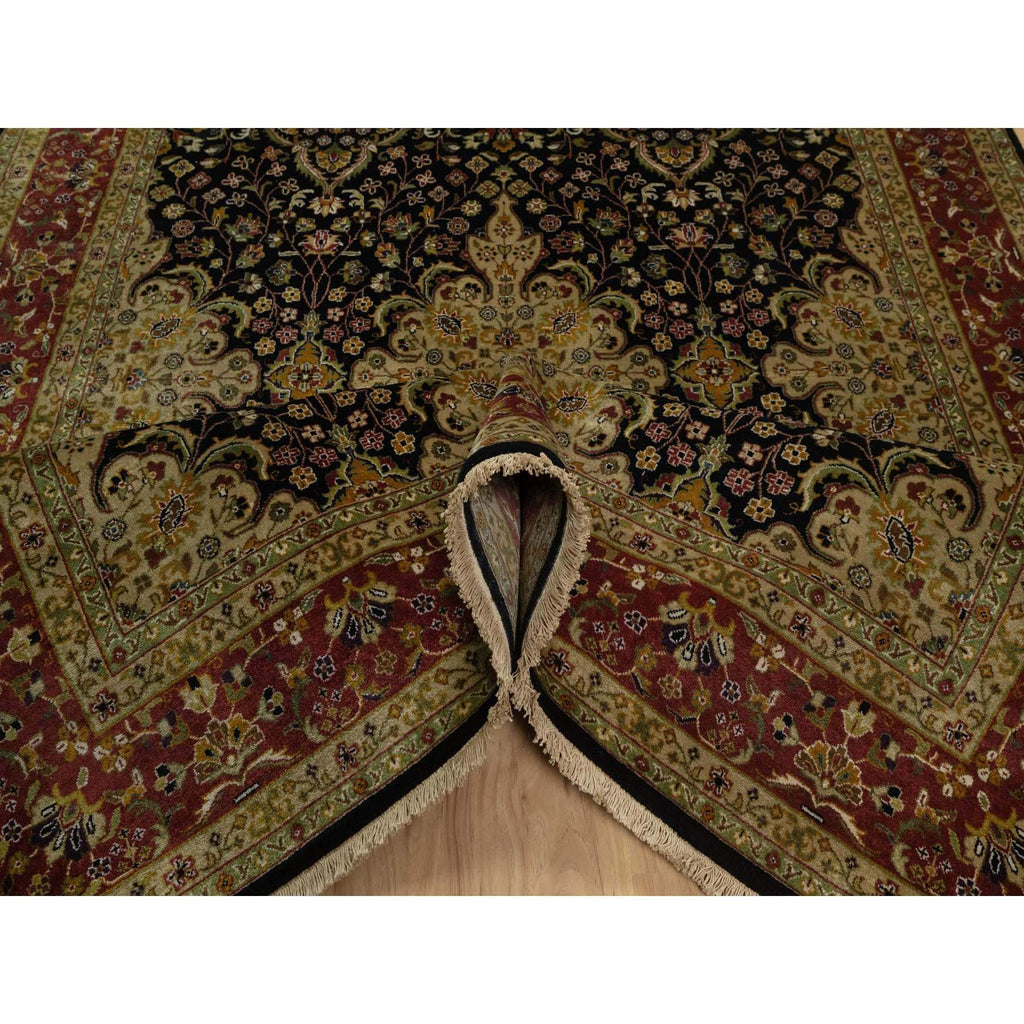 6'x9'1" Caviar Black, Intricate Kashan Revival, Hand Spun New Zealand Wool, 300 Kpsi, Hand Knotted, Oriental Rug FWR548610