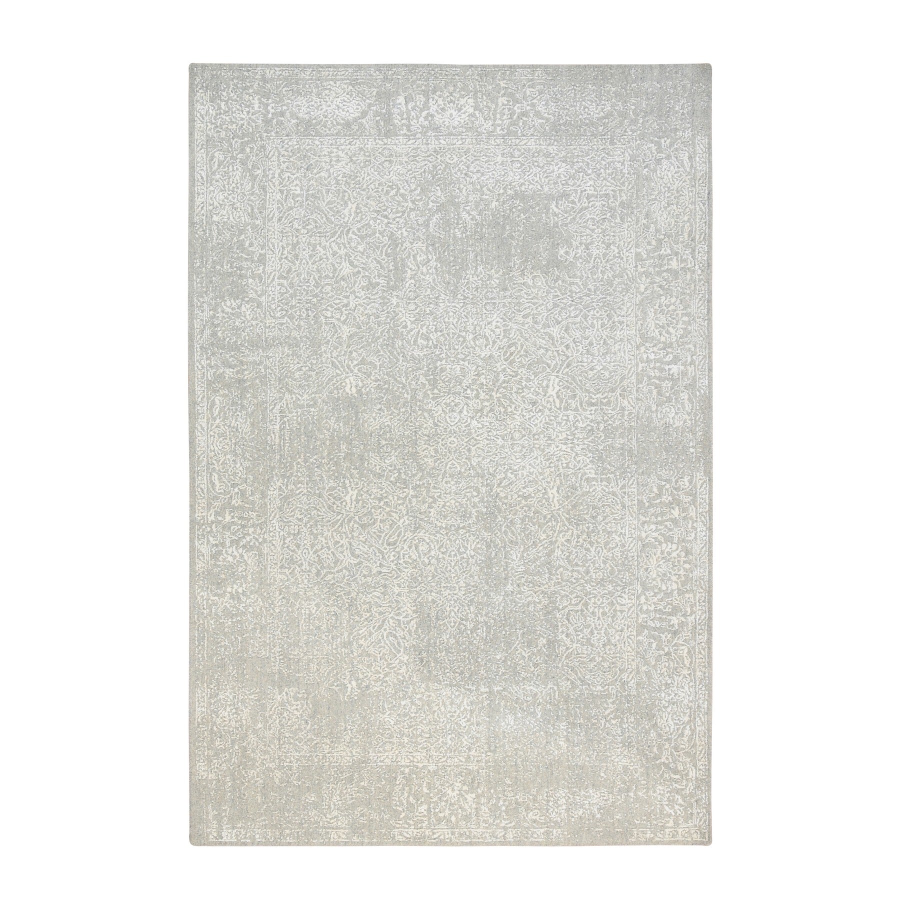 6'x9'2" Beige Wool And Plant Based Silk Hand Loomed Fine Jacquard With Erased Design Oriental Rug FWR379584