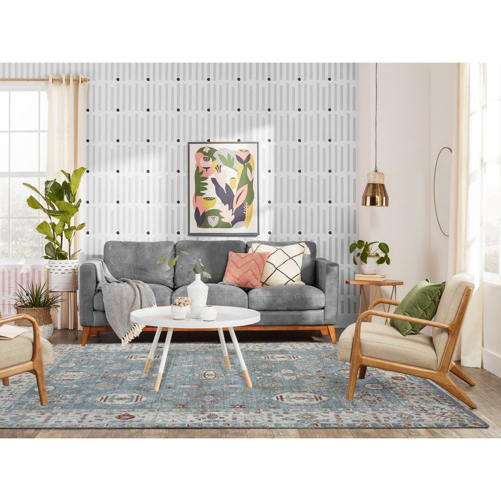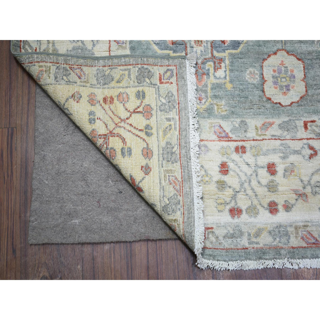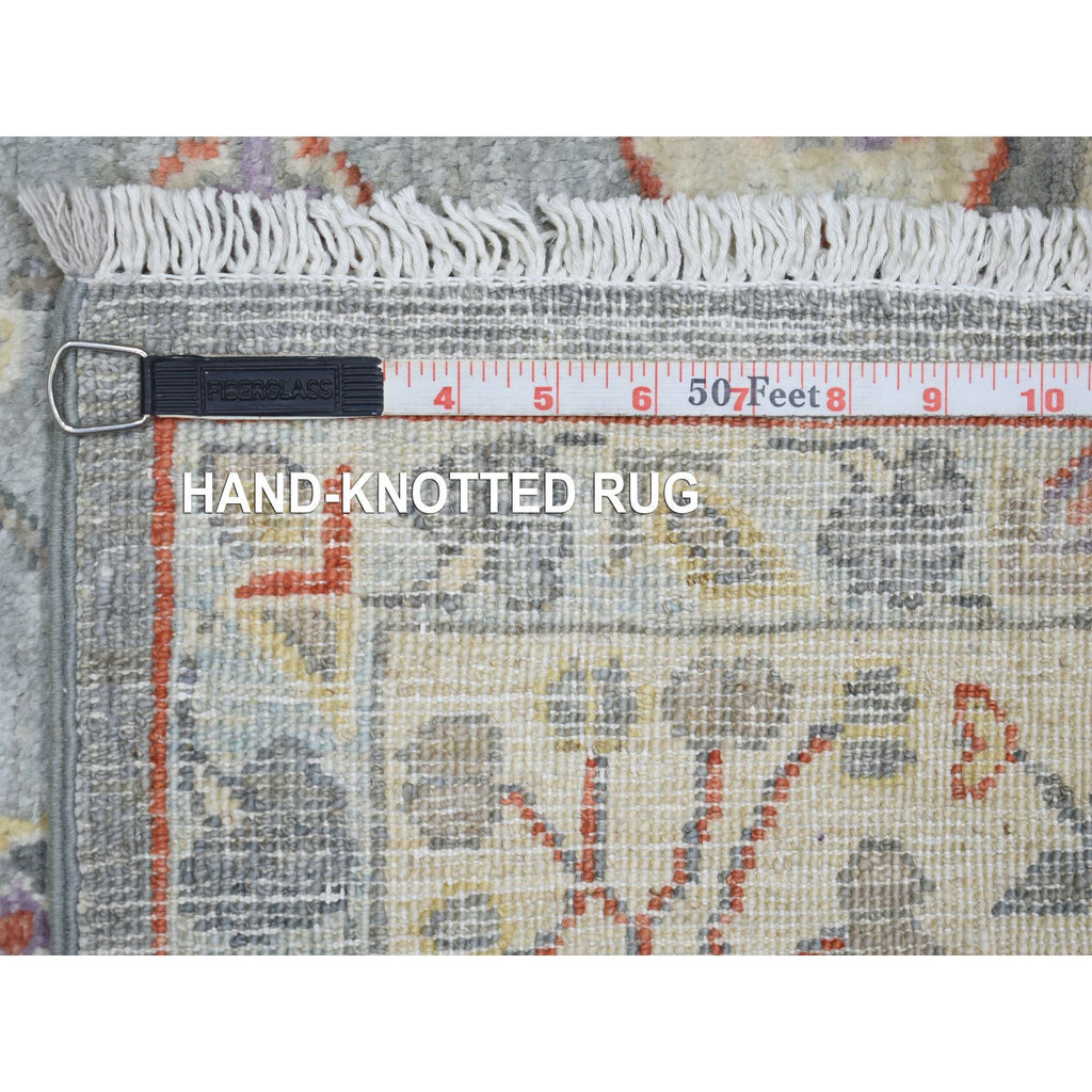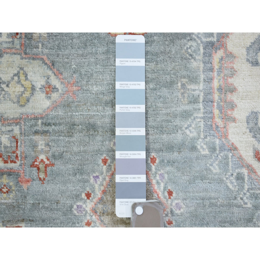 6'x9'2" Cadet Gray, Vegetable Dyes Soft Wool, Hand Knotted Finer Peshawar With Elements Design, Dense Weave, Oriental Rug FWR438342