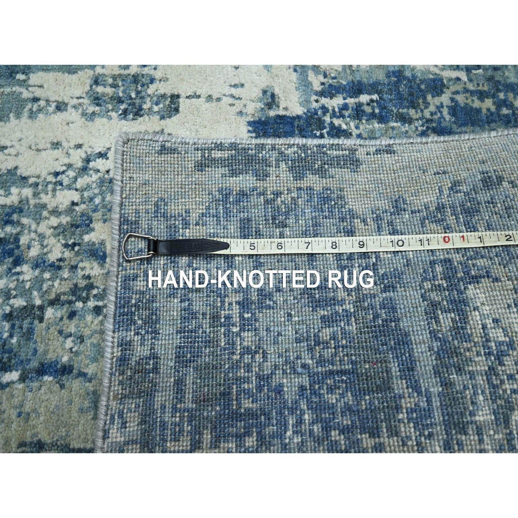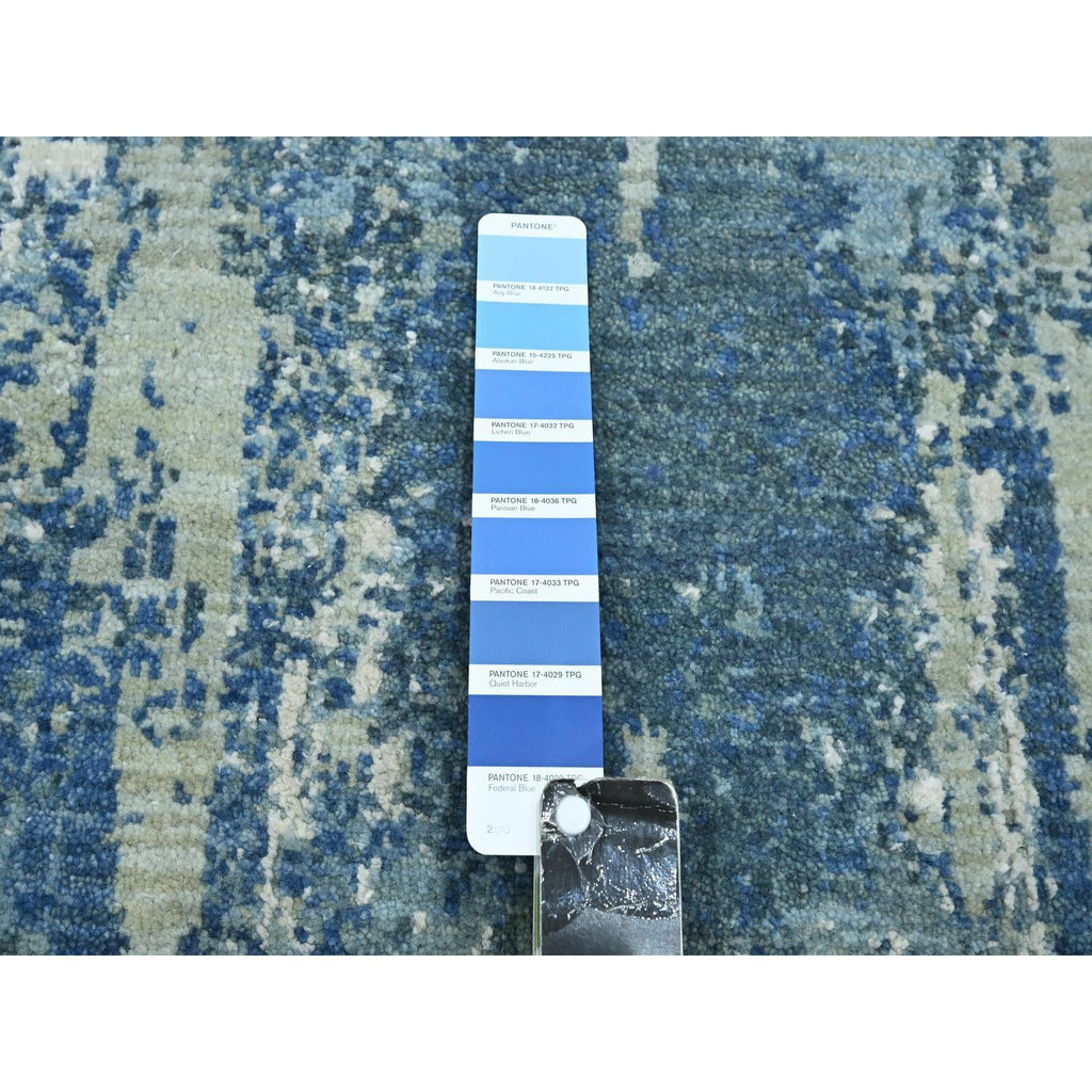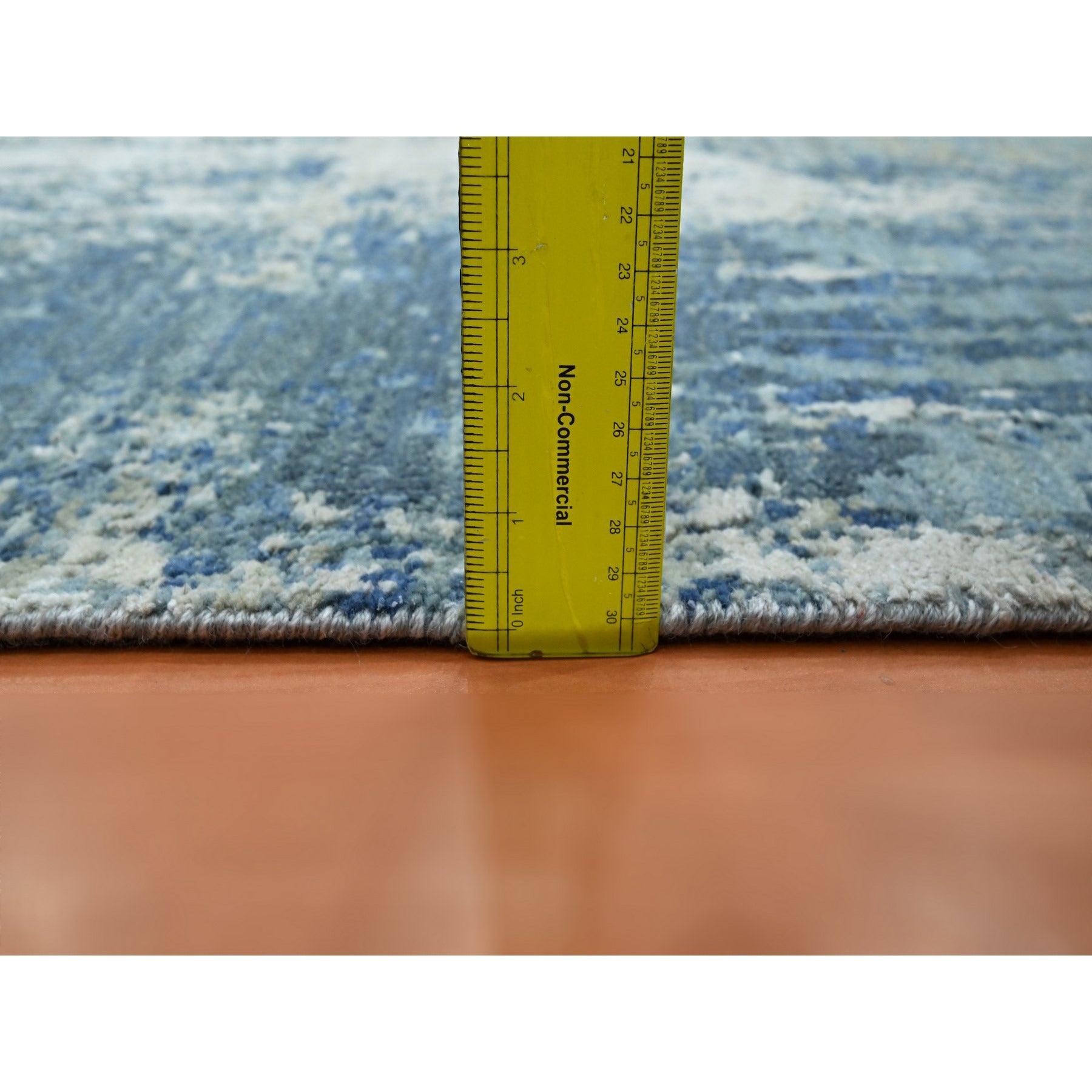 6'x9'2" Cerulean Blue, Abstract Design, Denser Weave, Hi-low Pile, Wool And Real Silk, Hand Knotted, Oriental Rug FWR453204