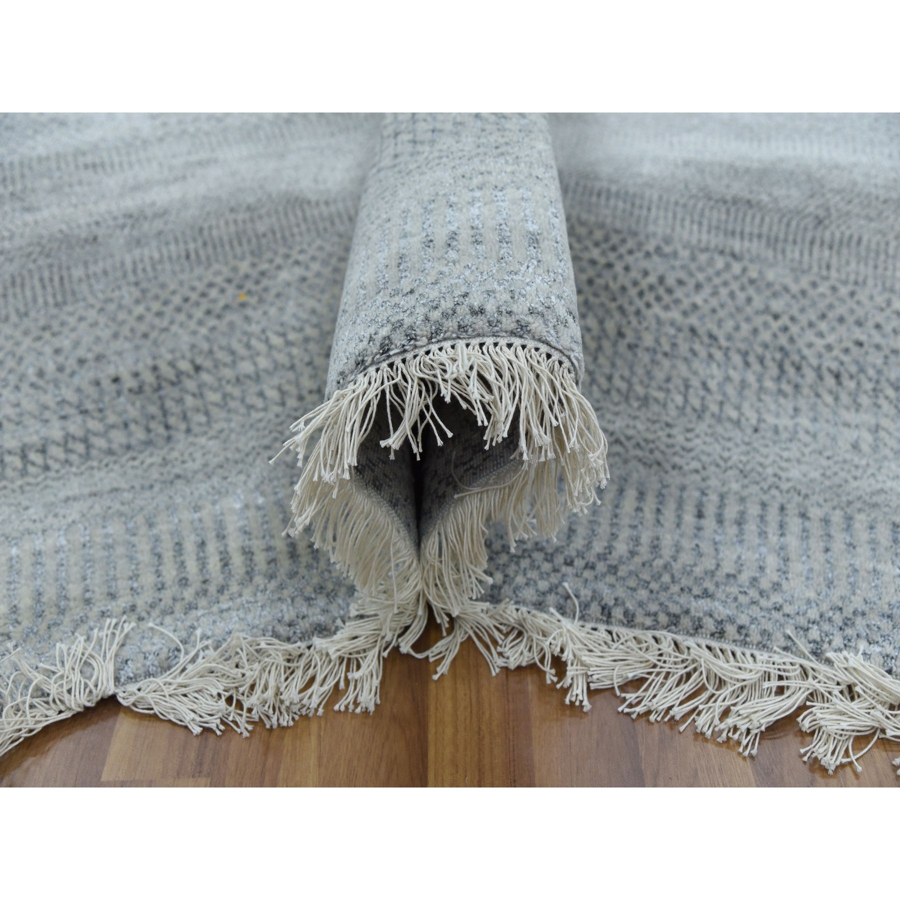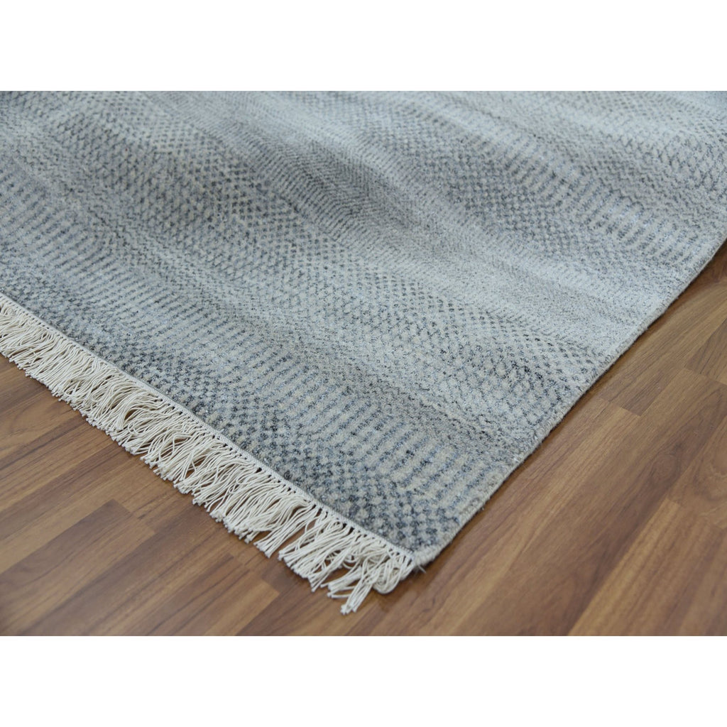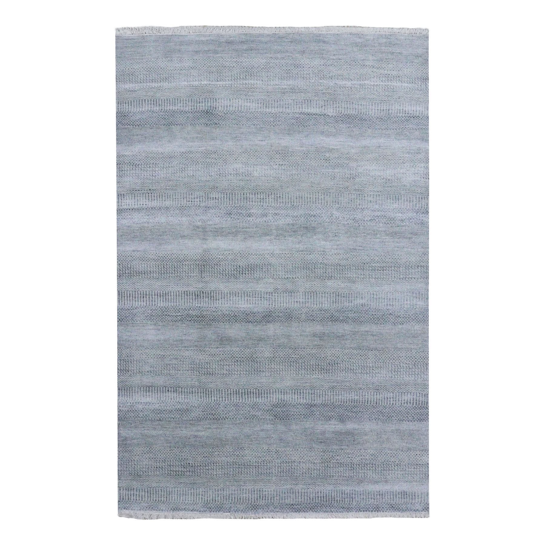 6'x9'2" Gray, Modern Grass Design Gabbeh, Densely Woven Wool And Silk Hand Knotted, Oriental Rug FWR474744