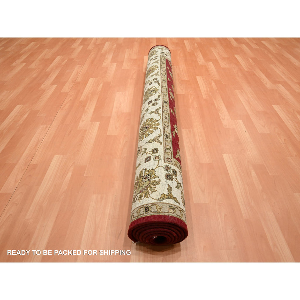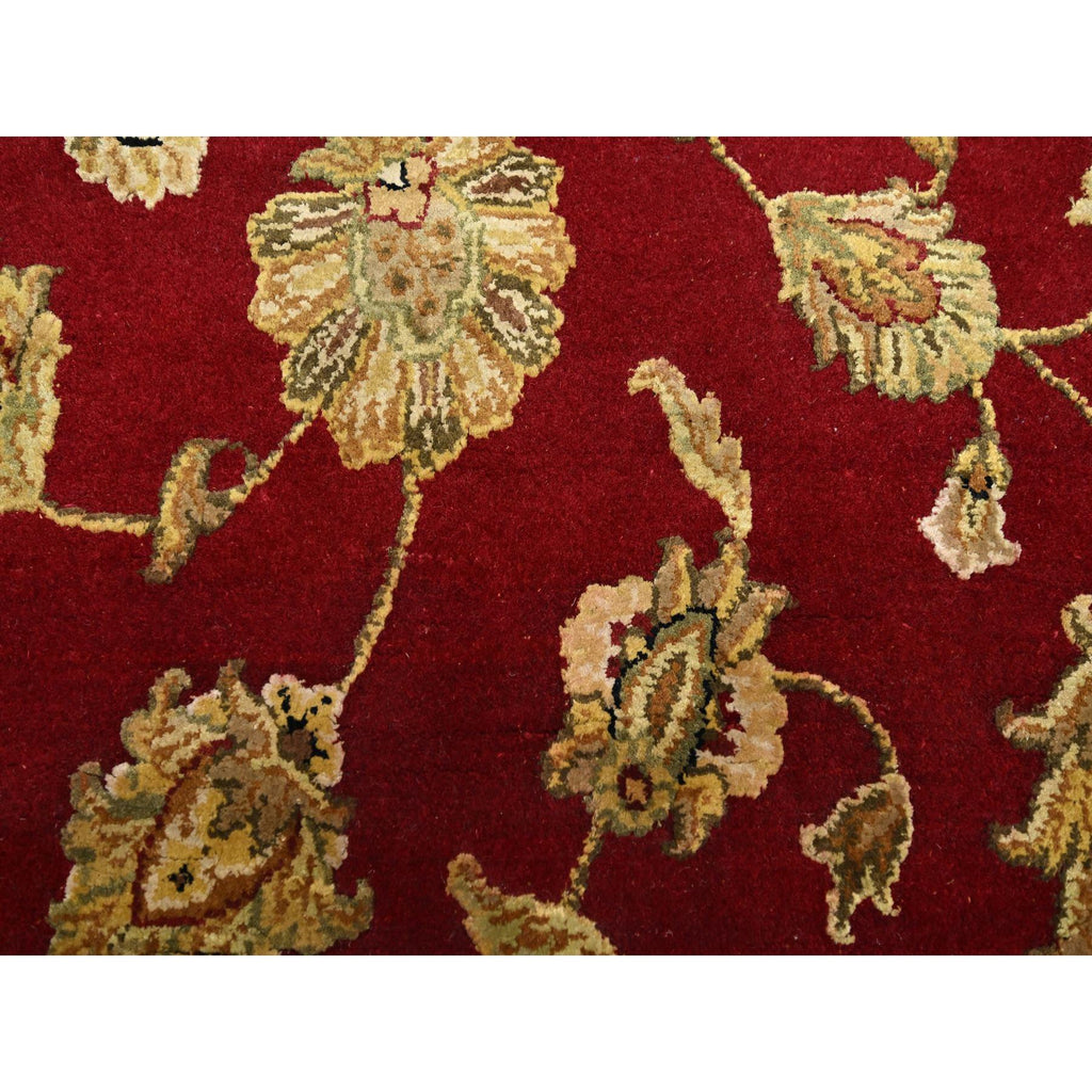 6'x9'2" Ruby Red, Thick And Plush, Rajasthan With All Over Leaf Design, Hand Knotted, Wool And Silk, Soft Pile, Oriental Rug FWR453594