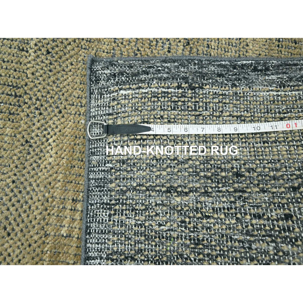 6'x9'3" Dijon Brown With Charcoal Black, Oxidized And Distressed Grass Design With Exposed Warps, Hand Knotted, 100% Wool, Oriental Rug FWR457812