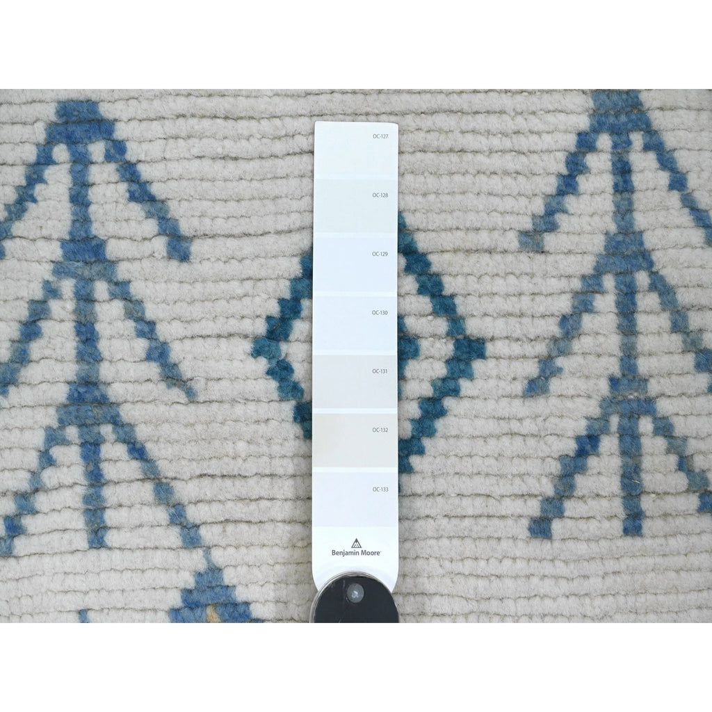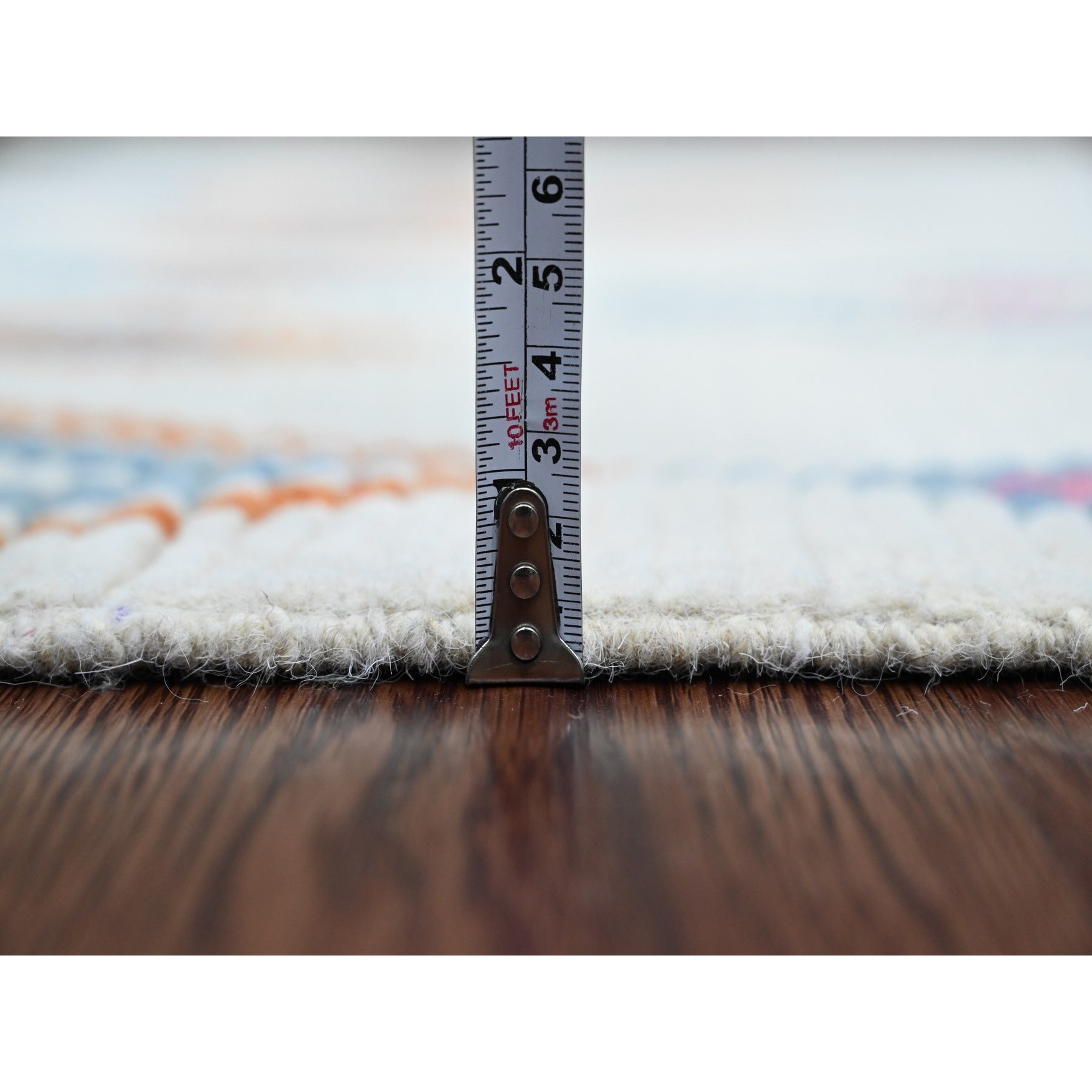 6'x9'3" Pearl White, Moroccan Weave With Colorful Geometric Pattern, Hand Knotted, Soft Wool, Tone On Tone, Textured Pile, Oriental Rug FWR124452