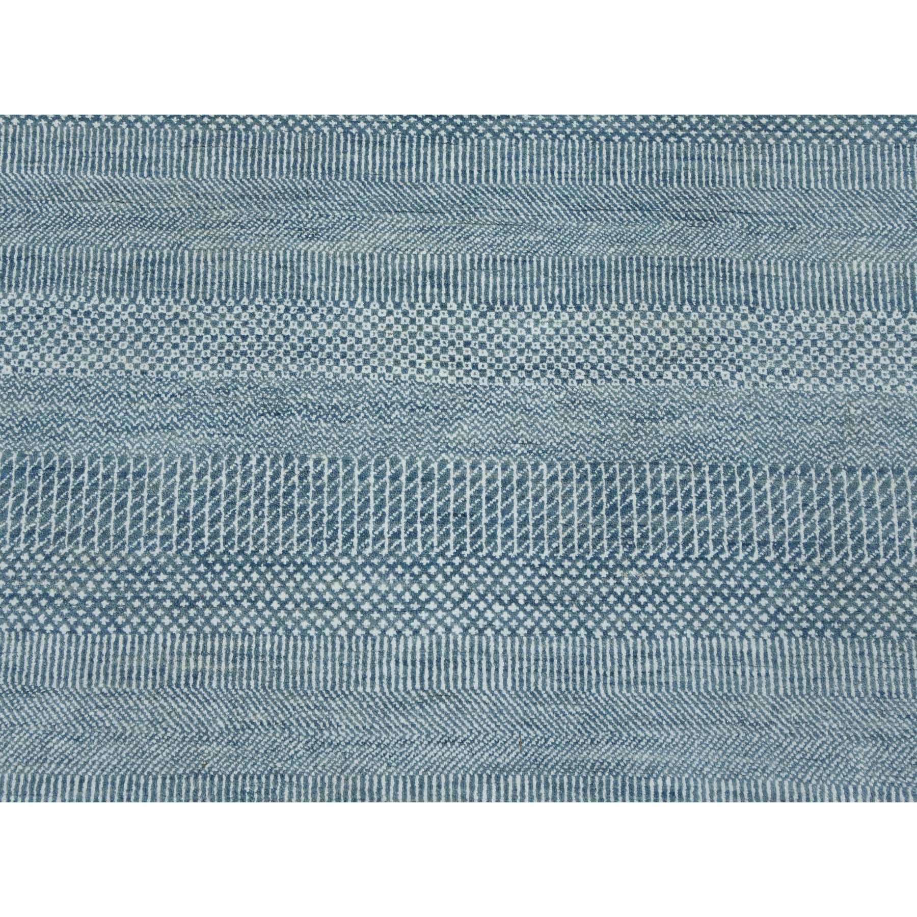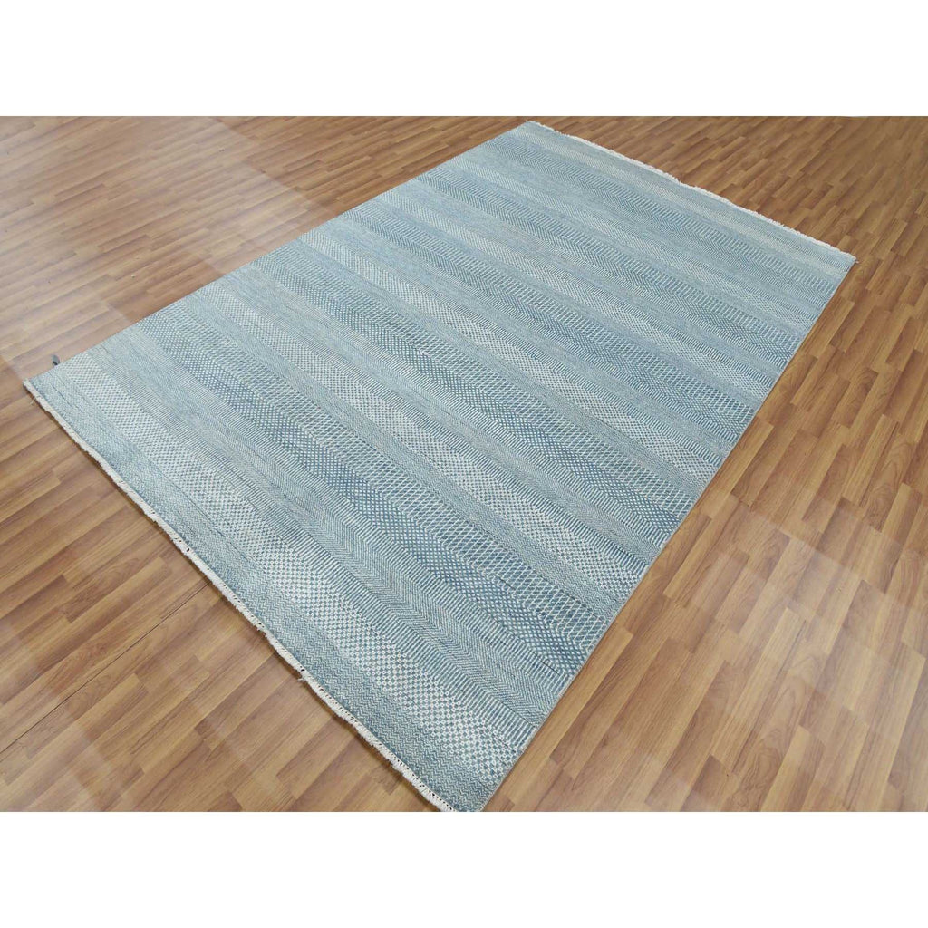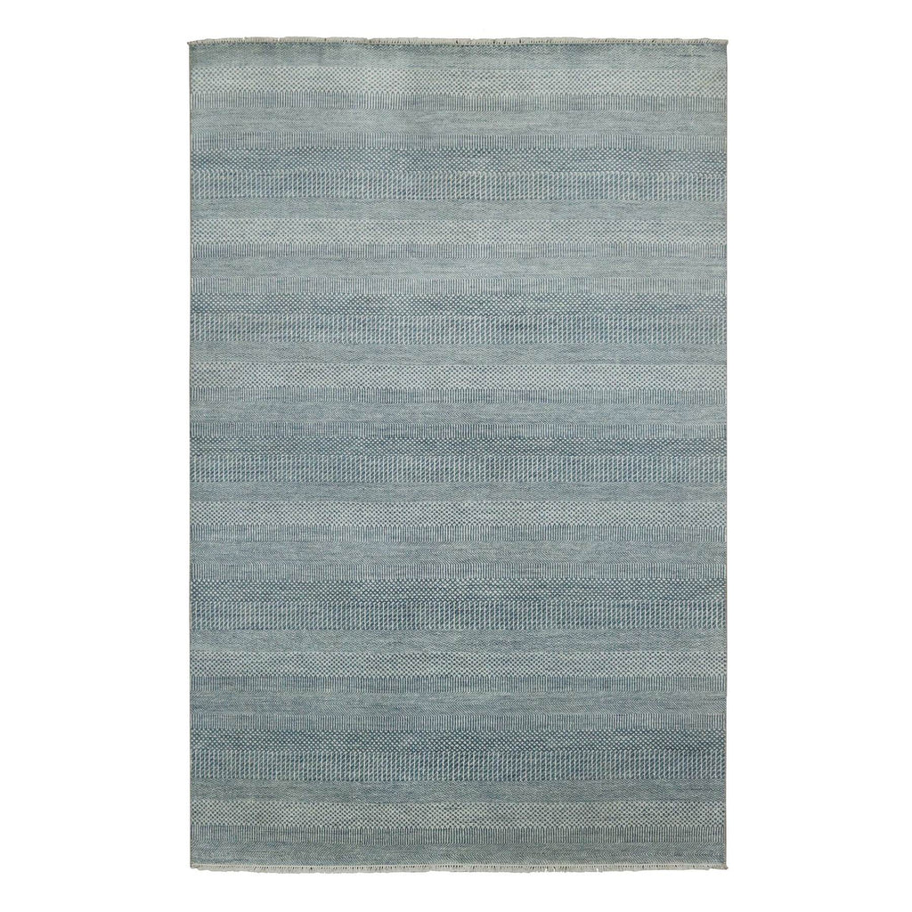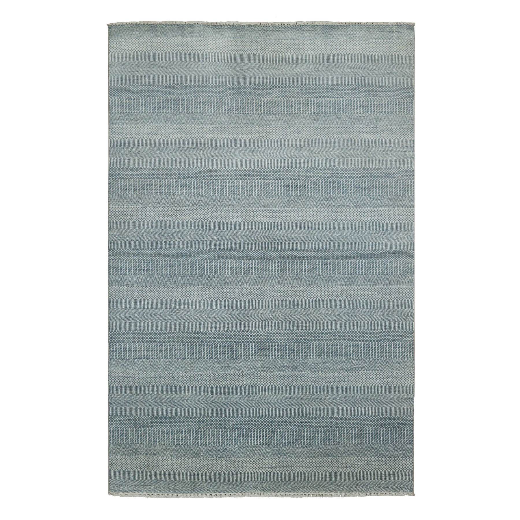6'x9'3" Queen Blue, Grass Design Dense Weave, Tone On Tone Soft Pile, Wool And Silk Hand Knotted, Oriental Rug FWR476184