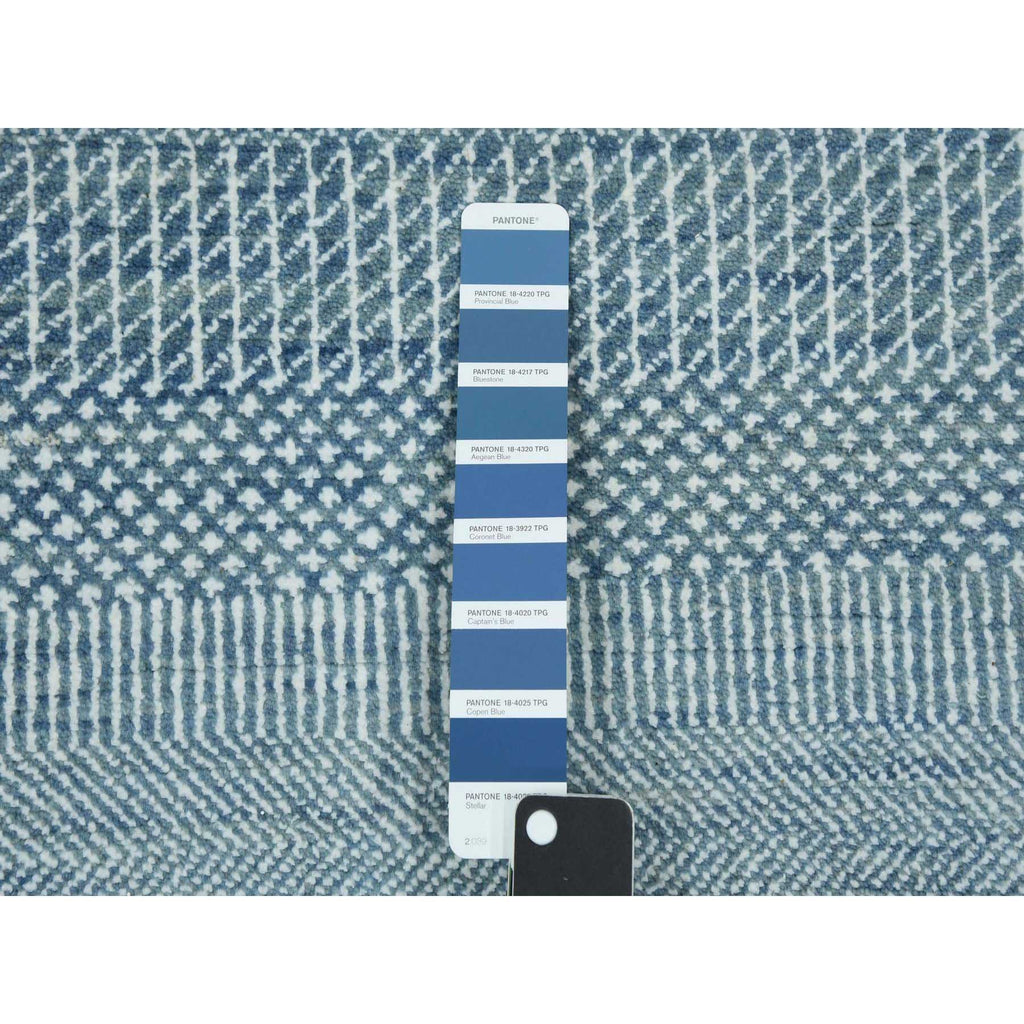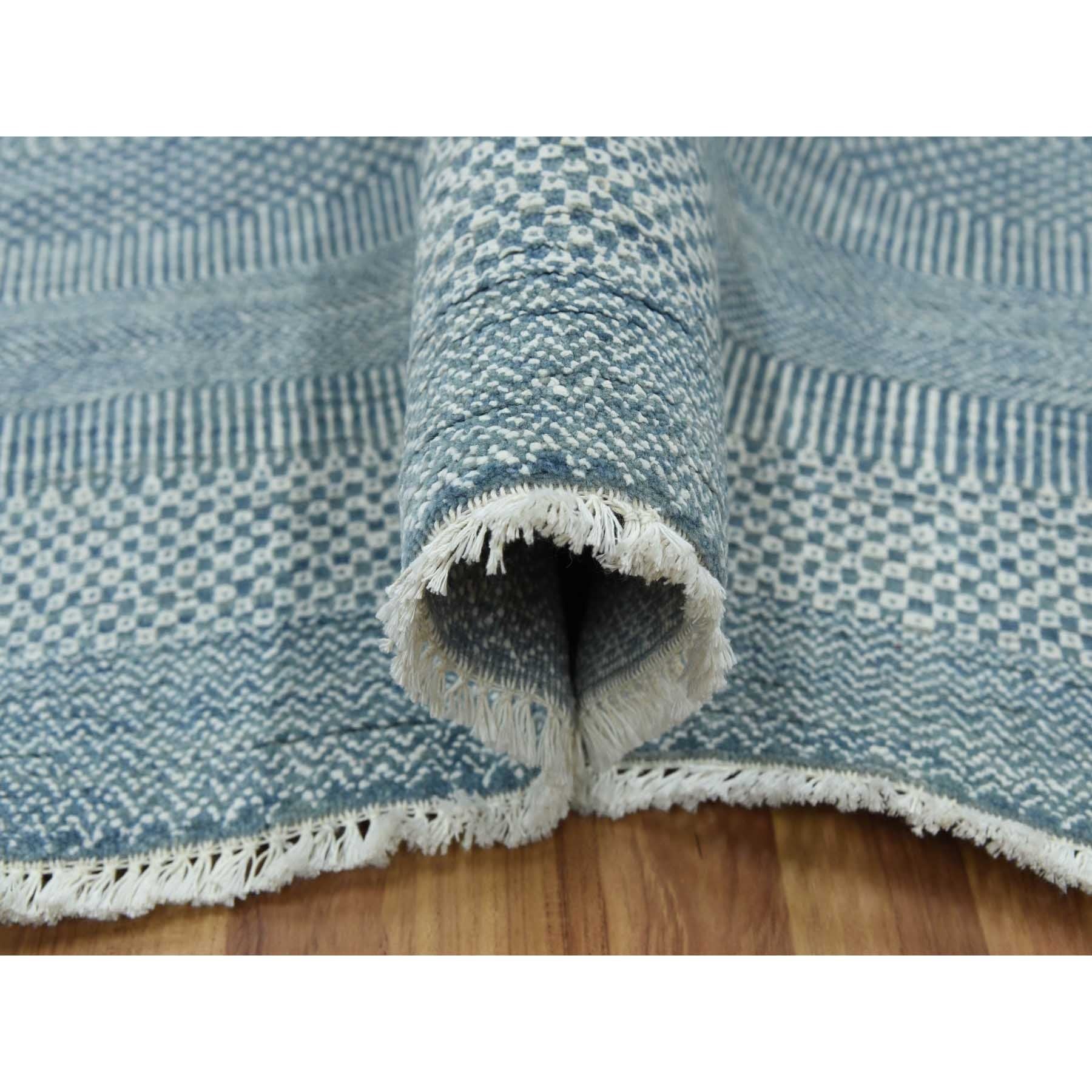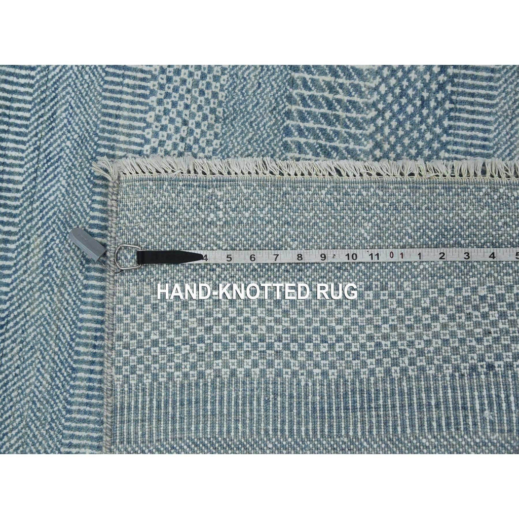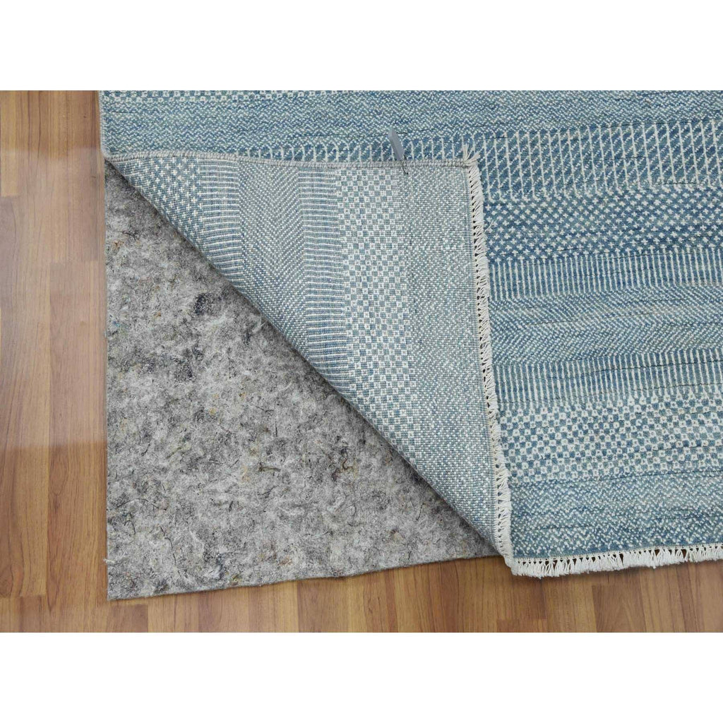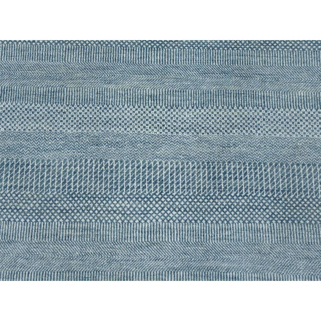 6'x9'3" Queen Blue, Grass Design Dense Weave, Tone On Tone Soft Pile, Wool And Silk Hand Knotted, Oriental Rug FWR476184