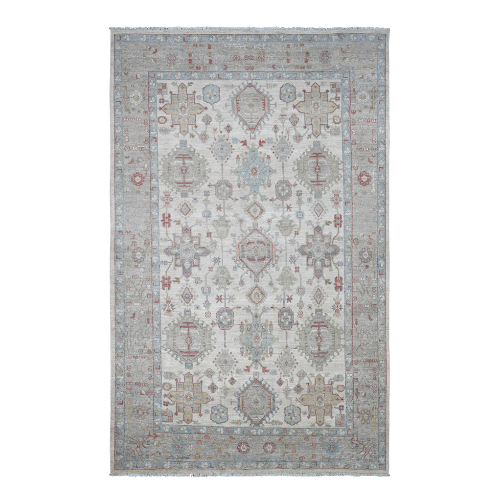 6'x9'7" Chiffon White, Afghan Peshawar With Karajeh Design, Geometric Medallions, Aryana Collection, Hand Knotted, High Mountain Wool, Oriental Rug FWR125922