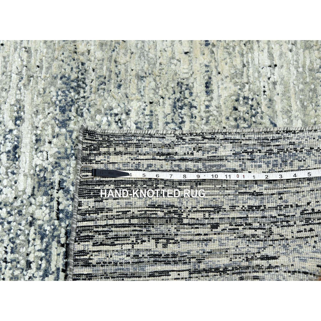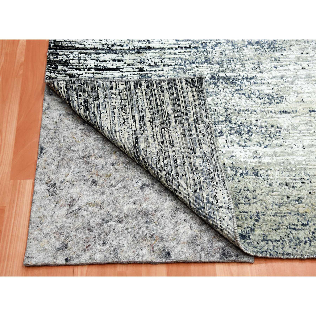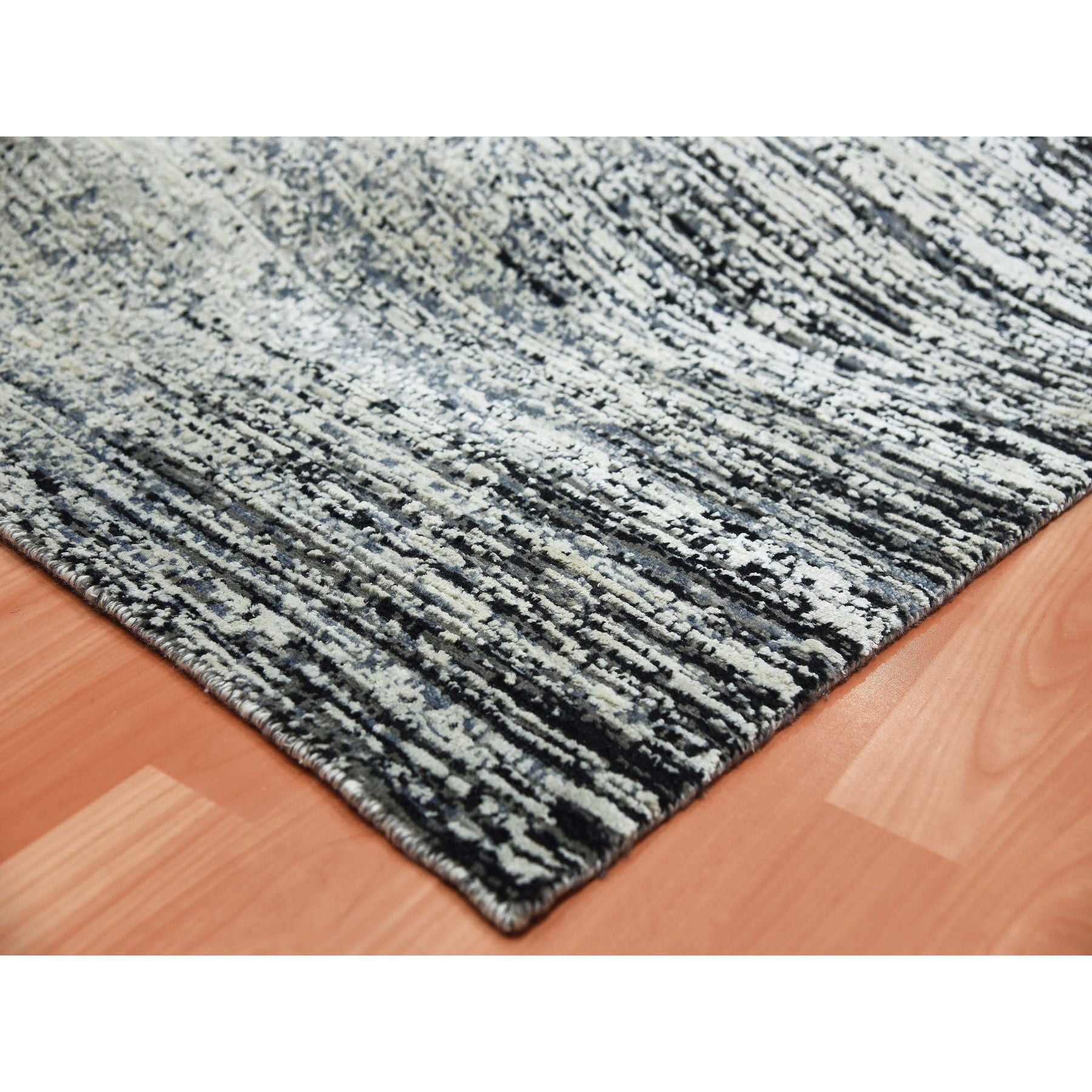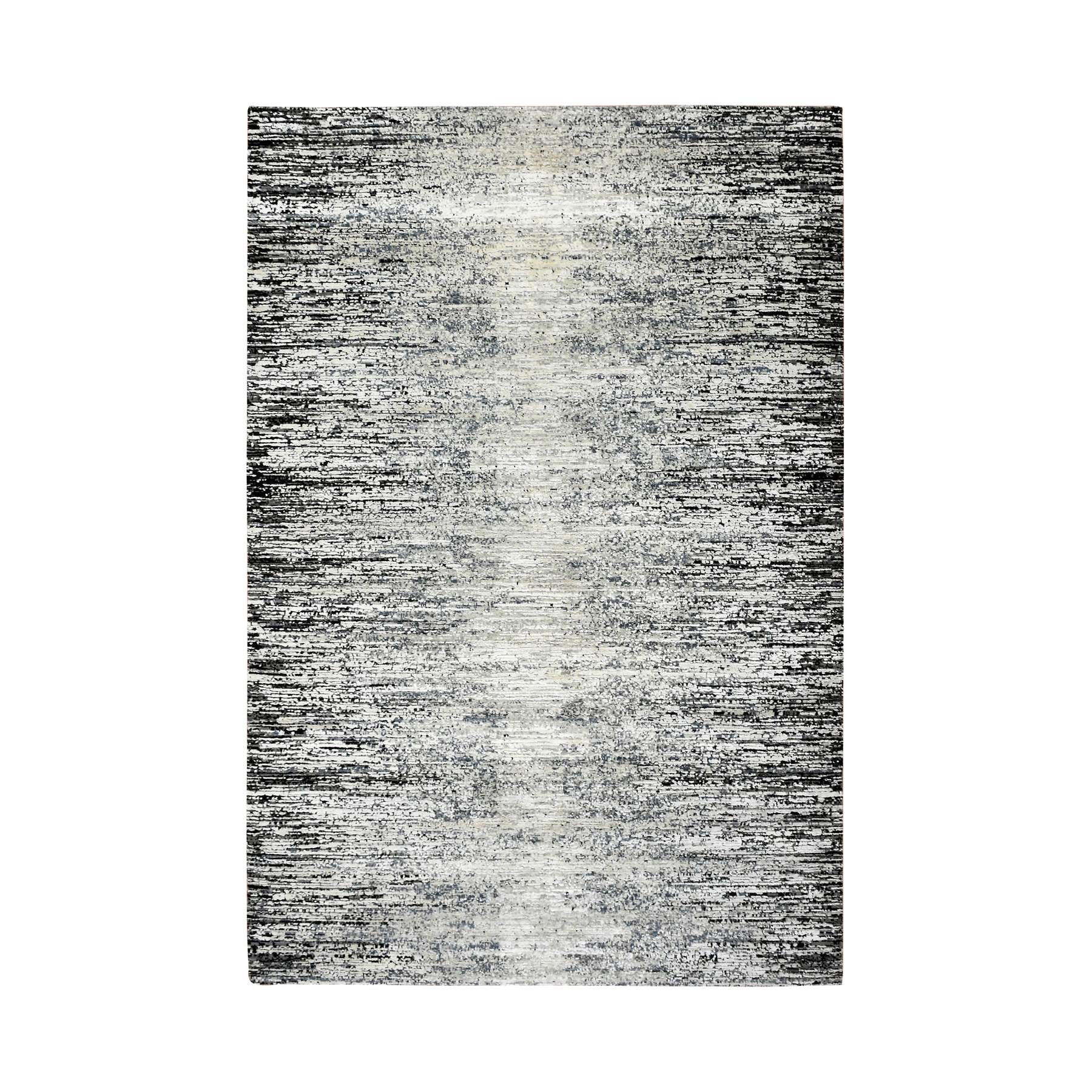 6'x9' Black With Touches Of Gray, Wool And Pure Silk Hand Knotted, Striae Design, Oriental Rug FWR451710