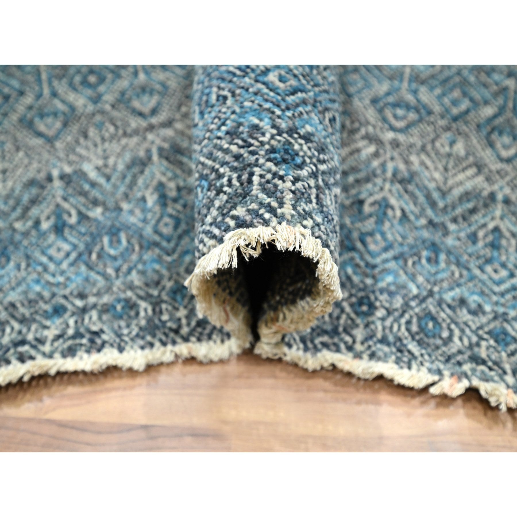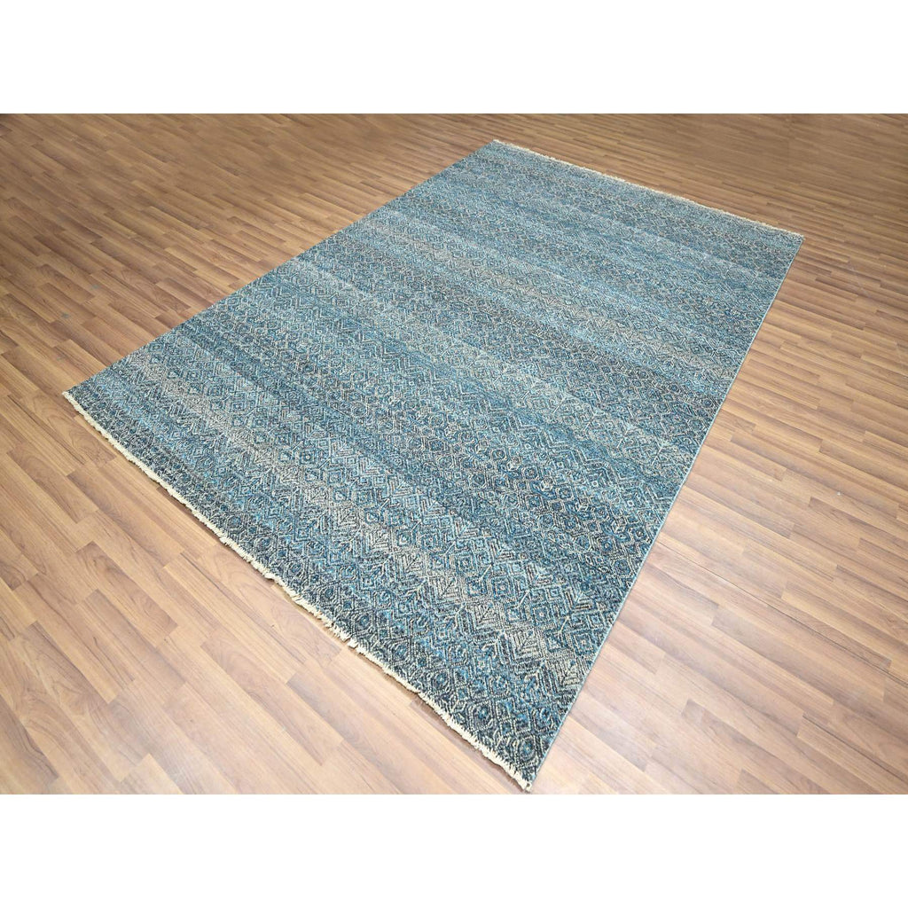 6'x9' Cerulean Blue, Kohinoor Herat Pattern, Small Geometric Repetitive Diamond Design, Soft Wool, Tone On Tone, Hand Knotted, Oriental Rug FWR458616