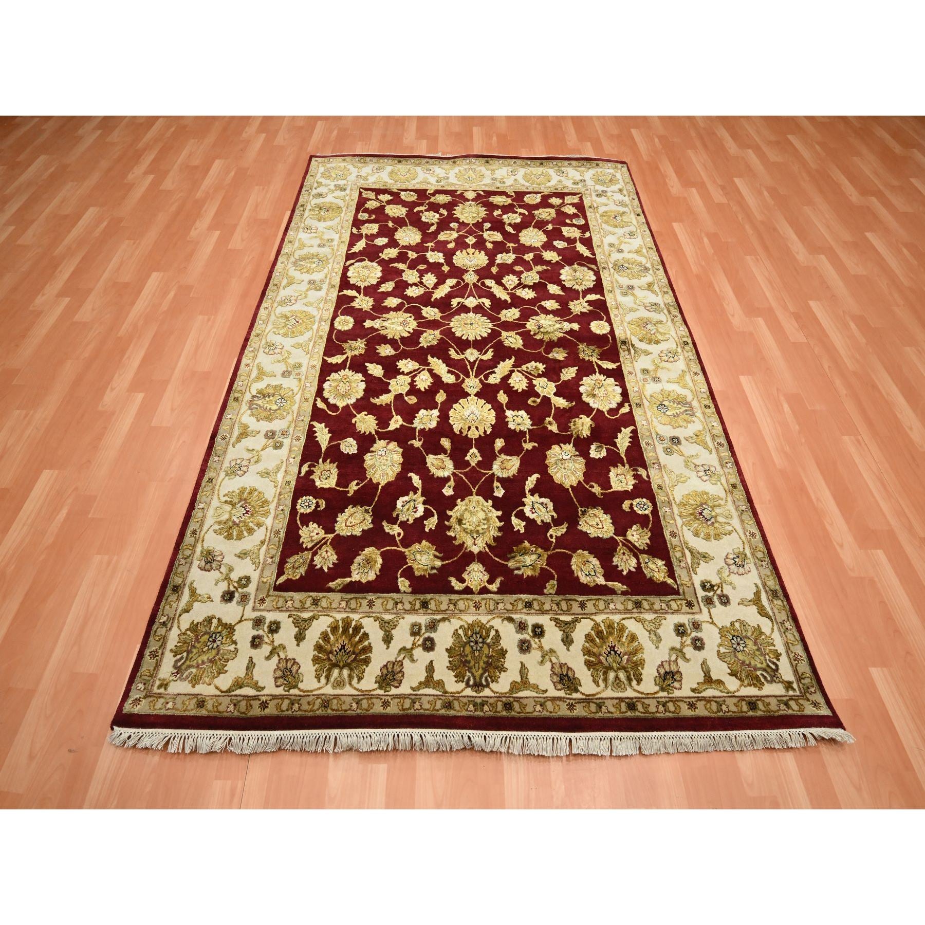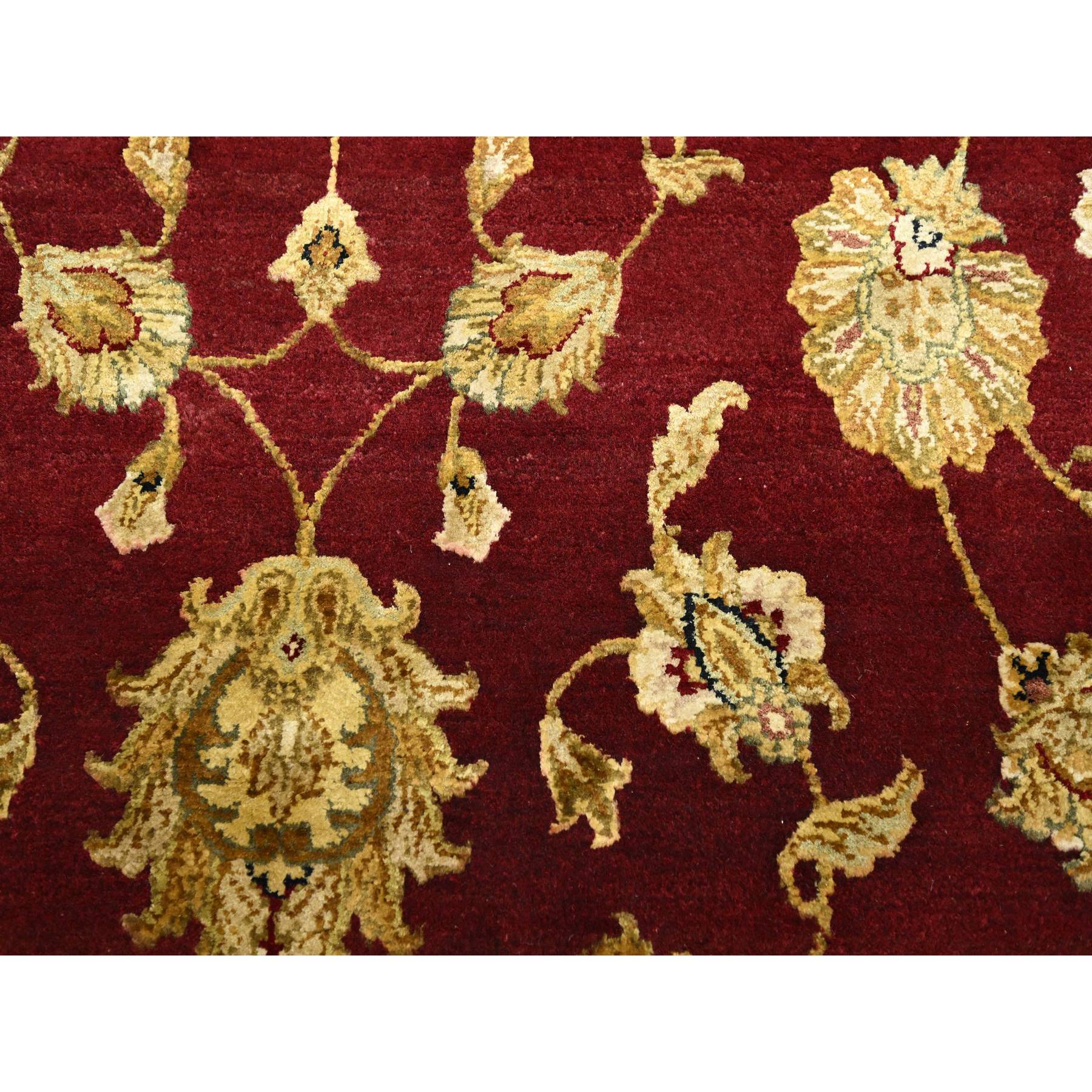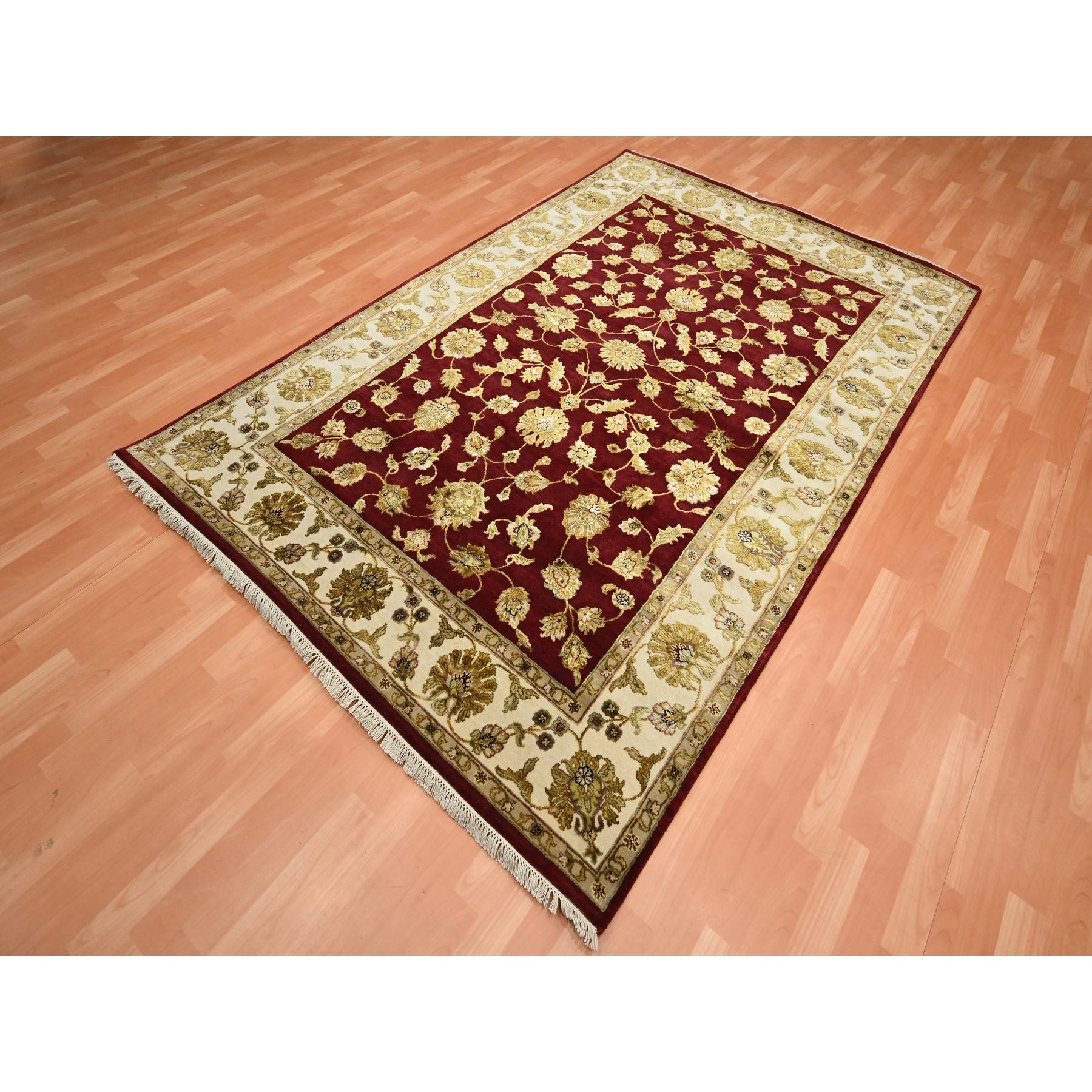 6'x9' Crimson Red, Hand Knotted, Wool And Silk, Soft Pile, Rajasthan With All Over Leaf Design, Thick And Plush, Oriental Rug FWR453624