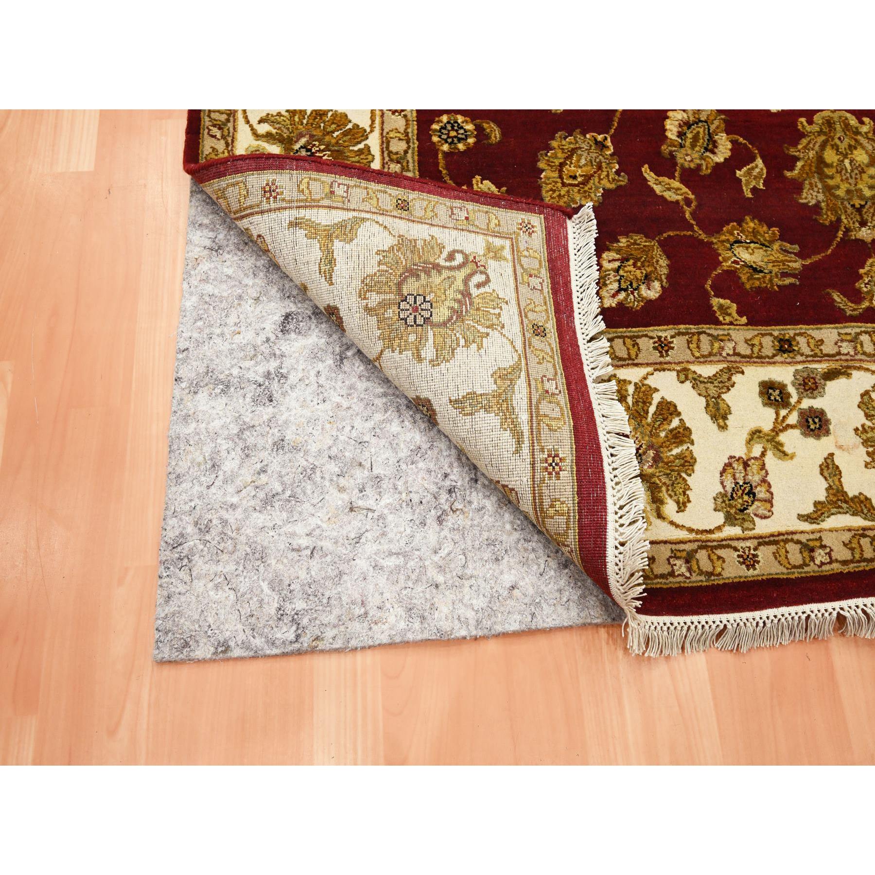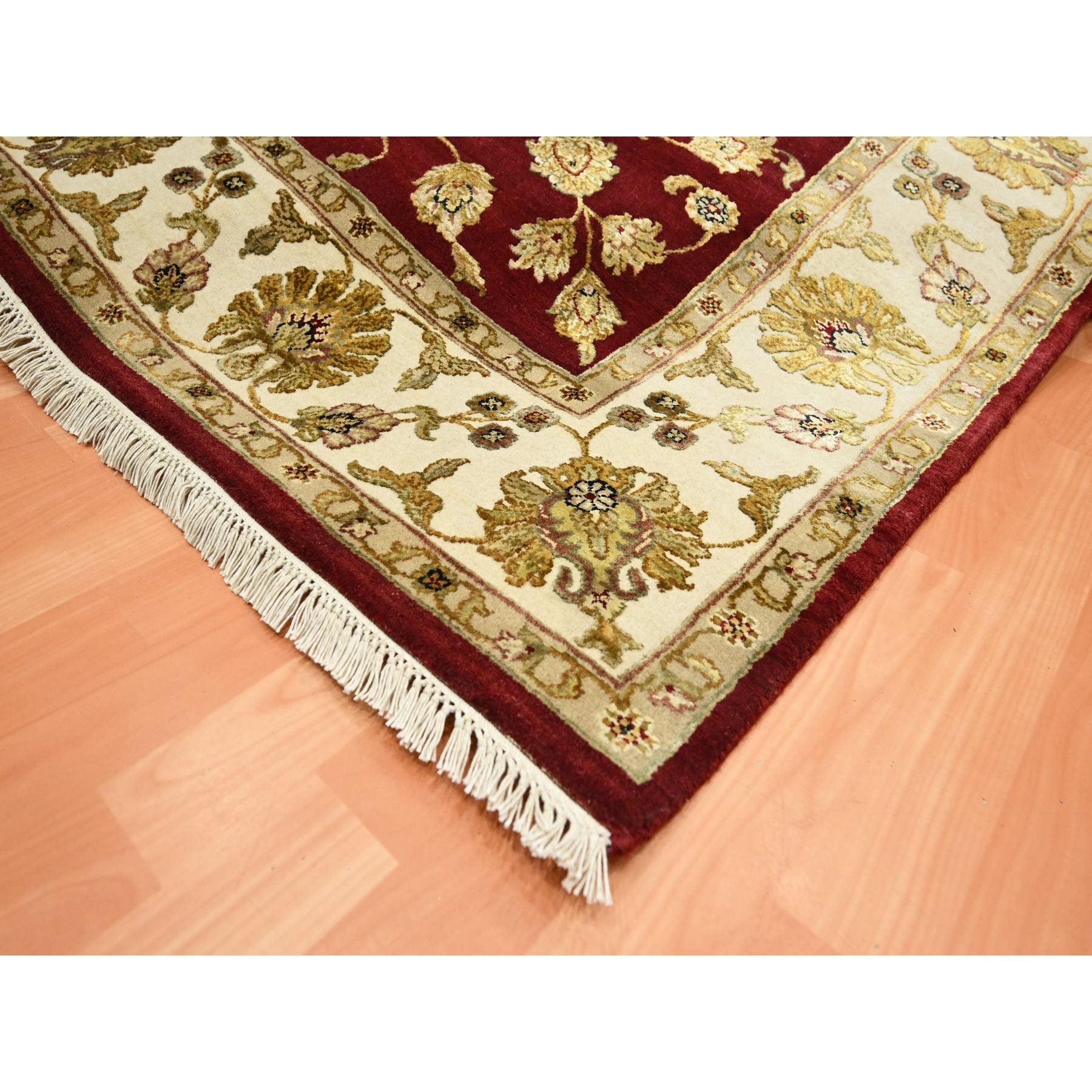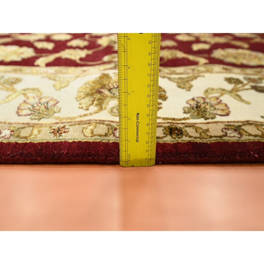 6'x9' Crimson Red, Hand Knotted, Wool And Silk, Soft Pile, Rajasthan With All Over Leaf Design, Thick And Plush, Oriental Rug FWR453624