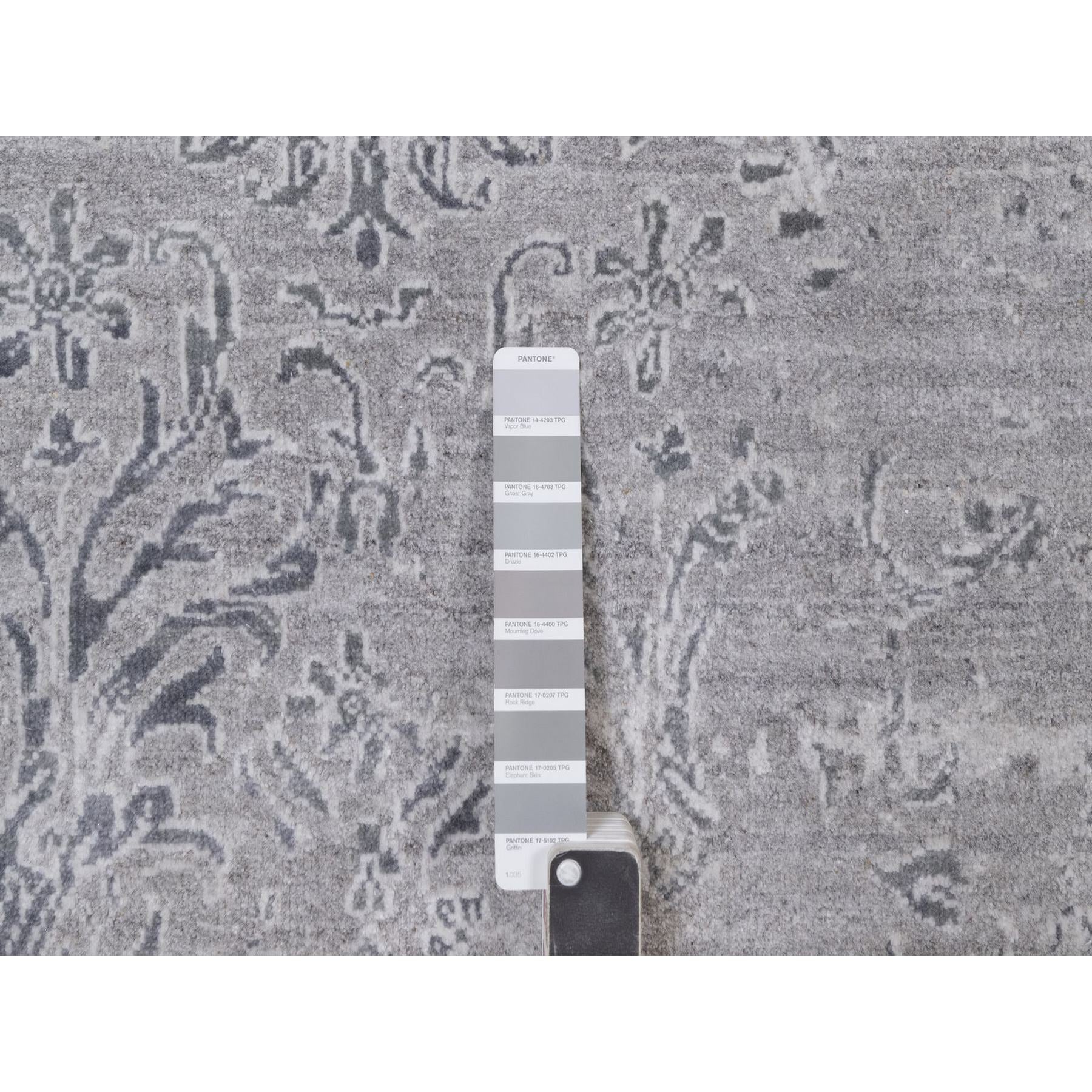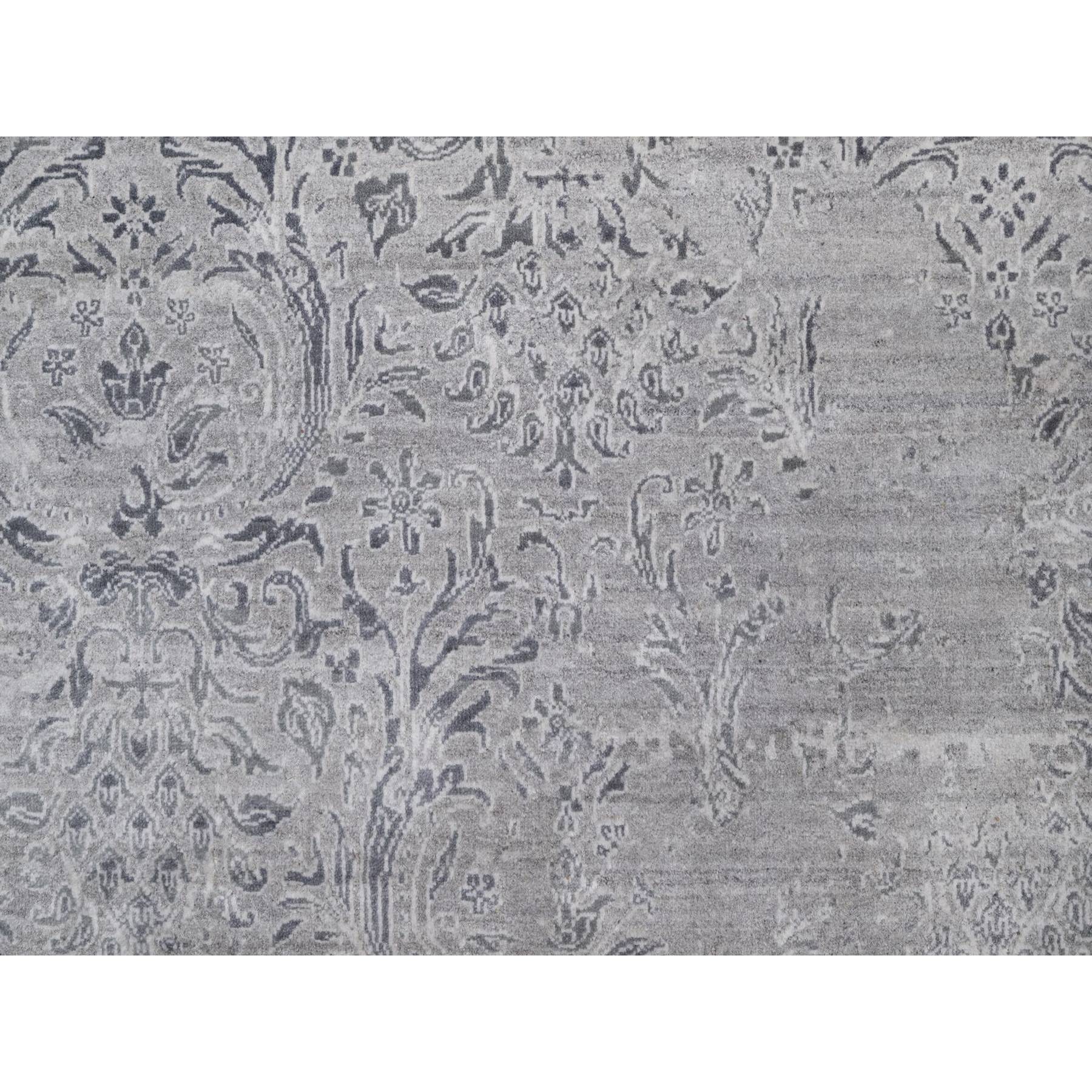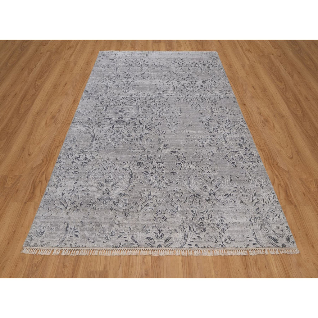 6'x9' Drizzle Gray, Damask Design, Hand Knotted, Tone On Tone, Wool And Plant Based Silk, Oriental Rug FWR550674