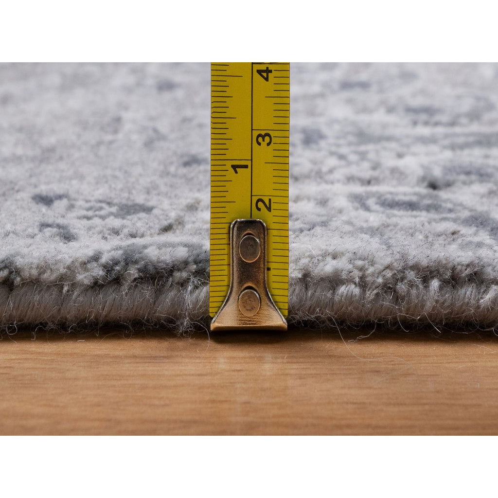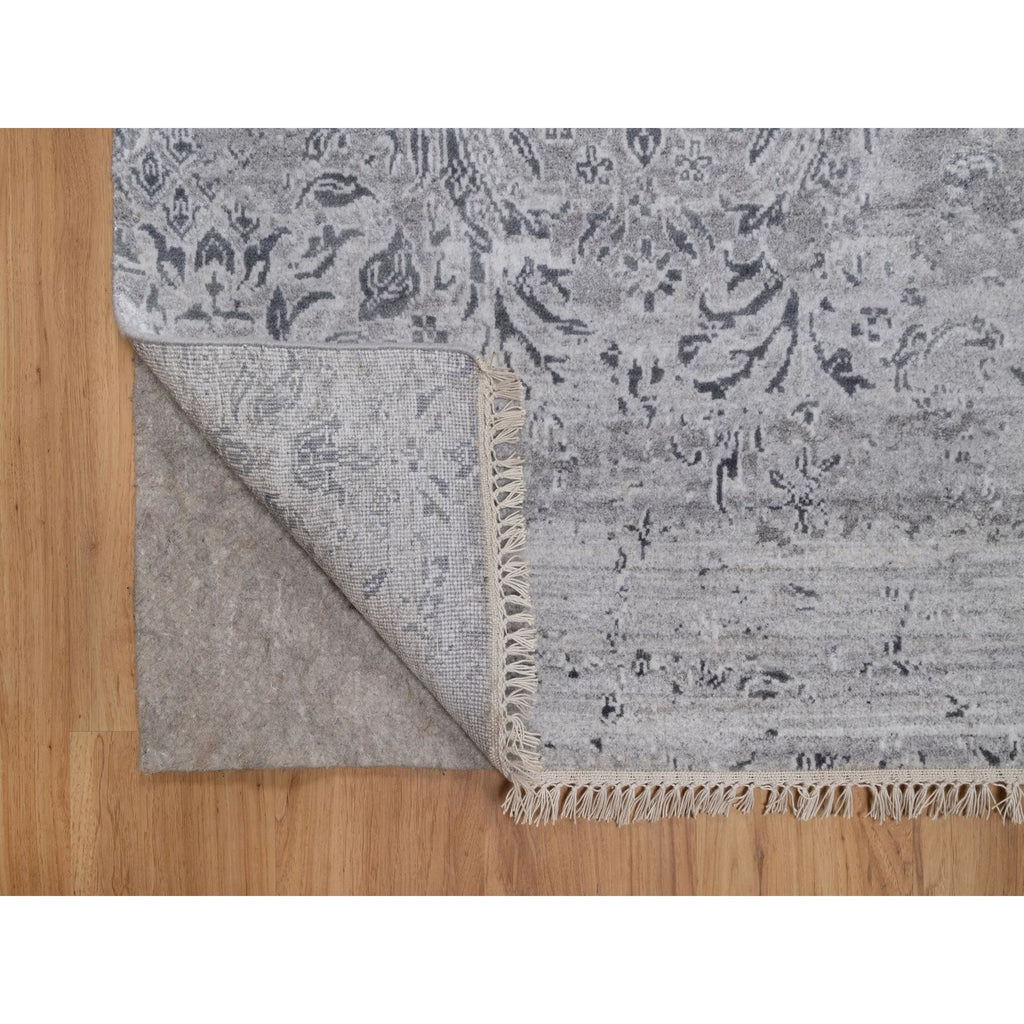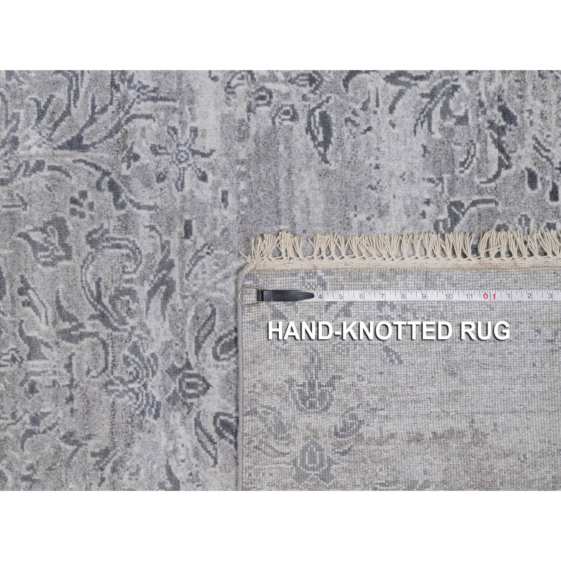 6'x9' Drizzle Gray, Damask Design, Hand Knotted, Tone On Tone, Wool And Plant Based Silk, Oriental Rug FWR550674