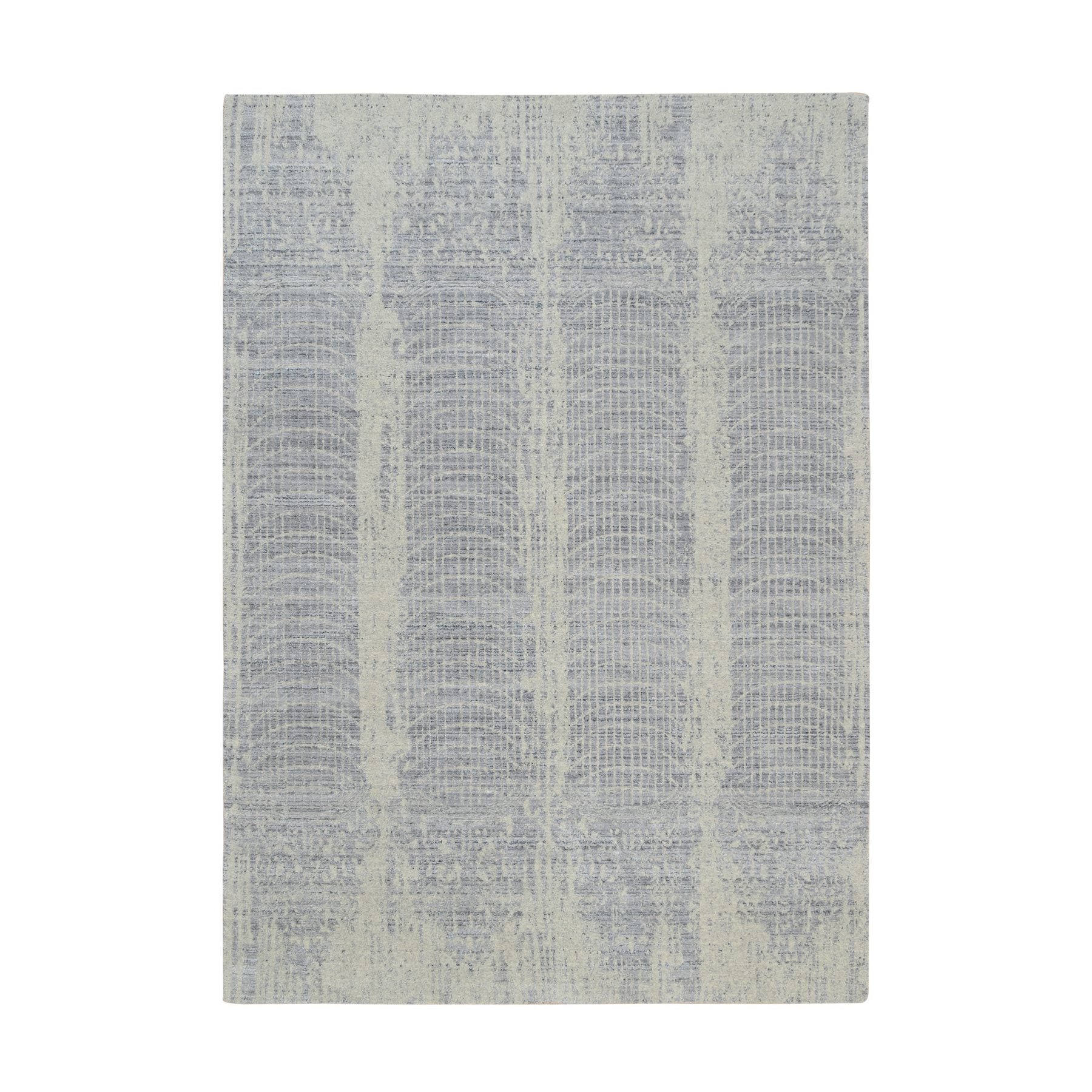 6'x9' Gray, Tone On Tone Transitional Erased Design, Jacquard Hand Loomed, Wool And Plant Based Silk, Oriental Rug FWR382518