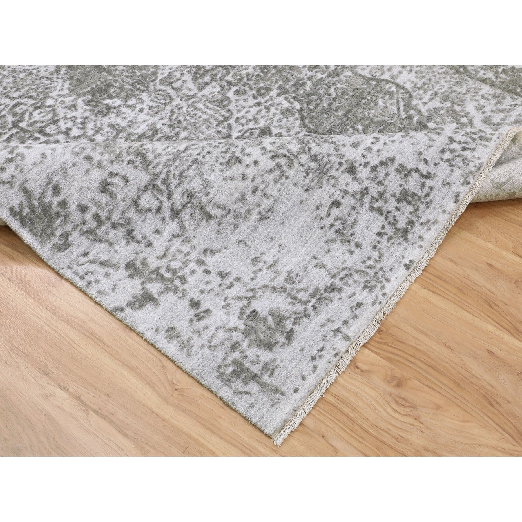 6'x9' Grey Broken Persian Design Wool And Pure Silk Hand Knotted Oriental Rug FWR350034