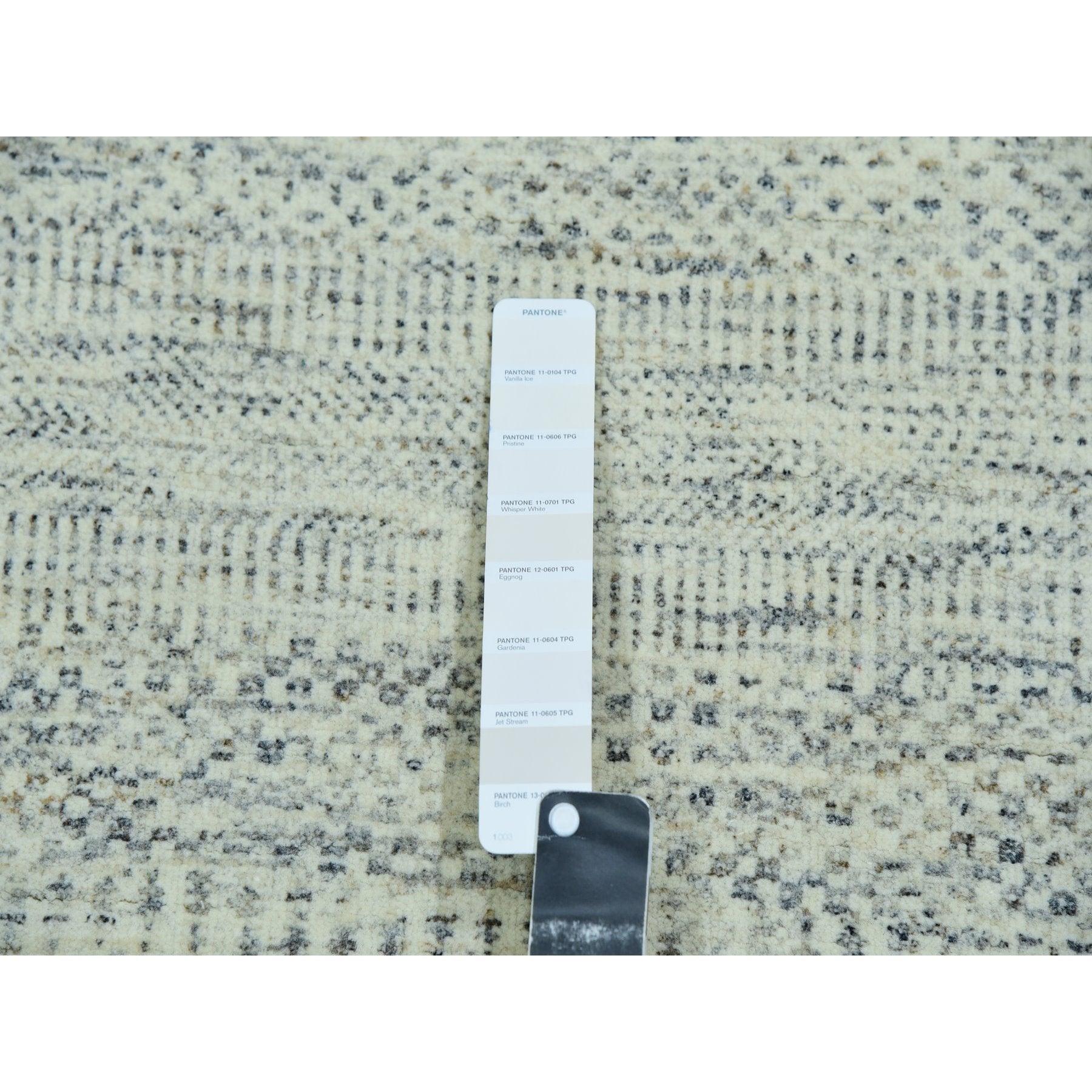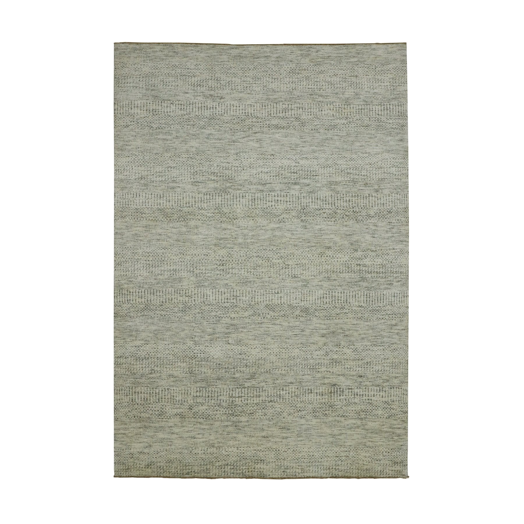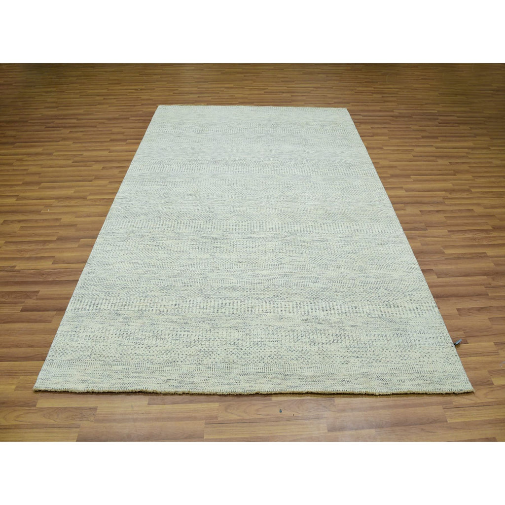 6'x9' Polar Bear White, Hand Knotted Tone On Tone Modern Grass Design, Organic Sustainable Textile, Natural Wool, Oriental Rug FWR456150